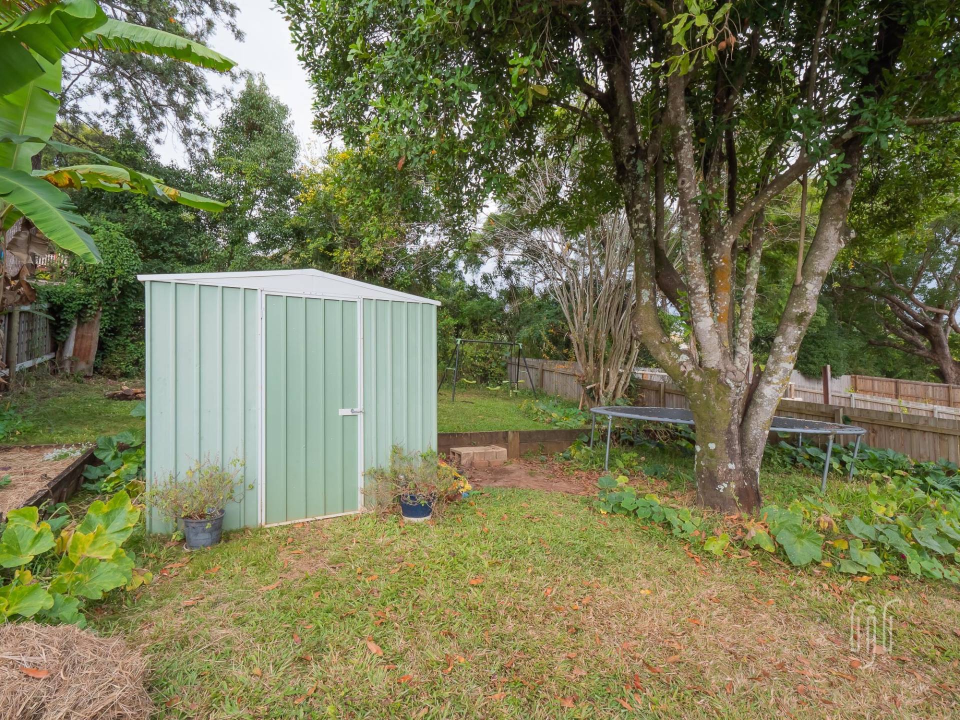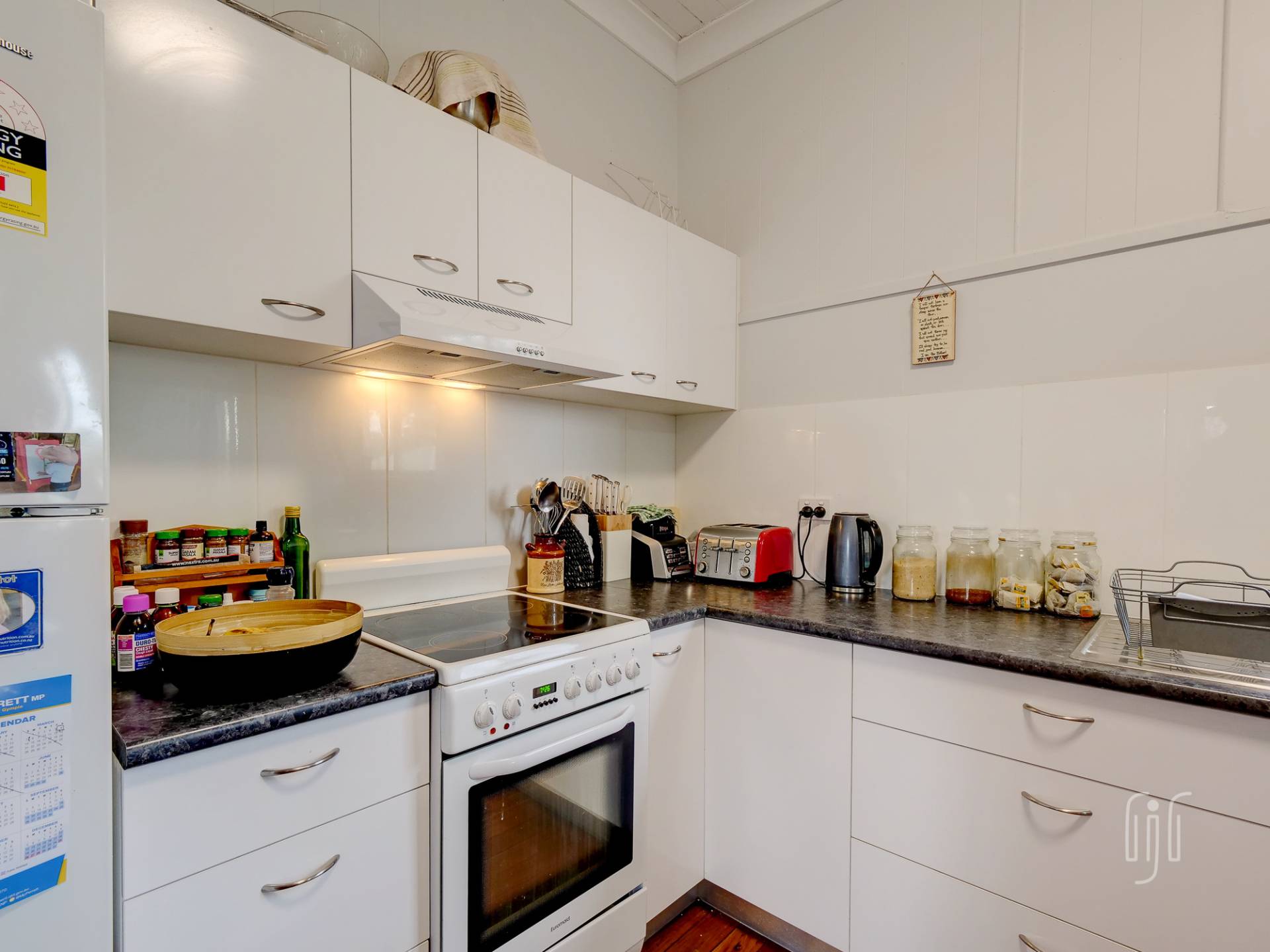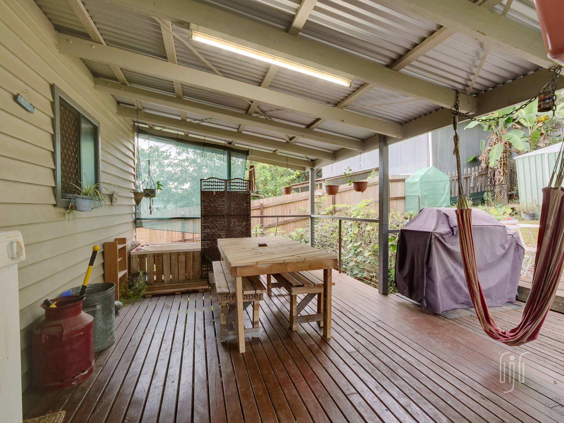 There’s a choice of two entertainment and relaxation spots, the front deck and a wide deck on ground level at the back. Fenced on three sides, the shady rear yard could be easily secured.