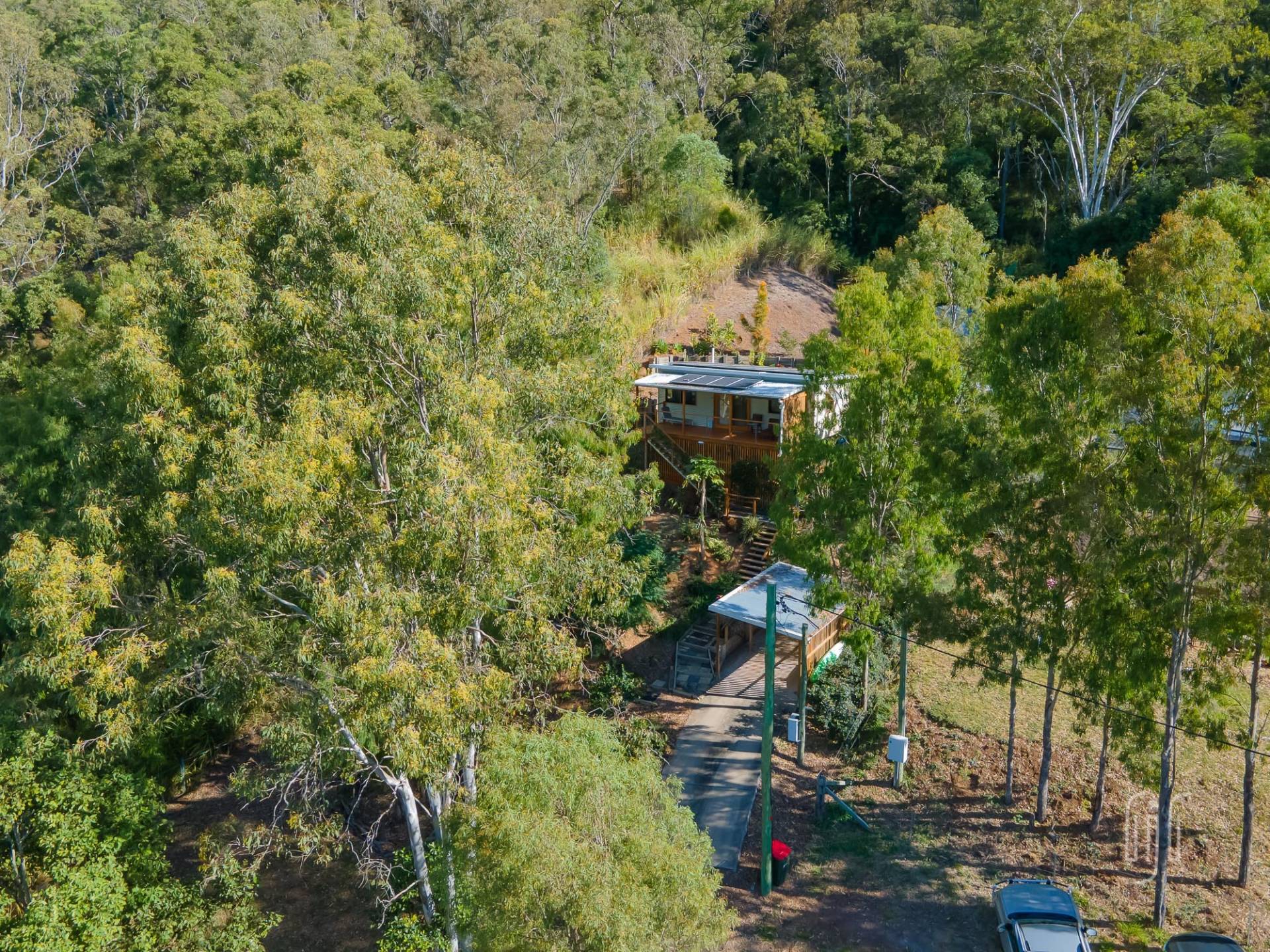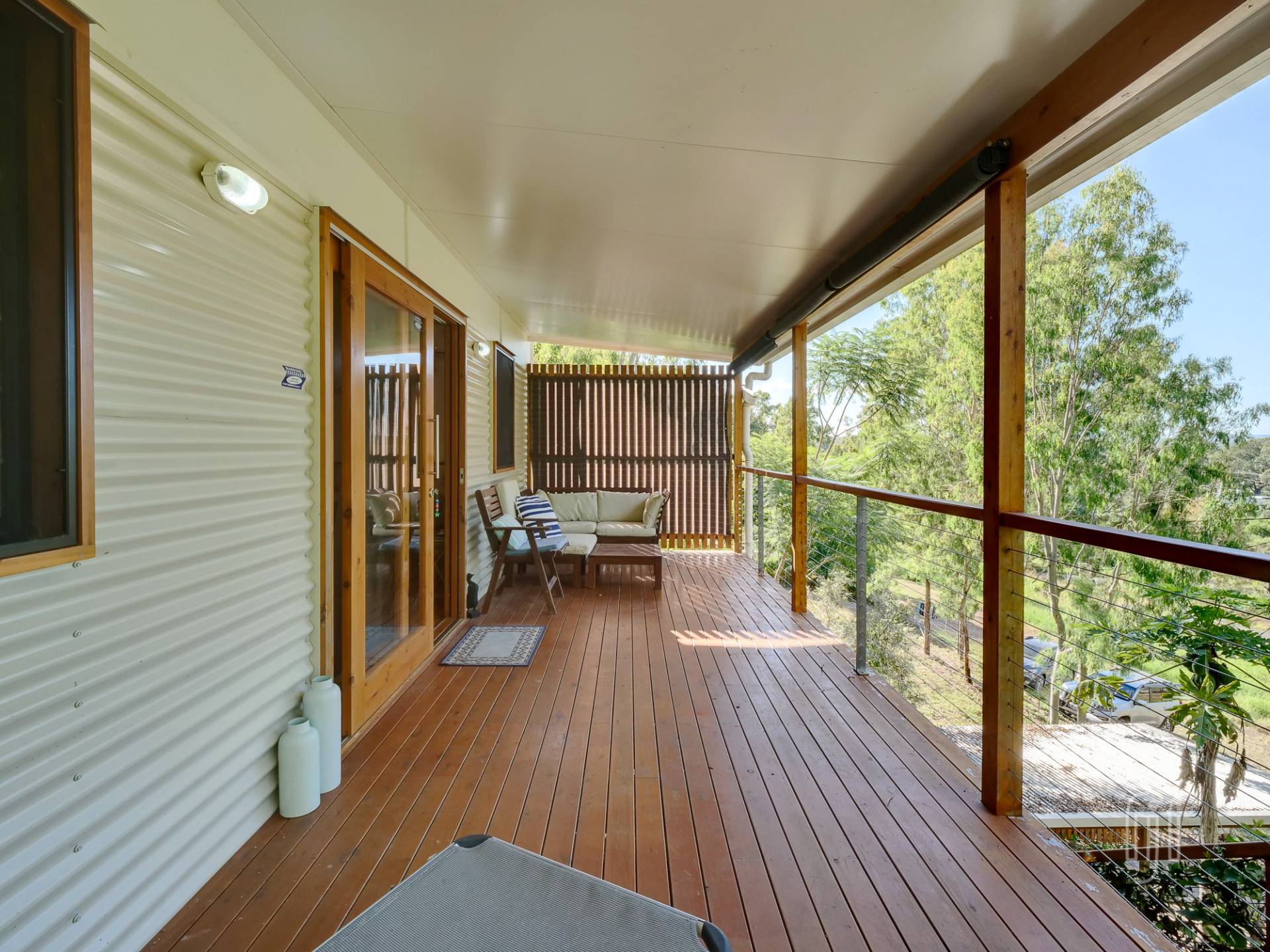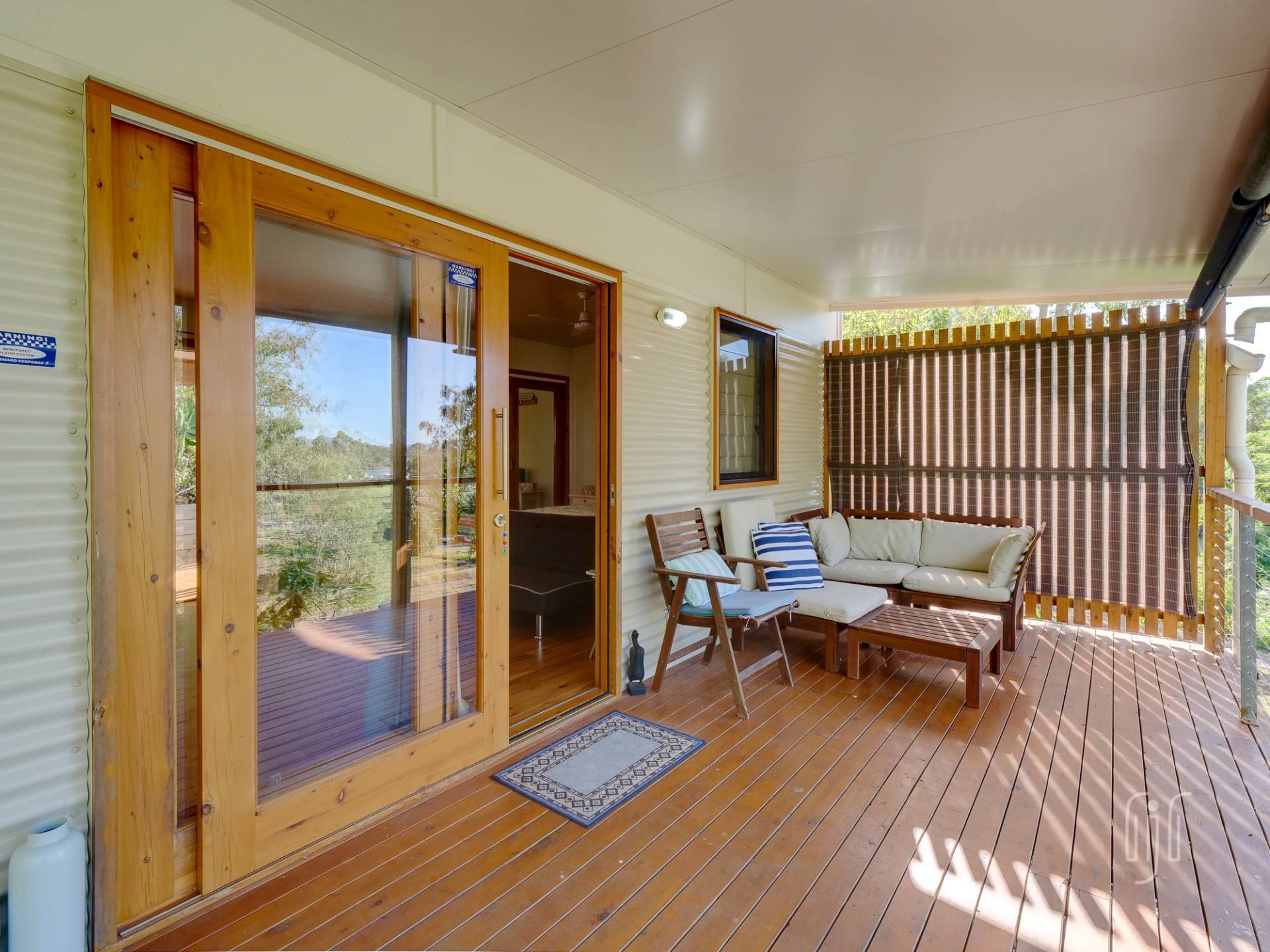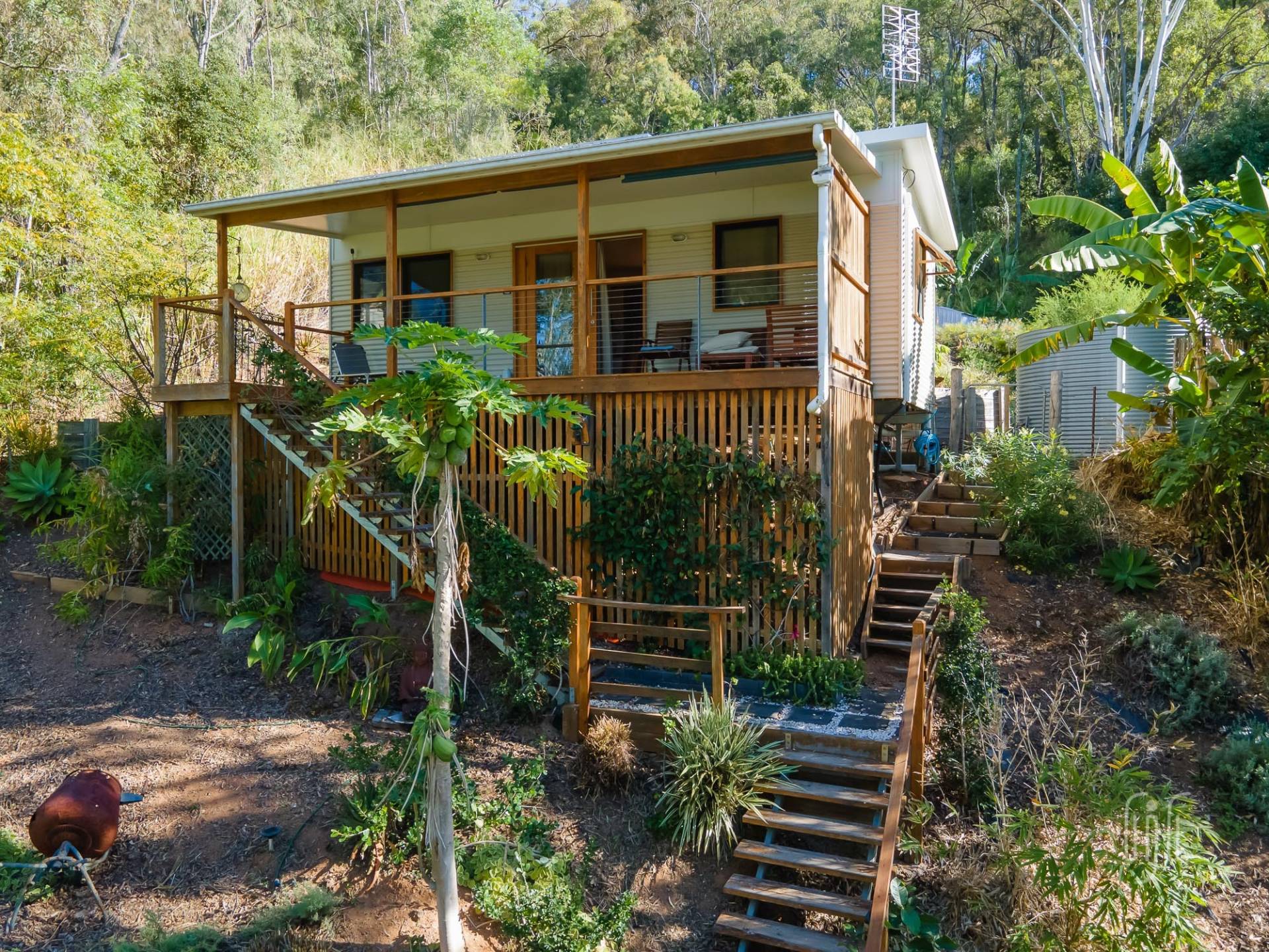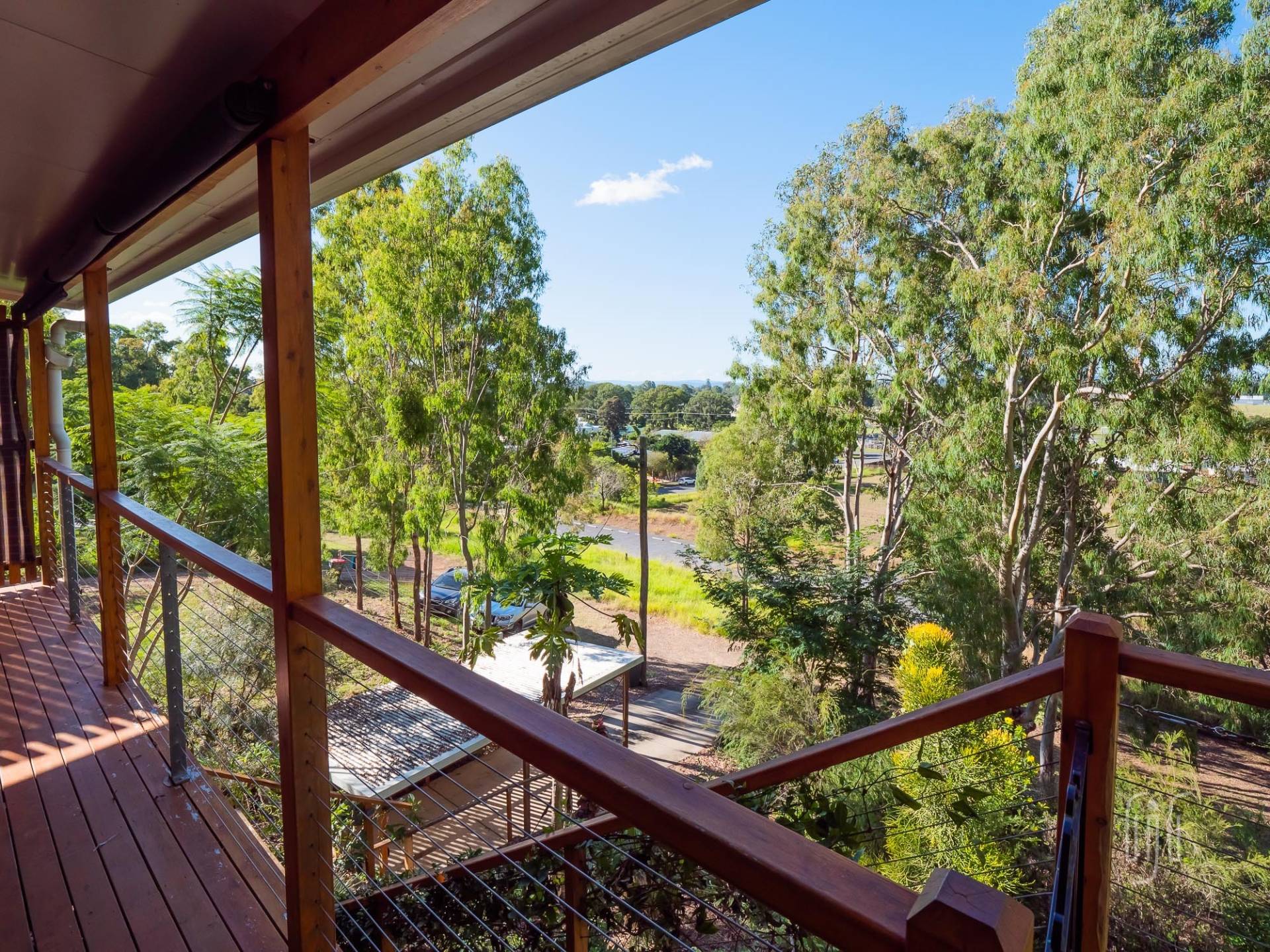 Positioned in a quiet, elevated location on the edge of the village, at the end of Selwyn St, this is a great getaway spot. From the veranda, it overlooks not only the village & Showground, but the start of the adjacent Mary Valley Rail Trail.