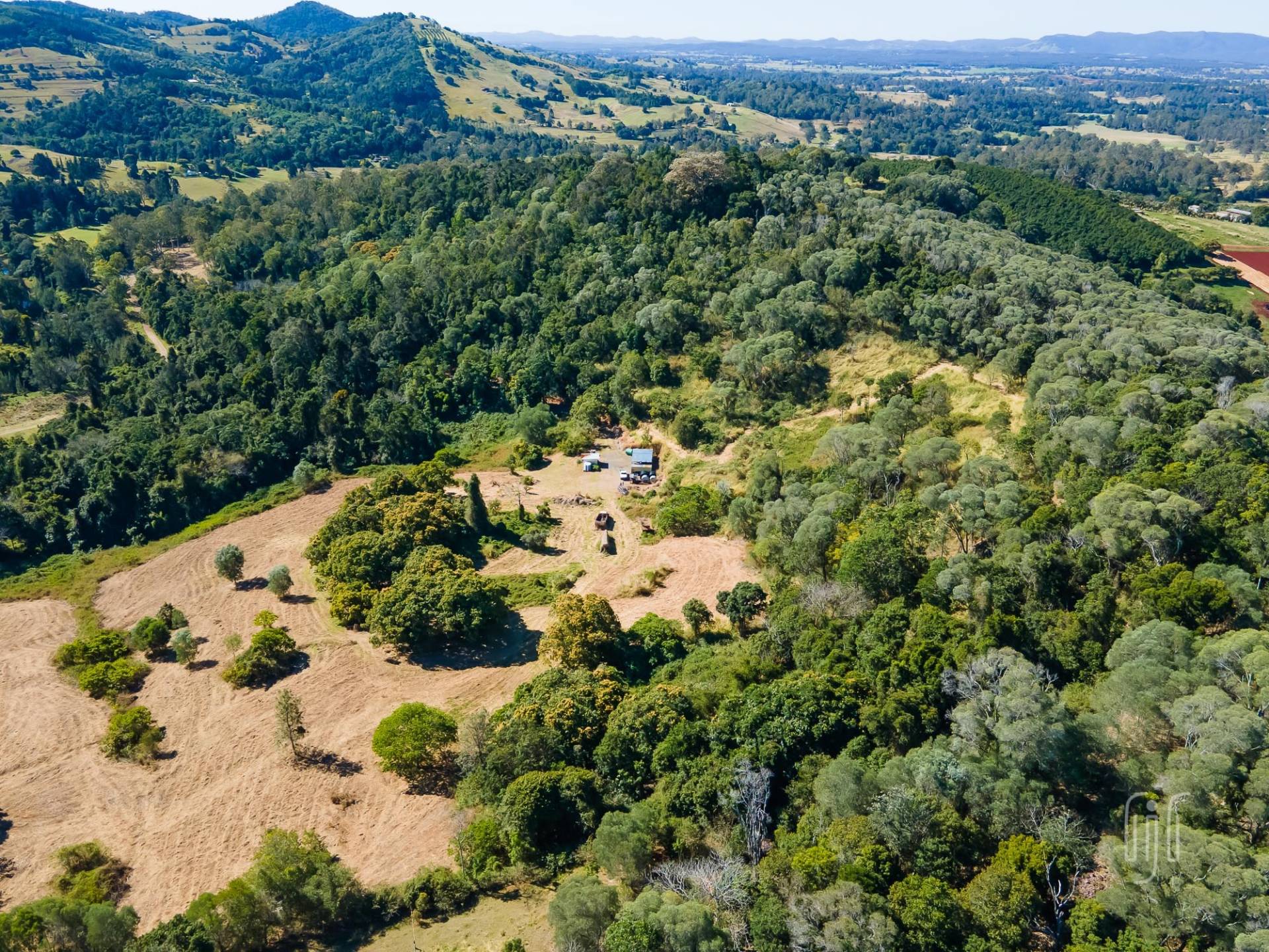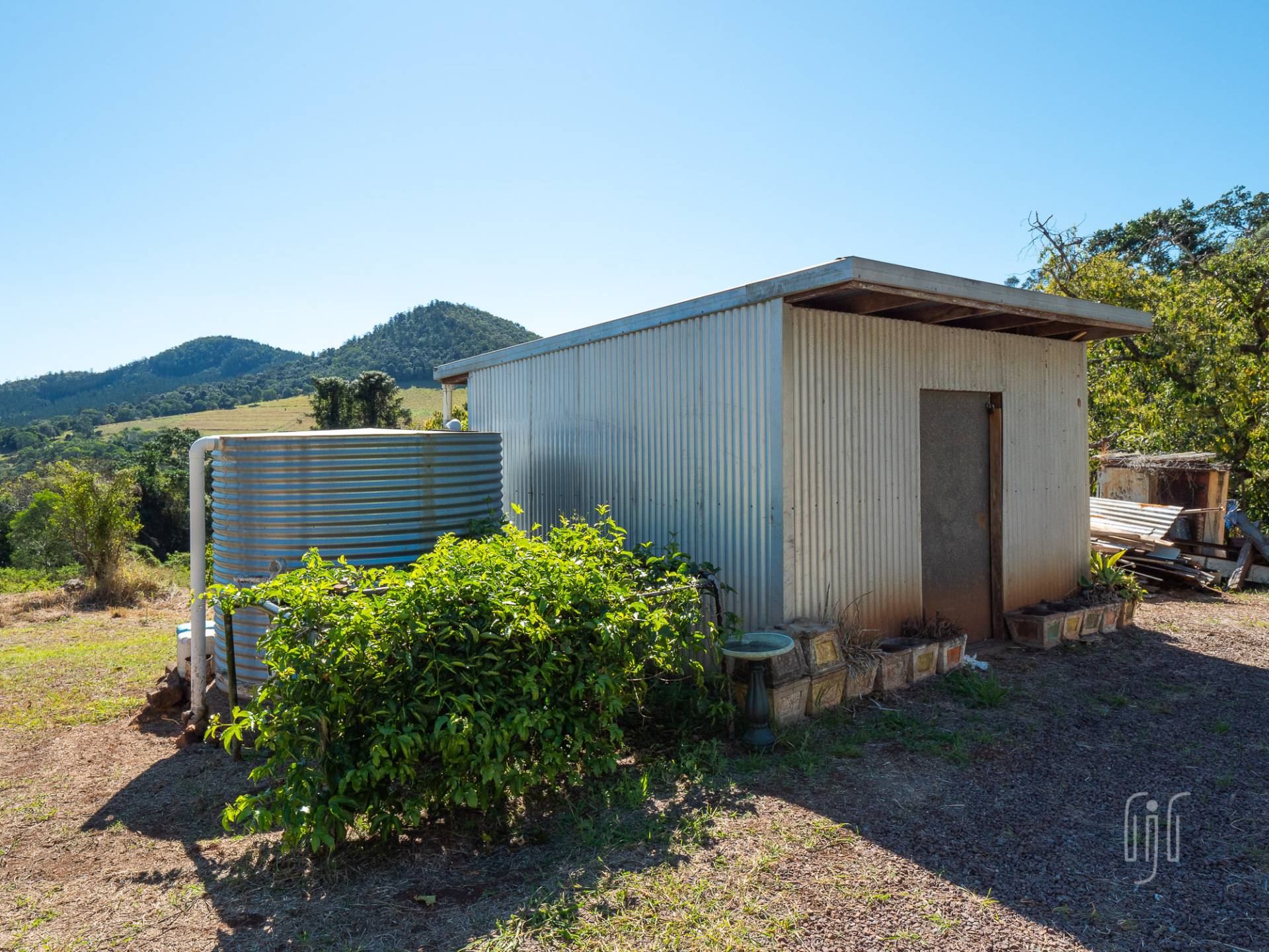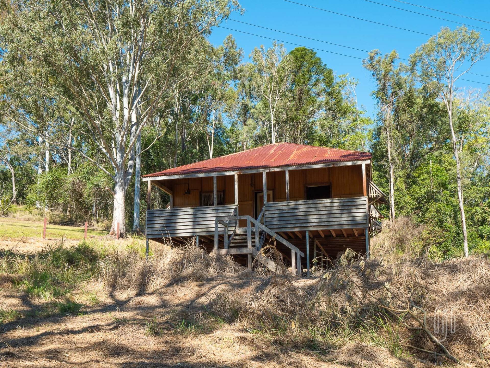 While the old house at 241 Amamoor Creek Road looks pretty cute, very Australian, it has seen better days. So, “Renovate or Detonate”, that is the question … you can decide! However, while this is a good site for a home, there is an even better one, further into the block, in an area currently used as a weekend retreat. This elevated spot is very private, with a great view of the surrounding landscape that includes Amamoor State Forest.
