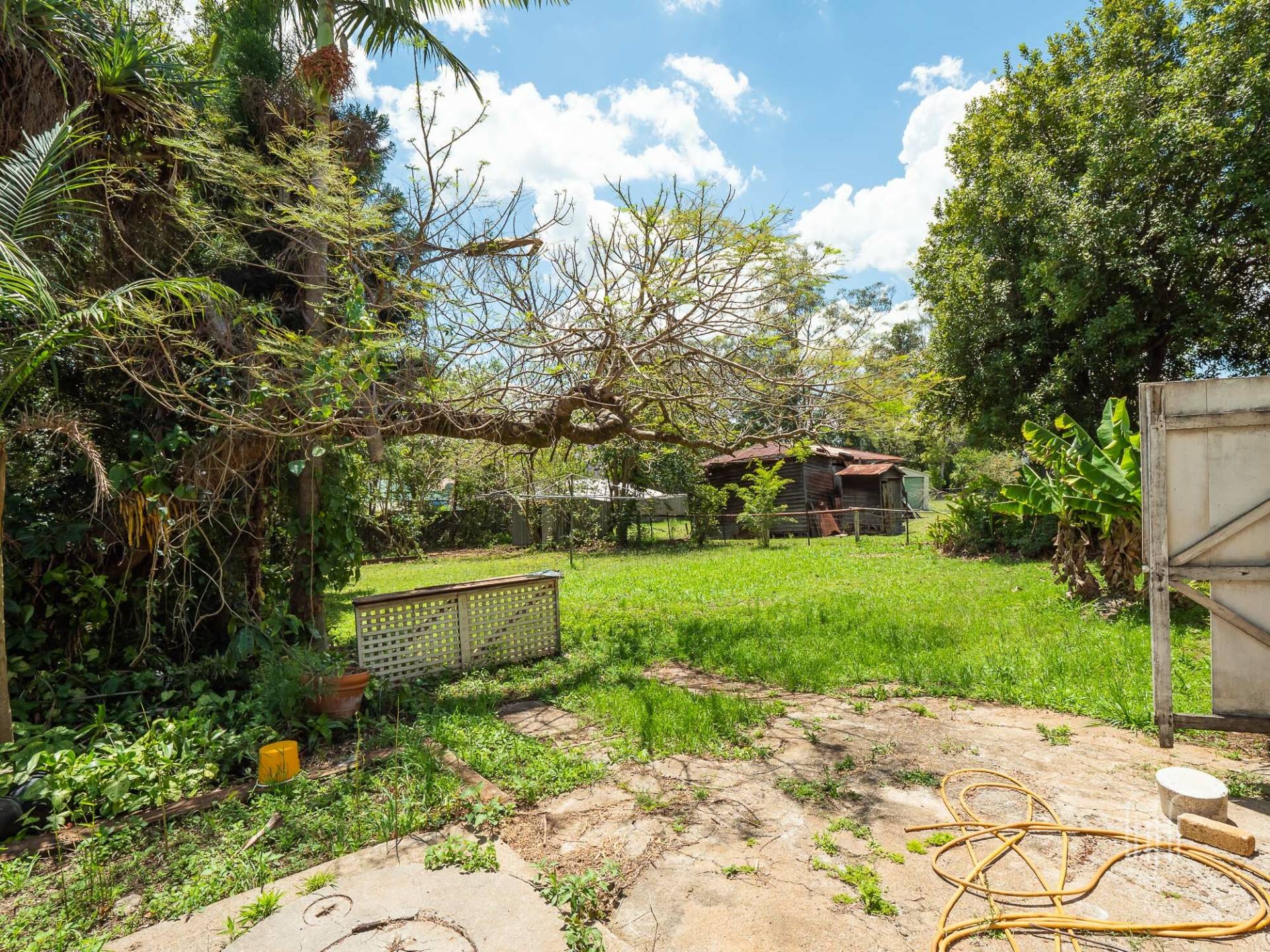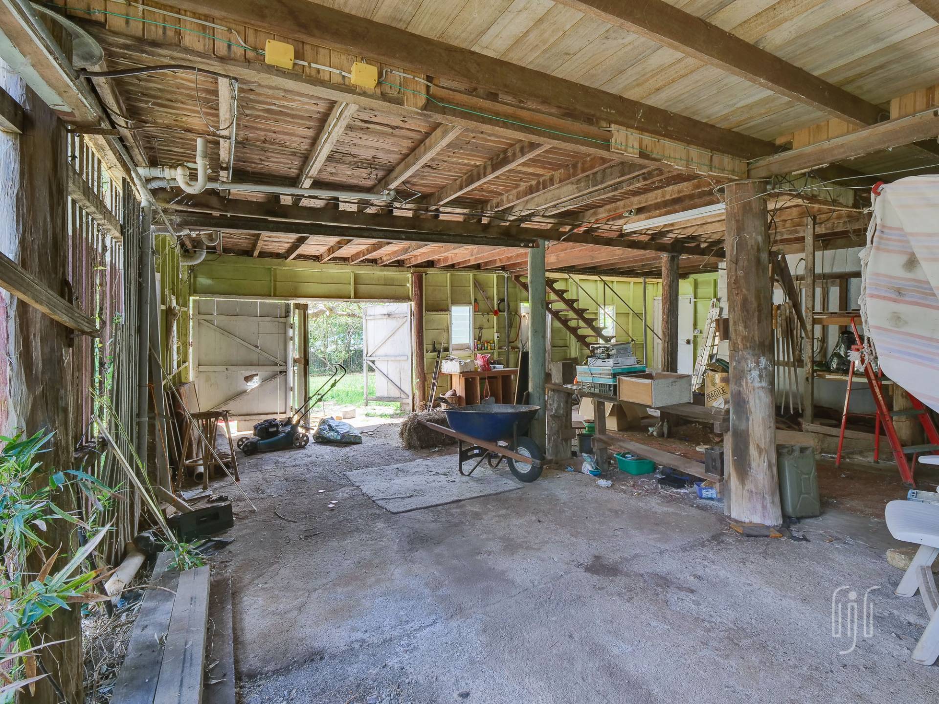 Internal stairs join the back living area to the downstairs laundry, workshop, and single vehicle garage. The 875m2 block is level with plenty of room for your hobby or chosen lifestyle.
