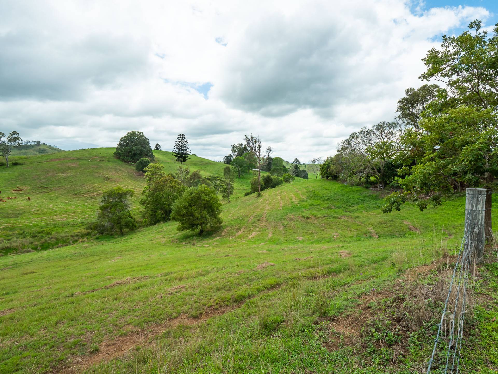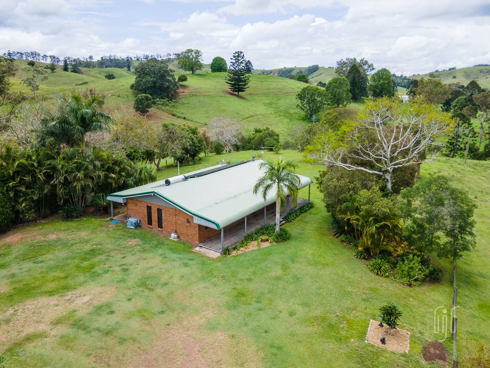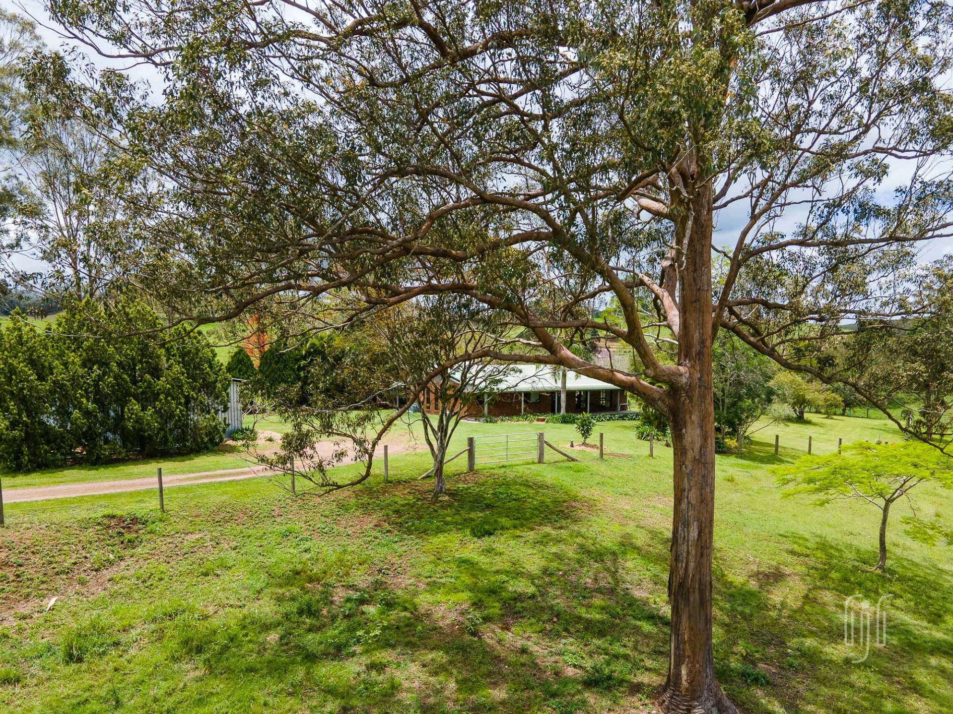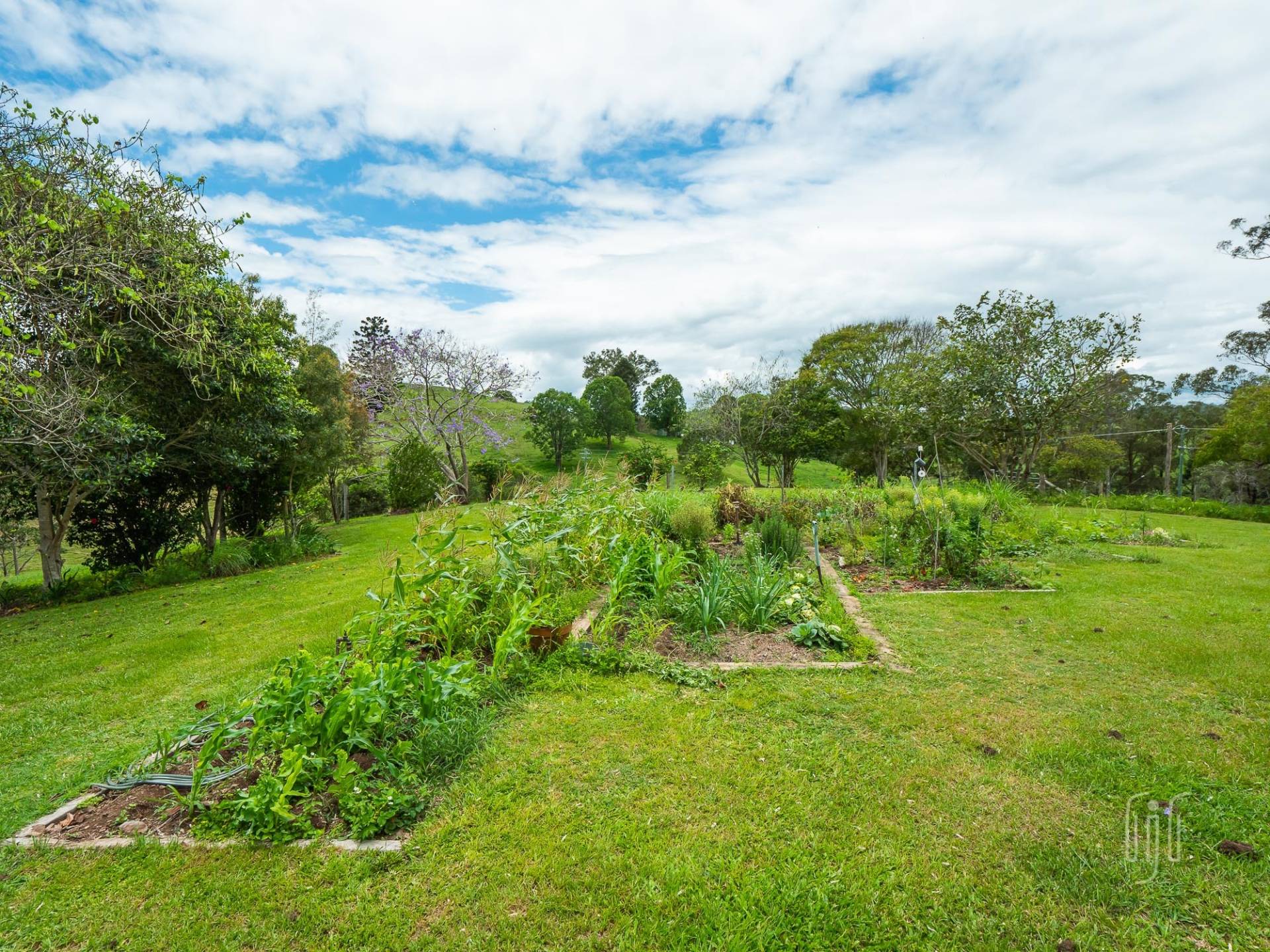 Afforded privacy by distance, the home & outbuildings at 435 Diamondfield Road are grouped together in an established house yard, right in the middle of the 30 acre (12.45 ha) block. The setting includes mature trees, rolling lawns, shrubs and a productive veggie garden. But the best parts is the outlook … you can see the whole property without leaving the house yard.