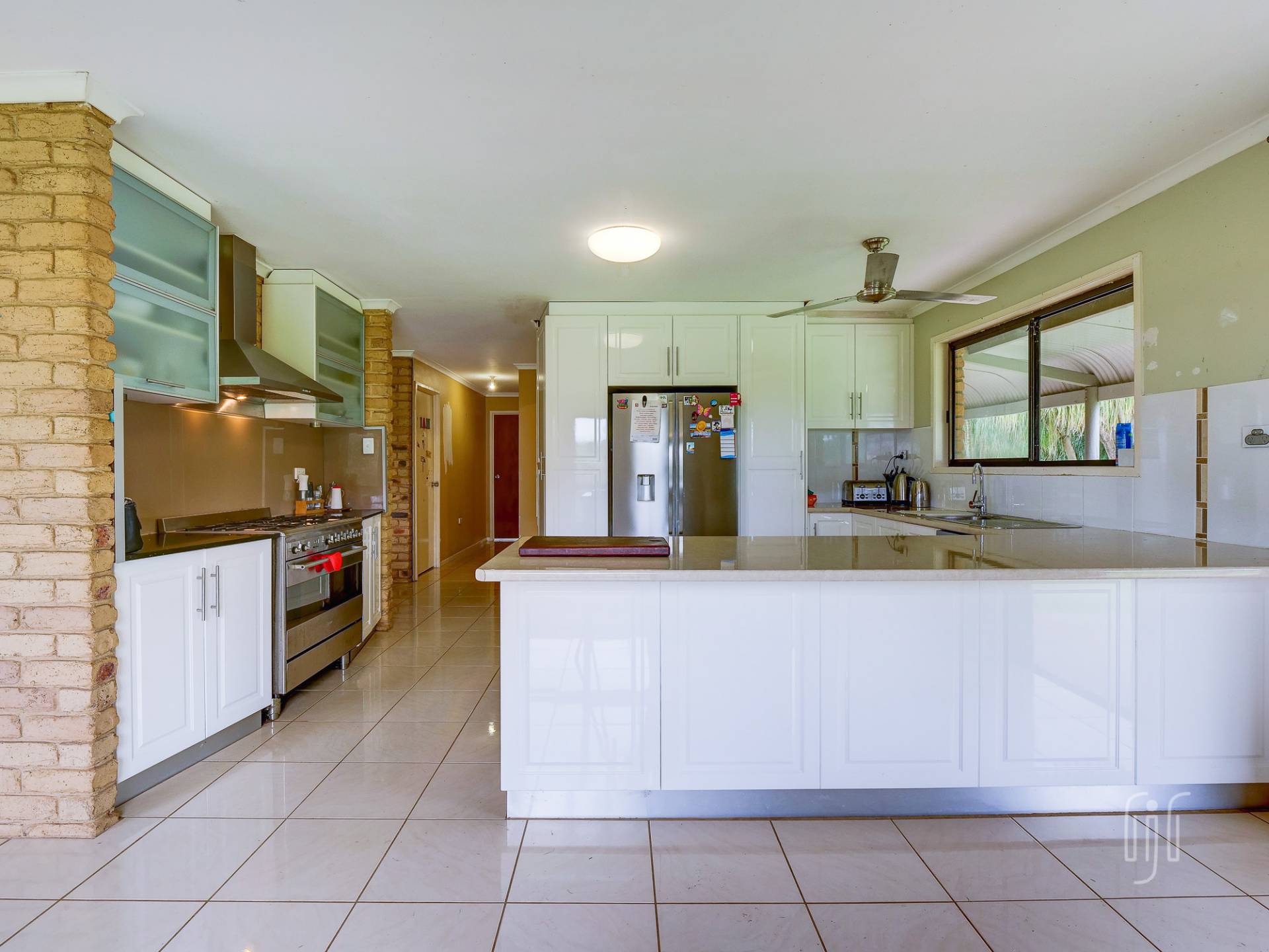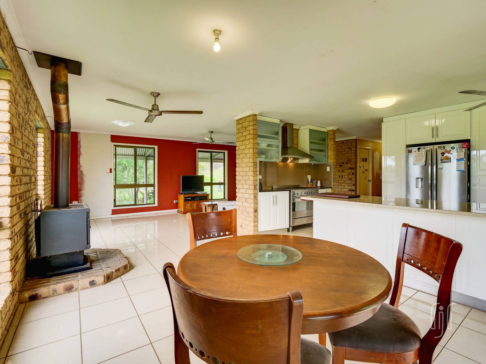 Externally, the brick house is a low-set, colonial style, with bull-nose verandas, front & back, and a new roof. Inside, the L-shape lounge/dining room is light & airy and includes brick feature walls & a slow combustion heater. The kitchen, separated from the dining area by a breakfast bar, has a freestanding gas stove, a dishwasher and great bench space & storage. The whole living area has tiled floors. A central hallway leads to 3 bedrooms, 2 with built-in robes, and 1 bathroom with a separate toilet. The renovations are almost complete … finish the job & enjoy the property!