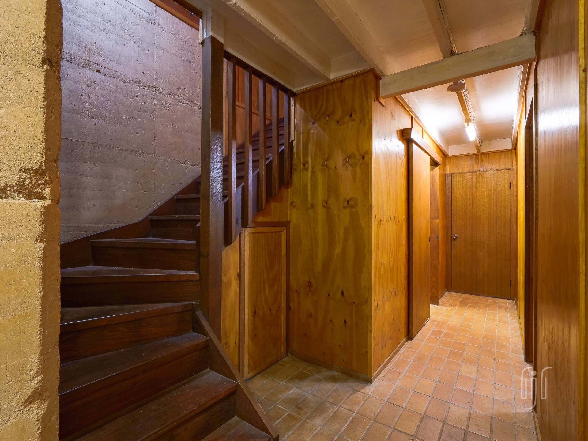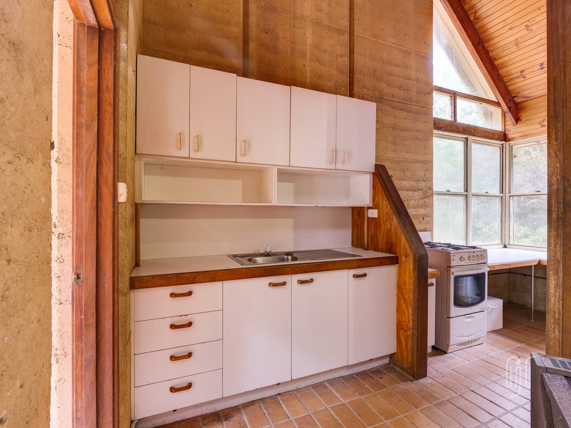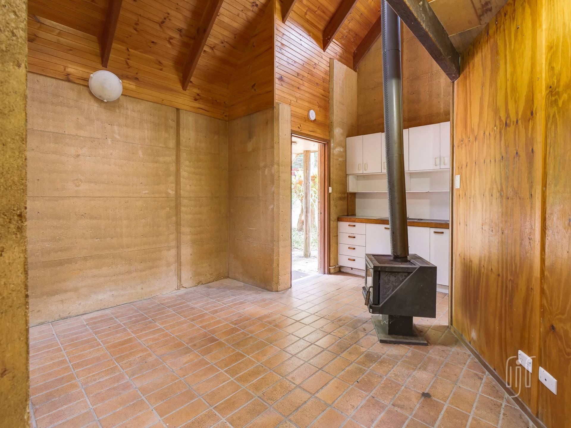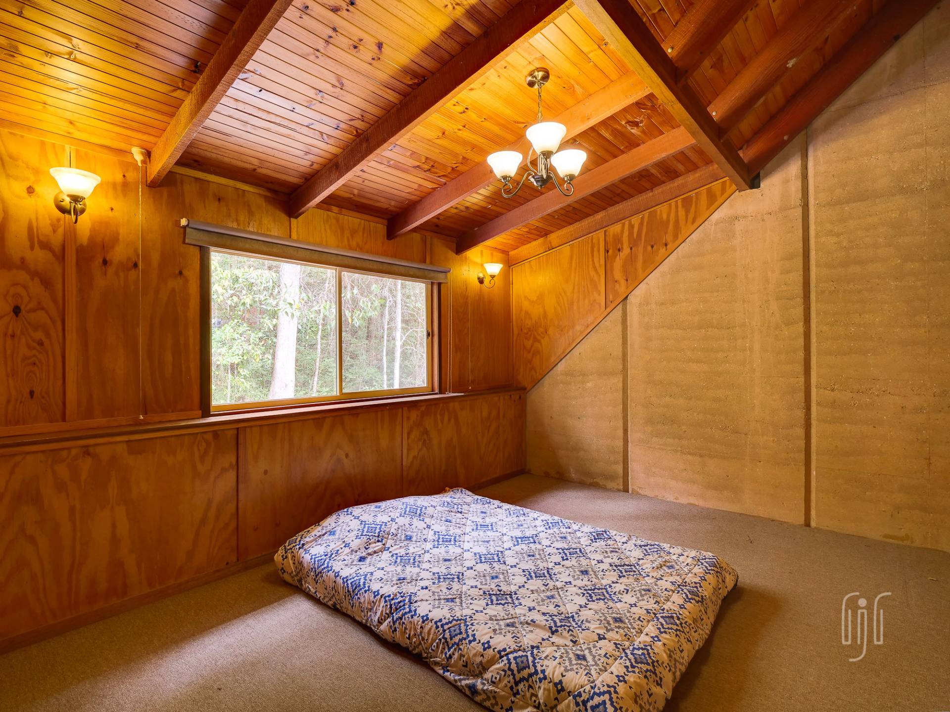 This is a cottage in every sense of the word. A cute, double-storey building with the living room & kitchen, on the ground floor, sharing a similar view to the wide front deck. And it is an awesome view! The living area features the rammed-earth walls, vaulted ceiling & huge treated log poles between big glass panels. It has slow combustion heating and adjoins a simple kitchen with gas cooking. The ground floor layout includes one bedroom, the bathroom & laundry, plus the internal stairway to the top floor. Upstairs, an open sitting room gives access to two more bedrooms and the upstairs toilet. A room on the ground floor, accessed from outside, could be a study or fourth bedroom.