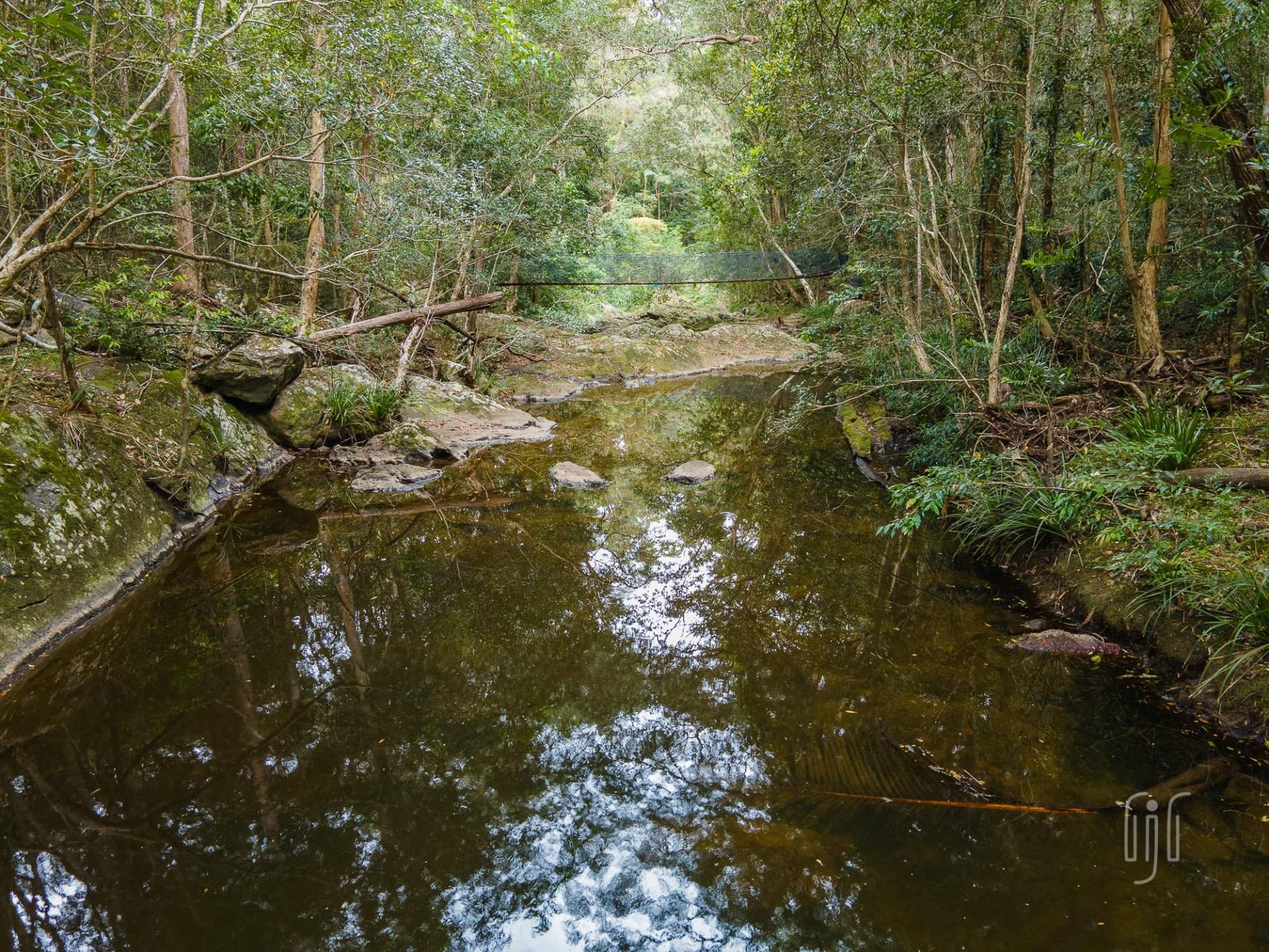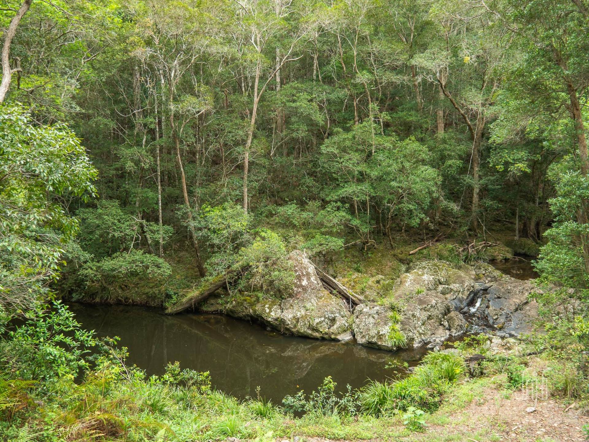 The idyllic setting here is almost unbelievable. The 20-acre (8.25 ha) block is a total rainforest, with a small clearing for the cottage buildings. Instead of being man-made, the background sounds are dominated by the sounds of the waterfall & the native birdlife; and the view is one of majestic trees & running water. With a constant flow, Rocky Creek is one of the inflows to Wappa Dam. This is a fun place … a magic spot … a fairy tale!