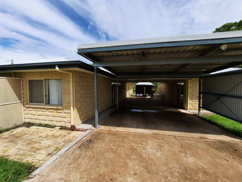 The home has security screens throughout, and a large deck off the living area for your morning cuppa or your afternoon drinks to enjoy the relaxing views.  There is a double carport and single garage for your vehicle needs, and the laundry is shared with the granny flat next door.