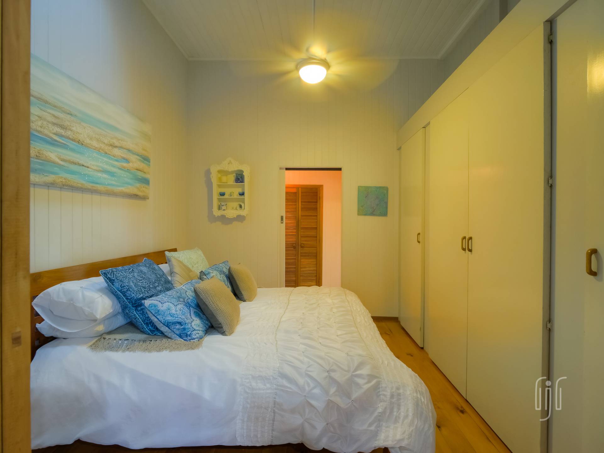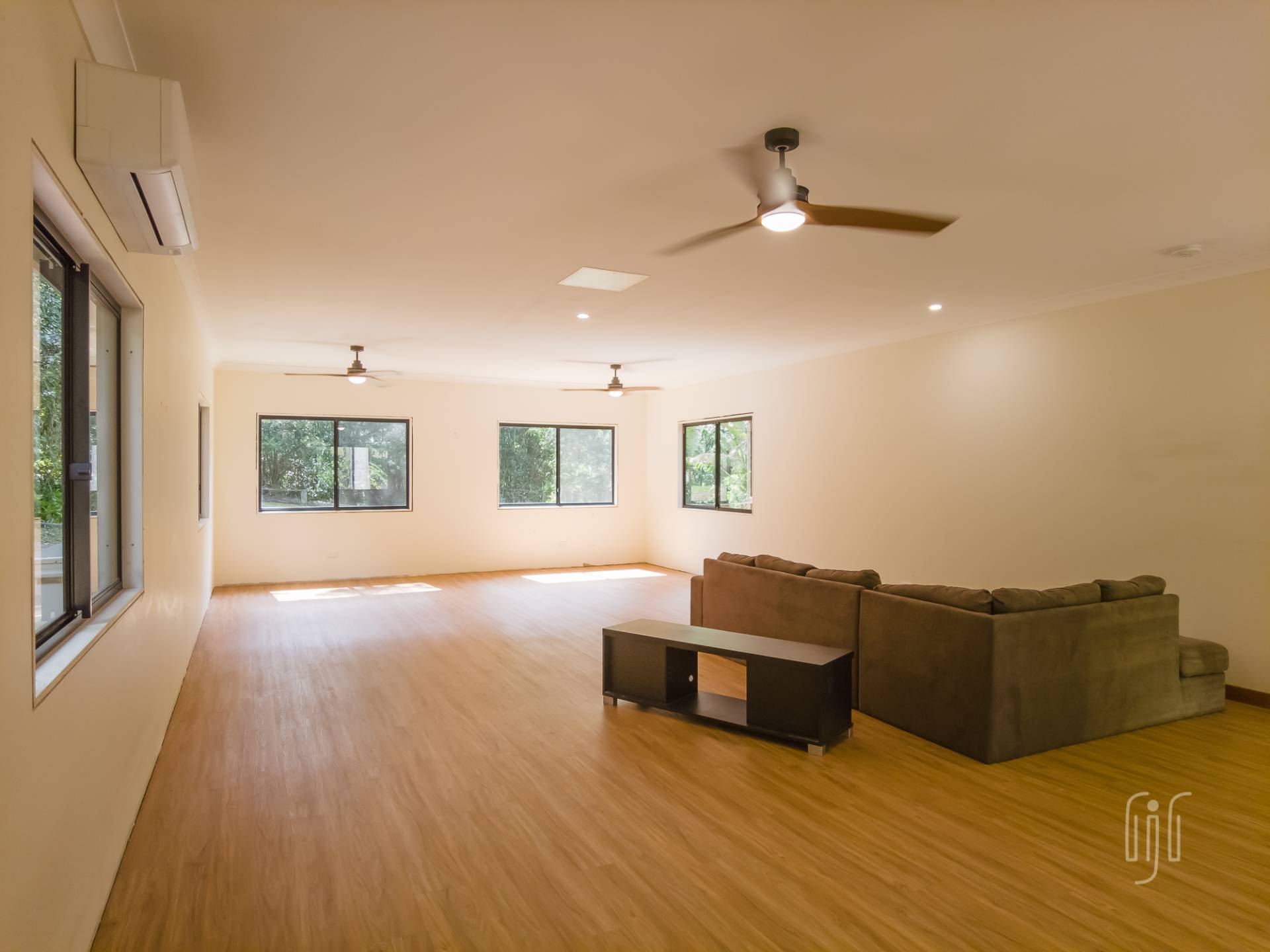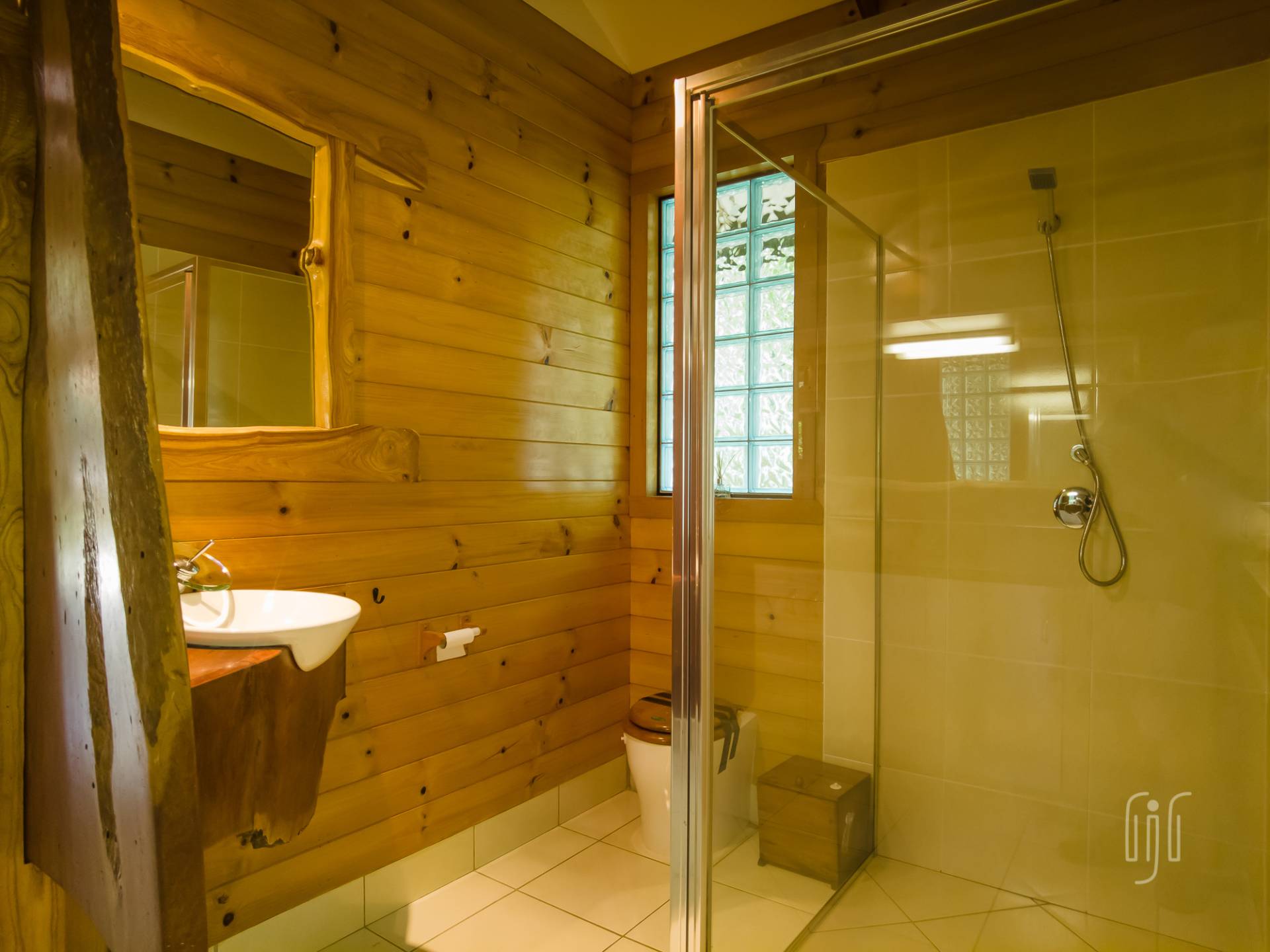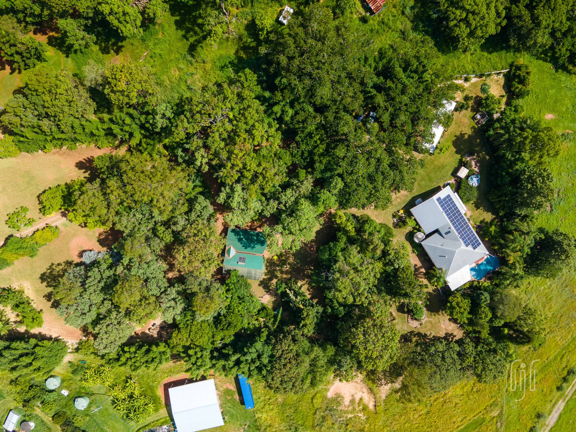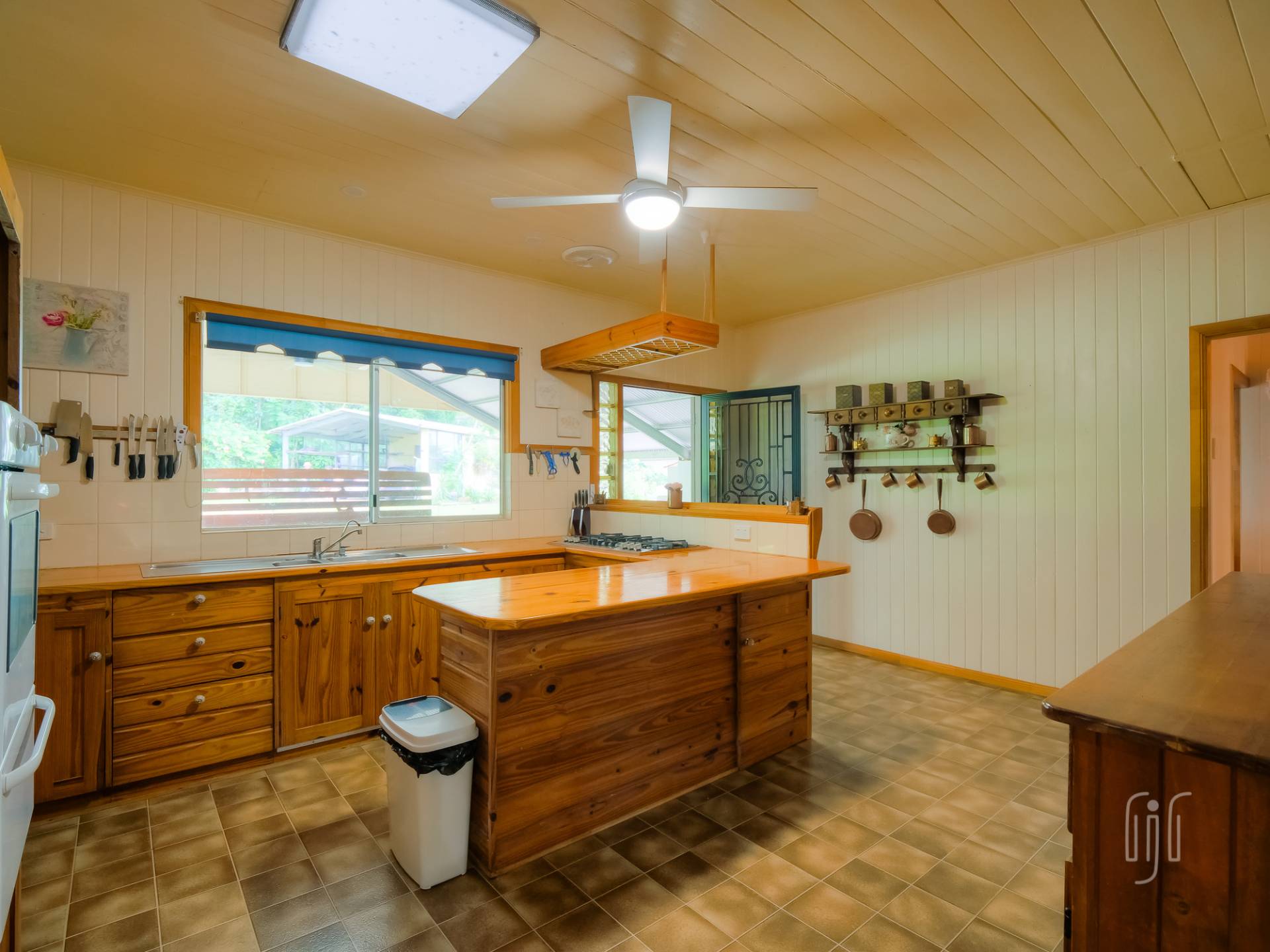 The second, rustic self-contained dwelling, separated from the main house by the landscaped grounds, has entry from a covered deck straight into an open plan living area that includes a kitchen. This room has exposed trusses and air-conditioning. The other half of the building is open plan and could be left that way, or be divided into individual bedrooms. There are full bathroom and laundry facilities.