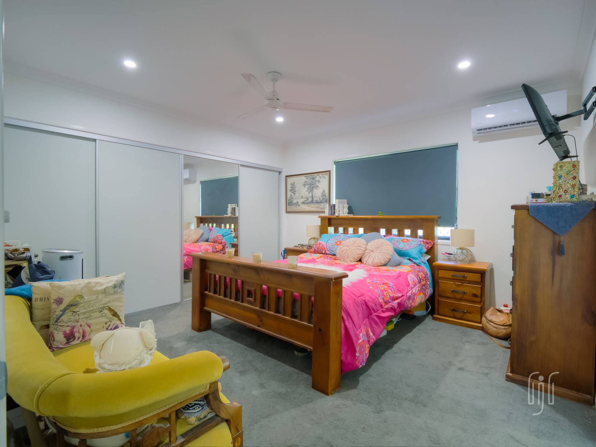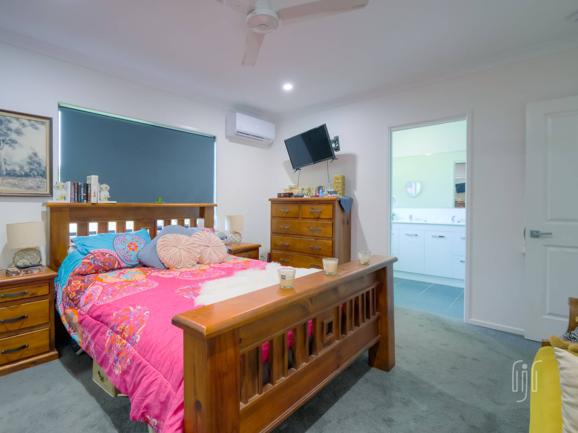 The inside living space is complimented by 2 outdoor living areas – the wide front deck and a rear relaxation spot with a built-in mini plunge pool/spa. There are 3 carpeted bedrooms, the air-conditioned main with a generous sized en-suite. Bedrooms 1 & 2 have built-in robes and there is a combined main bathroom/laundry.