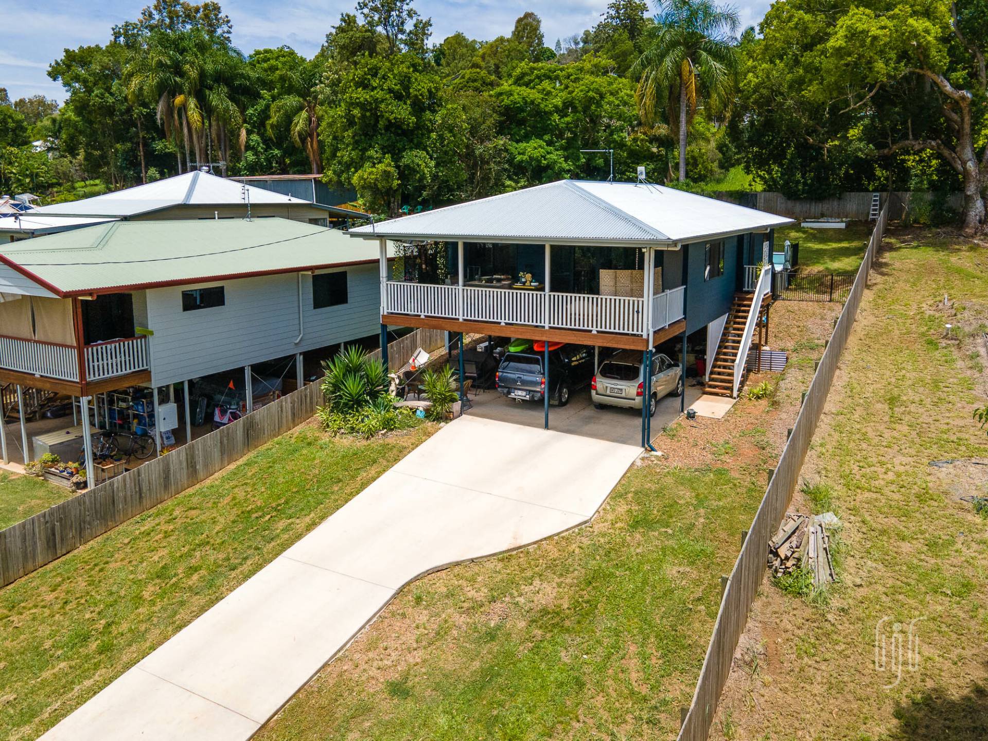 Although the yard is a blank canvas, the as-new home at 28 Yabba Rd has street appeal, with a concrete driveway giving access to two parking bays under the elevated Hardieplank clad home. When you are up on the front deck, there’s a great northerly view of the Imbil countryside.