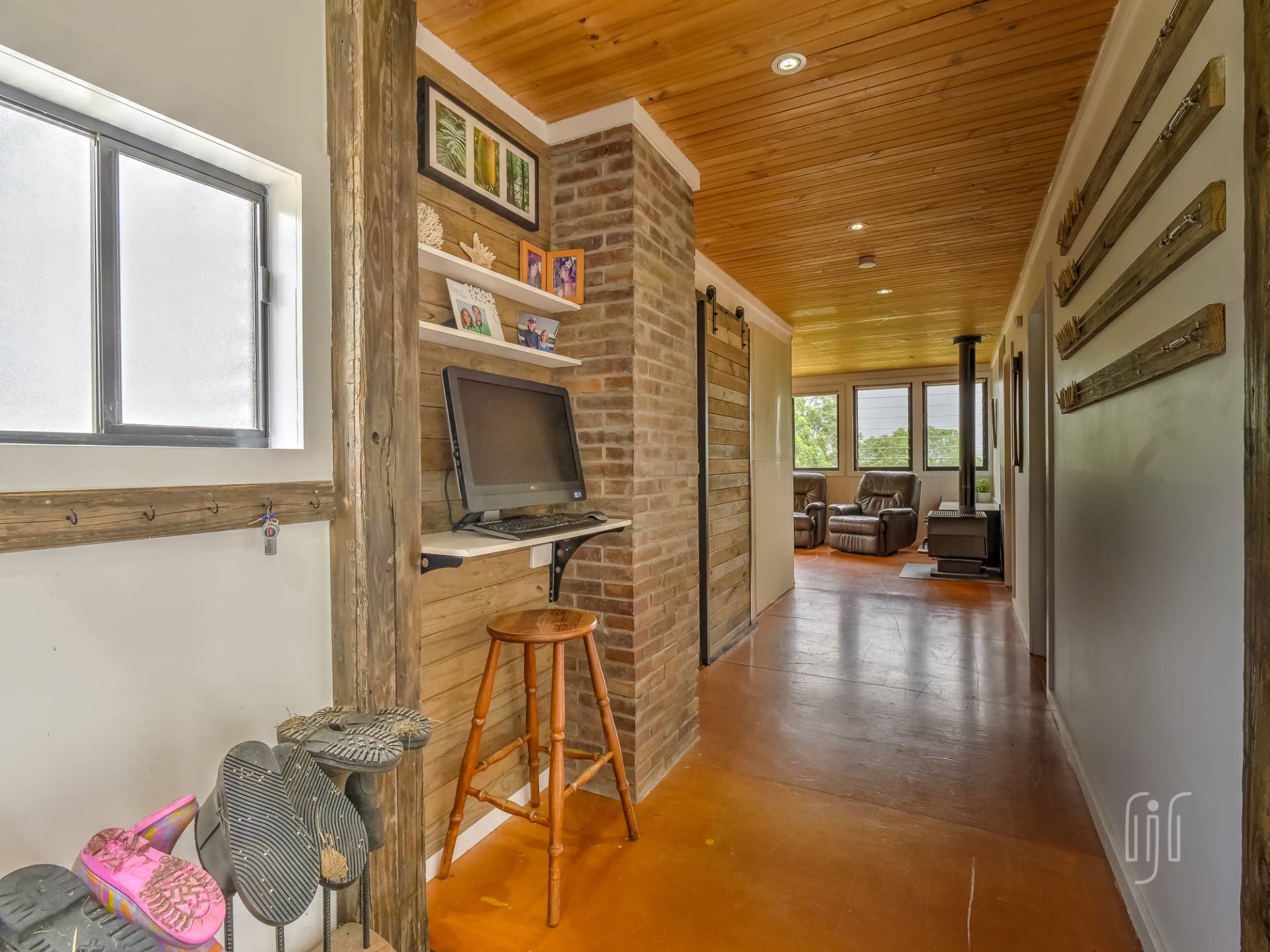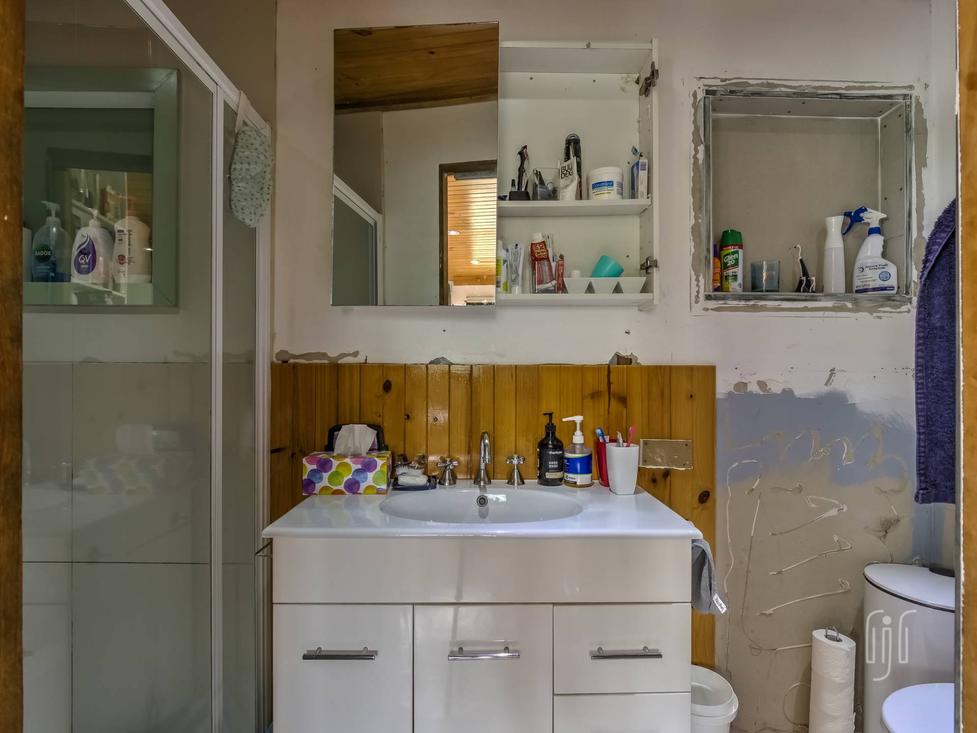 The kitchen has gas cooking, a dishwasher & walk-in pantry and is separated from the dining area by a breakfast bar. There are 3 bedrooms, 2 with built-in robes, and 1 bathroom. While there is still some work to be done, it’s comfy, cosy & very cute! Enjoy the cabin as a permanent home, a weekender or temporary accommodation while you build your dream home … the spot would suit all three!