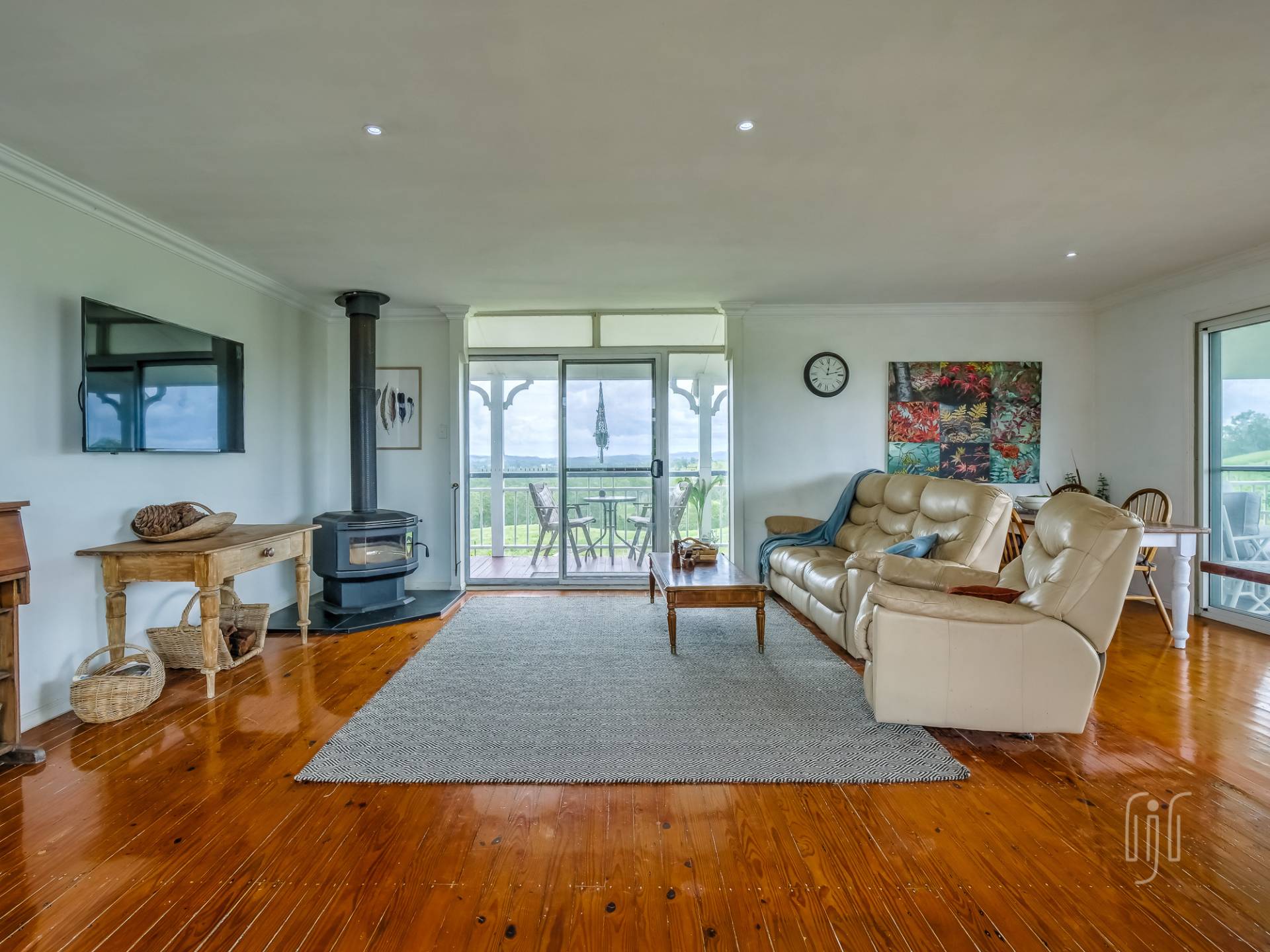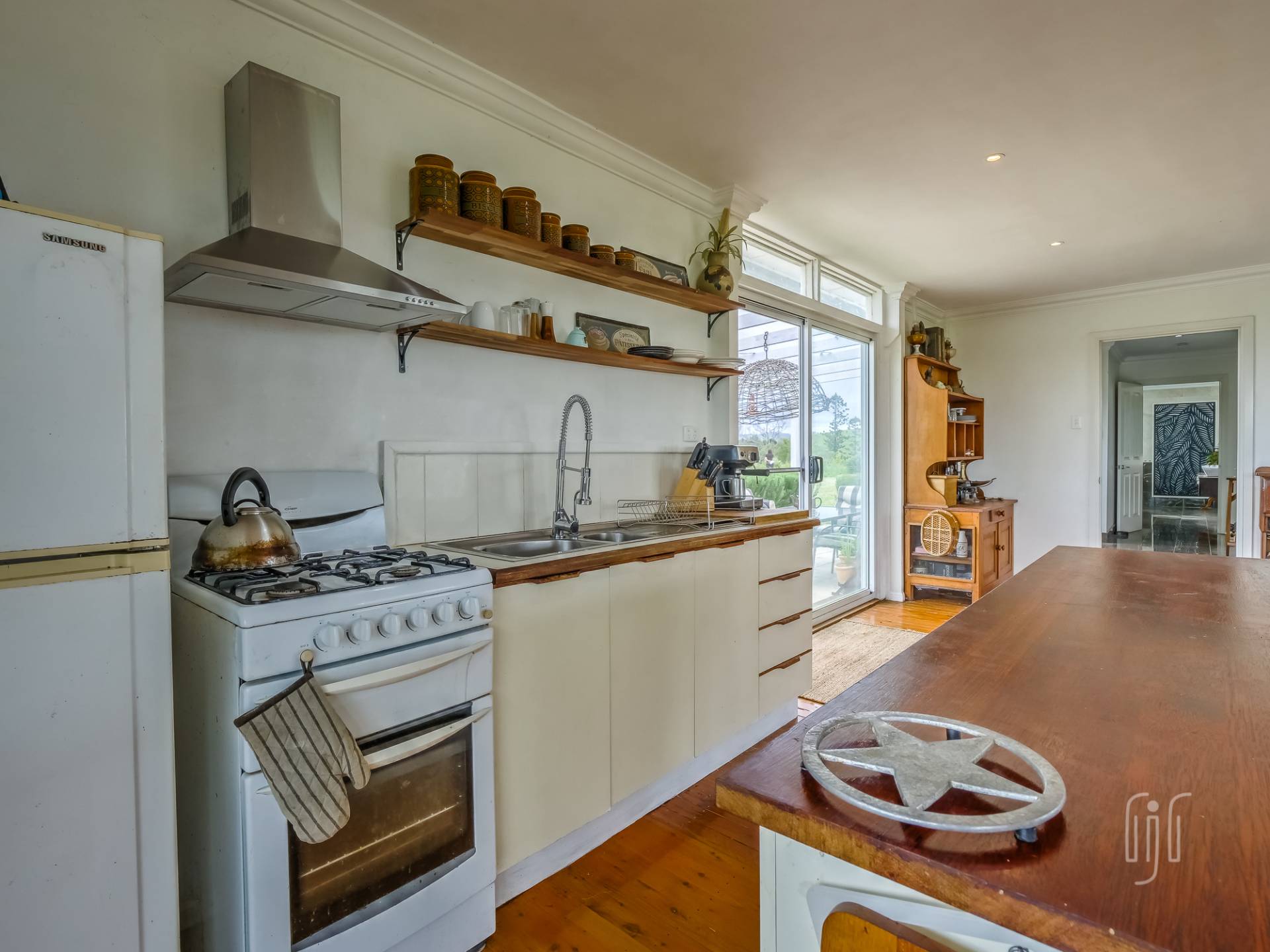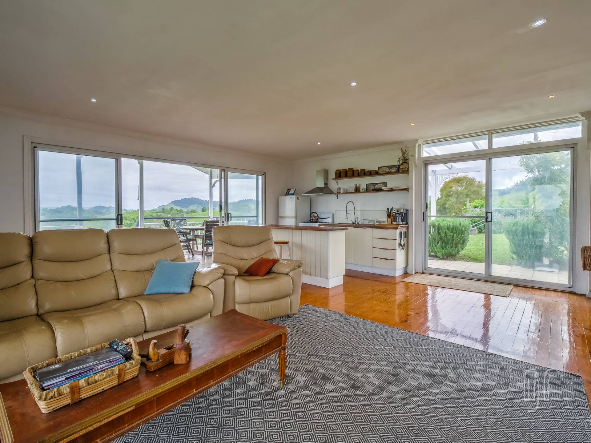 The newly renovated homestead is sited towards the rear of the block, in an elevated position that offers privacy, seclusion & panoramic (360º) views. You arrive at a wide section of the veranda and enter the home straight into an open plan living space. The extensive views can be enjoyed from inside, in almost every room, and outside, on the veranda or in the grounds. The veranda & open plan living area compliment each other, blurring the line between inside & outside living.