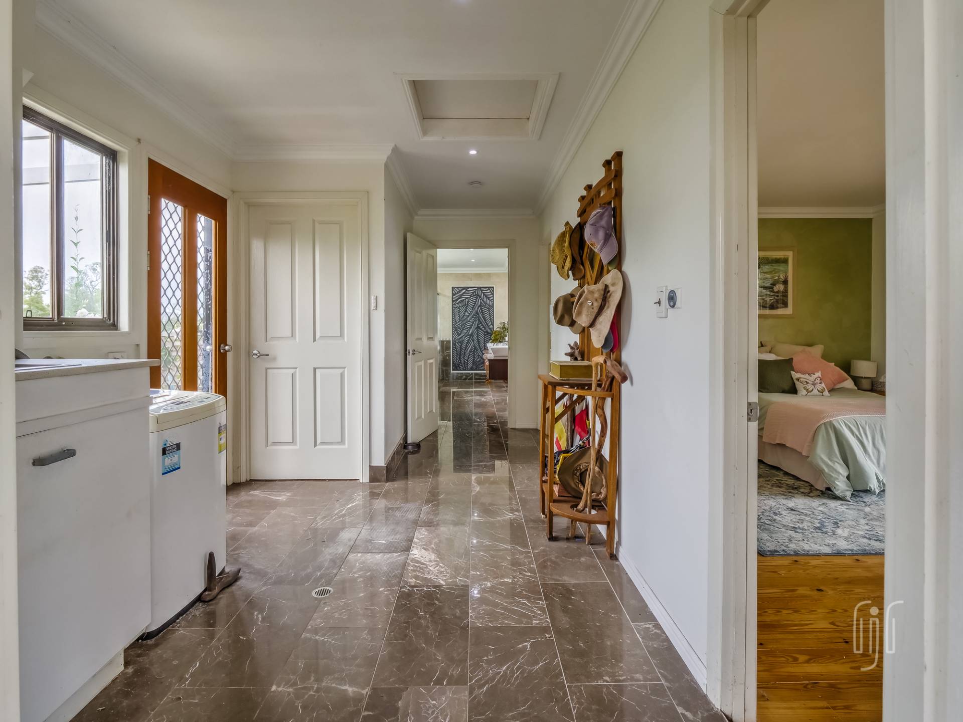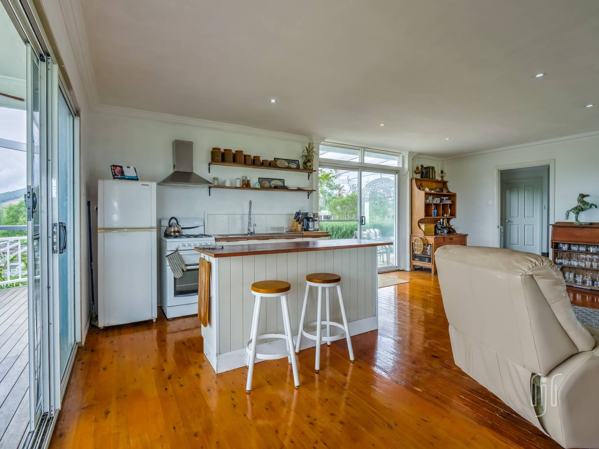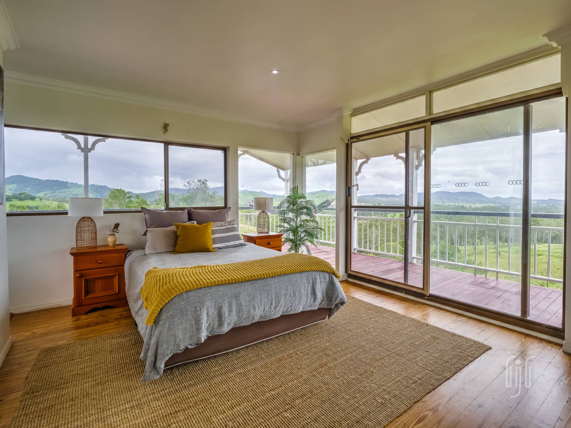 The newly renovated homestead is sited towards the rear of the block, in an elevated position that offers privacy, seclusion & panoramic (360º) views. You arrive at a wide section of the veranda and enter the home straight into an open plan living space. The extensive views can be enjoyed from inside, in almost every room, and outside, on the veranda or in the grounds. The veranda & open plan living area compliment each other, blurring the line between inside & outside living.