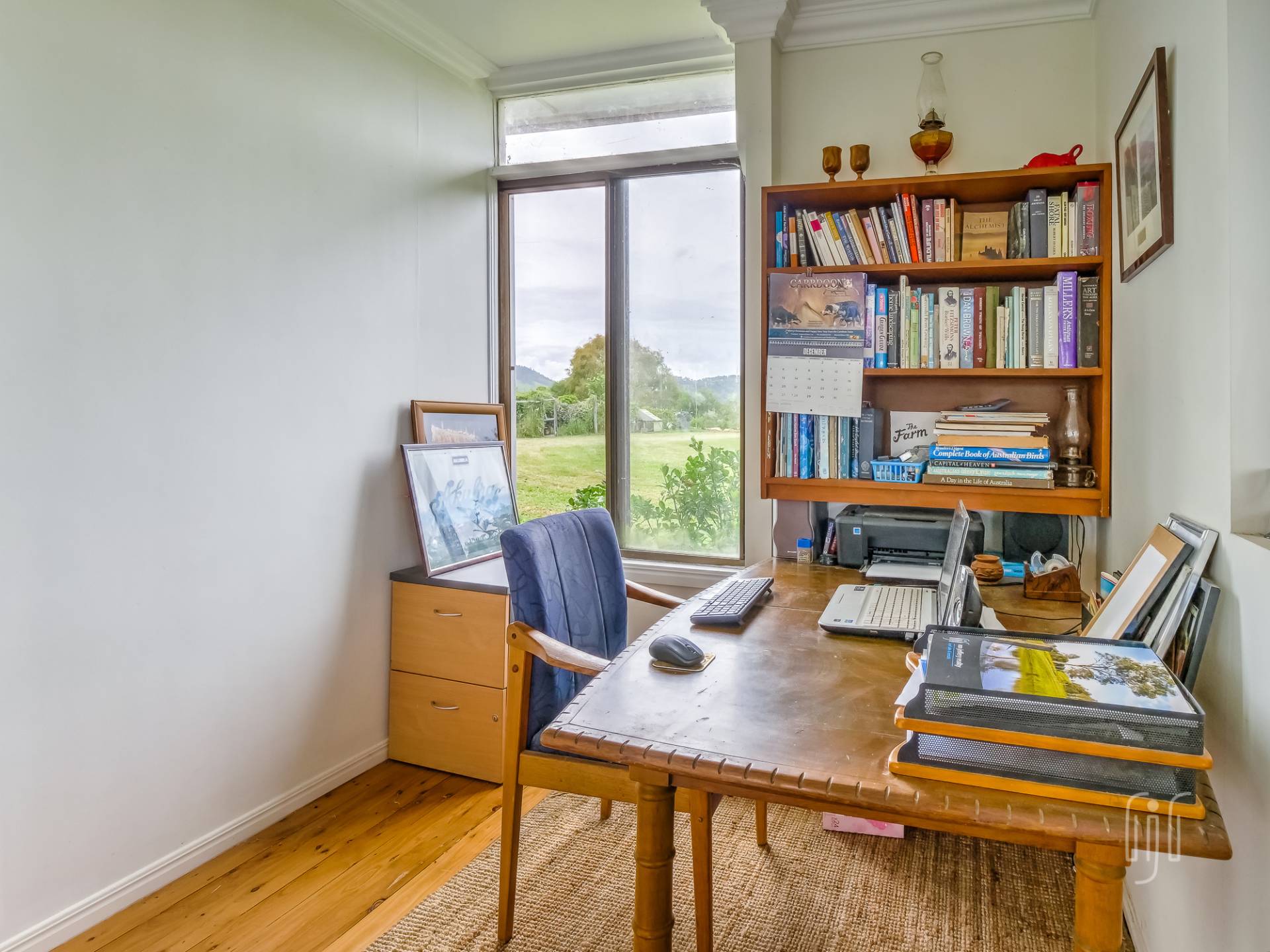 The living area takes in lounge, dining & kitchen and features polished timber floors, slow combustion heating and outside access from 3 sides. The home is totally off-grid with solar power and gas cooking & hot water. While there are 3 bedrooms, all with built-in robes, the master bedroom has an en-suite & study nook. There is an overgenerous sized main bathroom with shower, bath & double vanity.