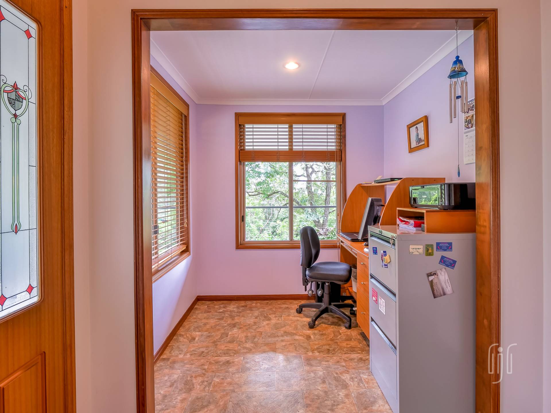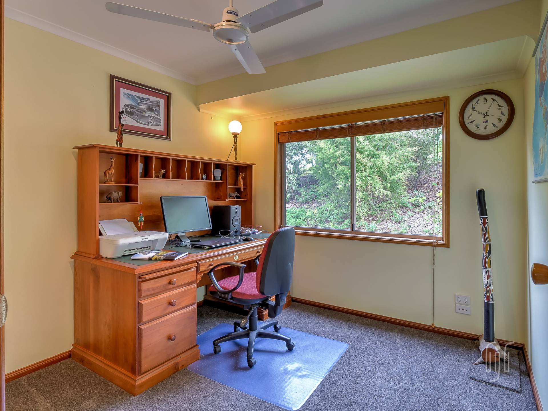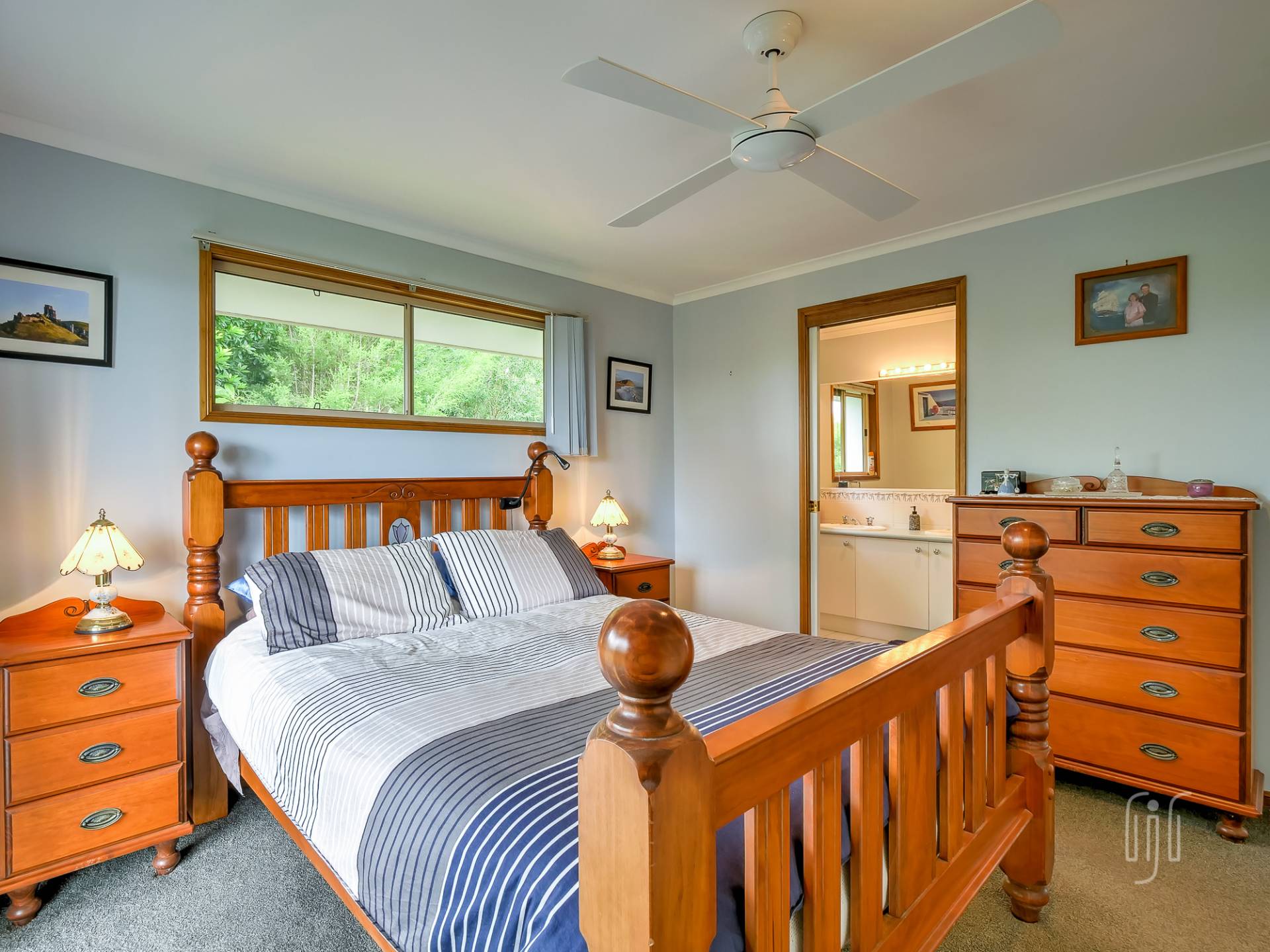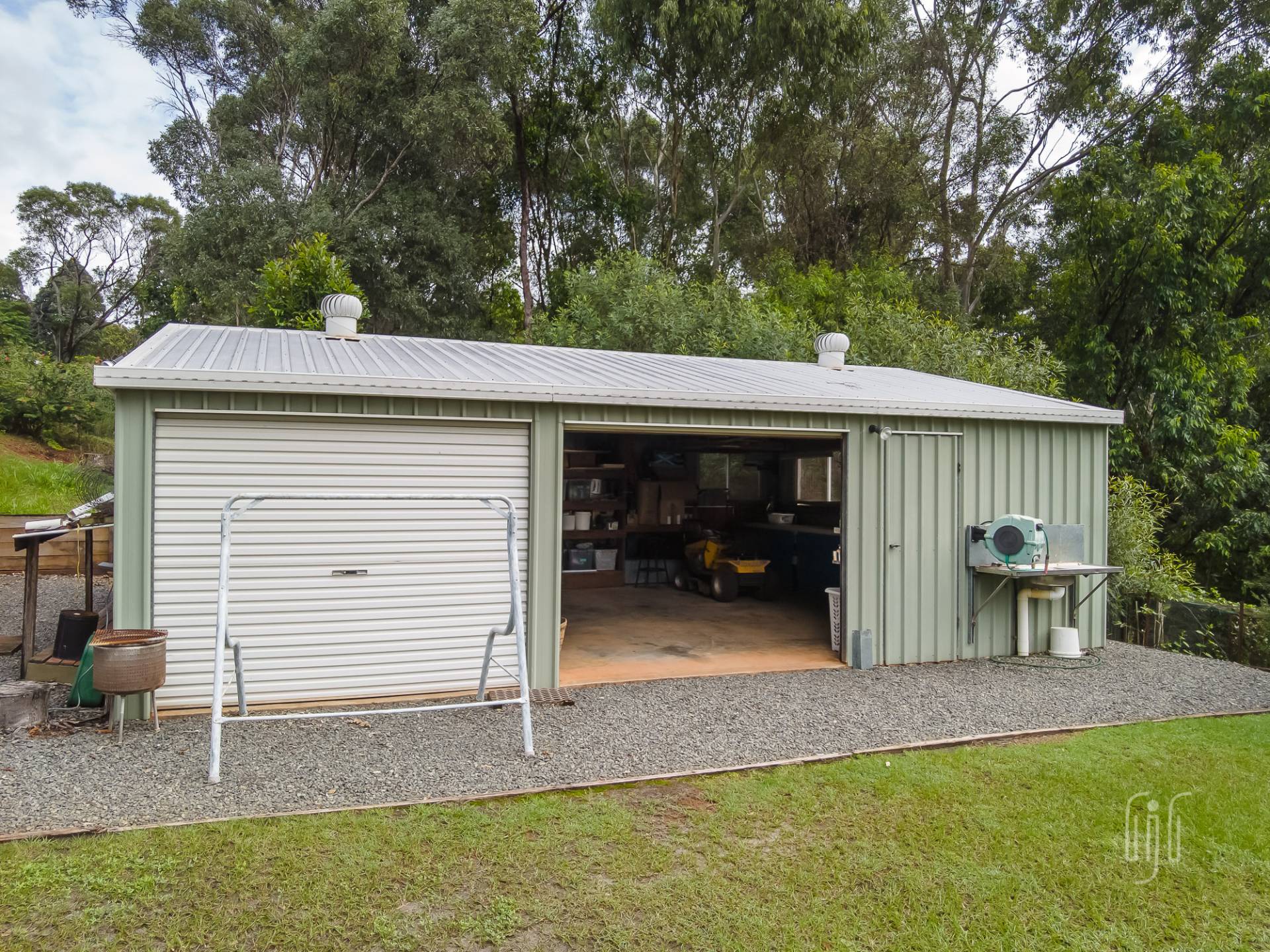 There are 3 bedrooms, all with built-in robes, the main with an en-suite. The main bathroom has a separate toilet and there is a dedicated study area. The laundry is downstairs, at the vehicle parking entry to the home. While under the house provides parking for 2 vehicles plus storage and entertaining areas, other outbuildings include a lined studio, hidden in the garden, and a 3-bay garage to cater for workshop, storage & two more vehicle parking spots. Property services include solar power, back to the grid.