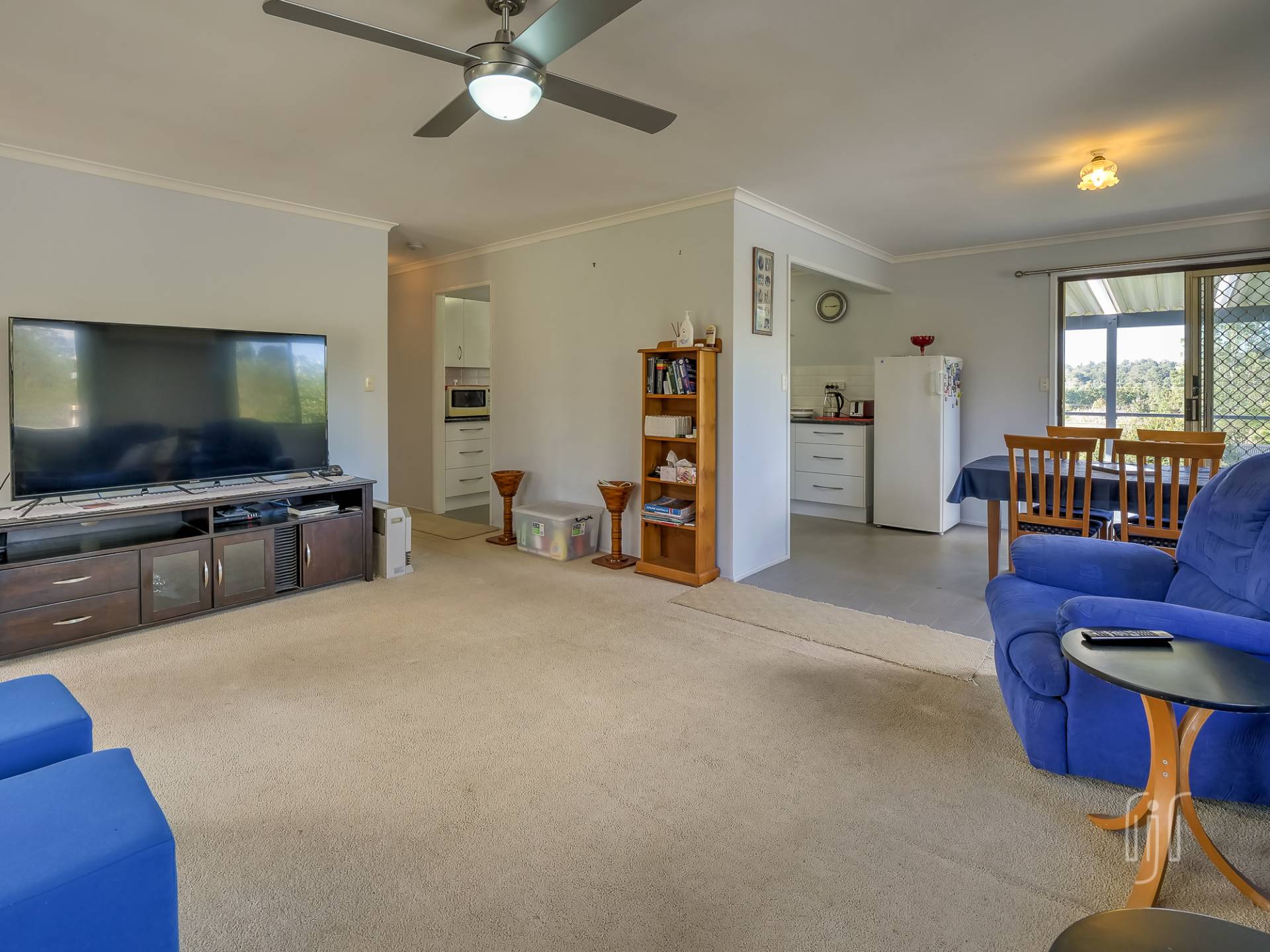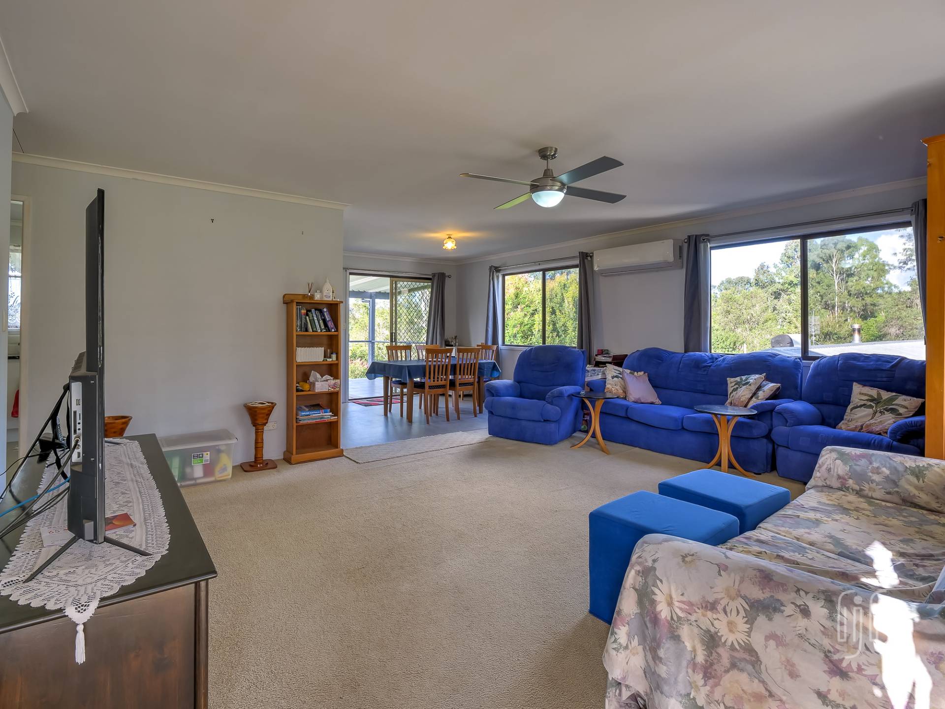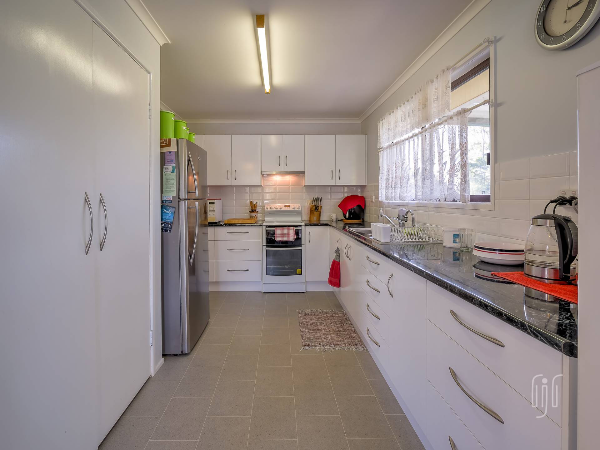 From the front veranda, you enter straight into the lounge section of an L-shaped lounge/dining room. This generous-sized room is air-conditioned, carpeted and has plenty of natural light. The kitchen has electric cooking and good storage including a large pantry. While there are 3 upstairs bedrooms, all with built-in robes, the main bedroom has air conditioning. The bathroom has a bath & separate shower and there is a separate toilet. The rear deck is the entertainment spot with a great northerly view over the rear yard and Amamoor countryside beyond.