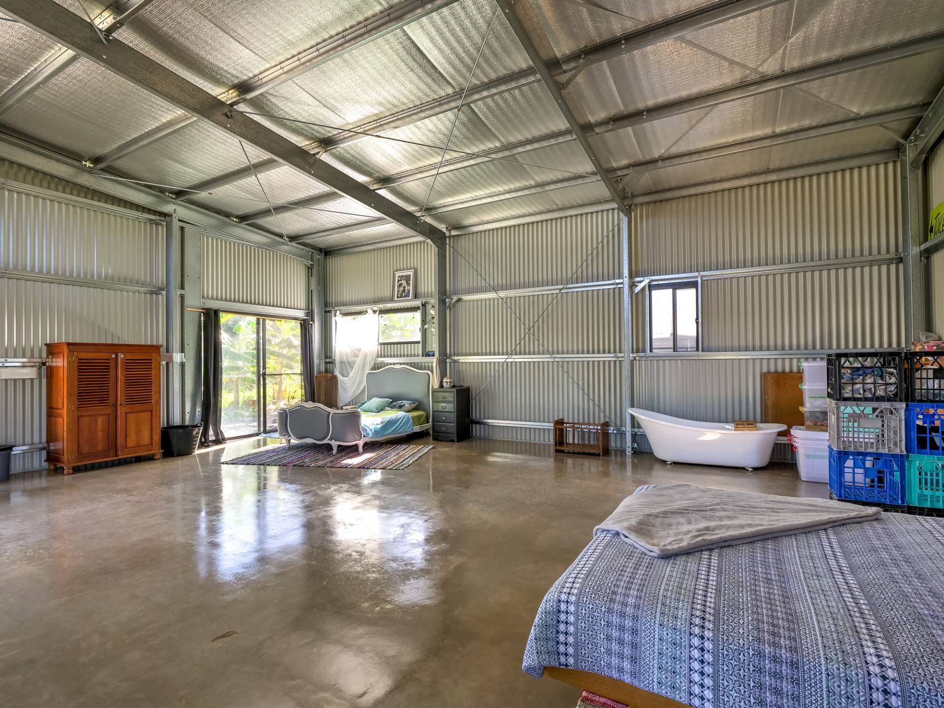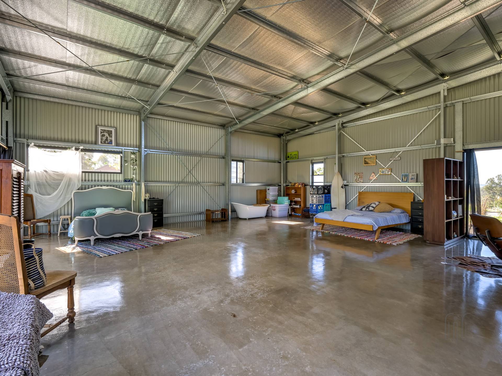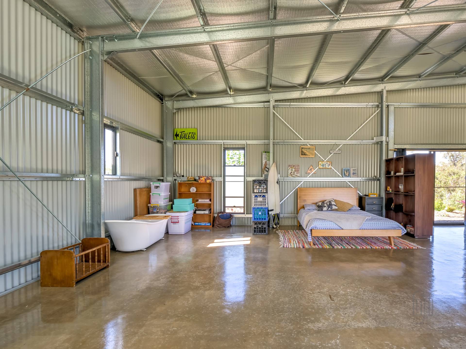 Almost brand new, the shed has an internal measurement of 14m X 9m (126m2 or approx 14sq in the old language), plus a 5m wide full-length veranda. It’s the size of a small house and, while open plan at this time, it could be divided into formal rooms.