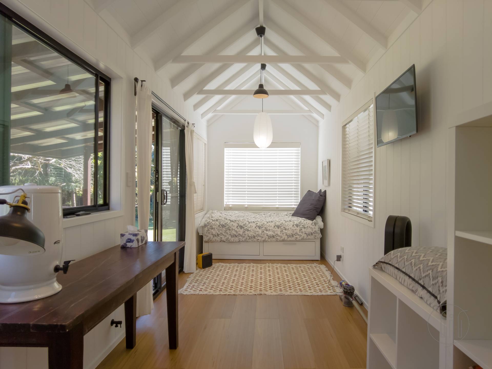 Set away from the main house, beside the machinery shed, the tiny house is a wonderful spot for guests or extended family. It has full bathroom facilities and its own covered deck.