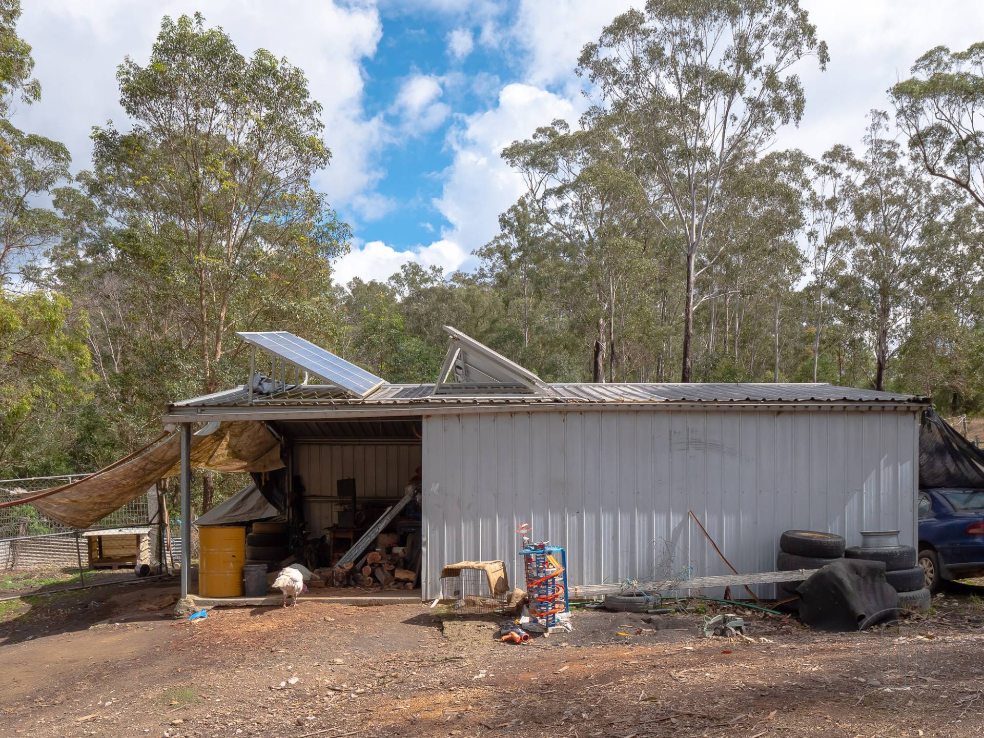 The property has a collection of sheds & yards and a menagerie of pets & animals.