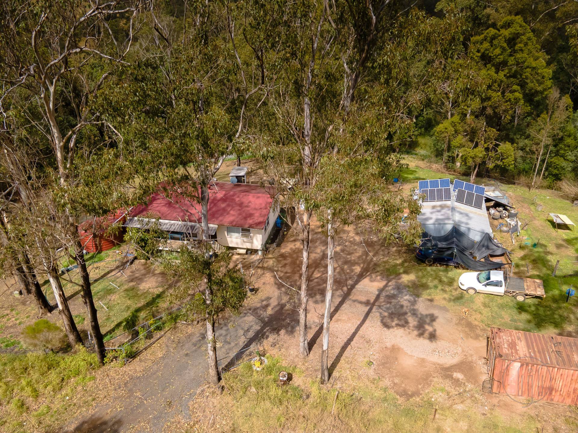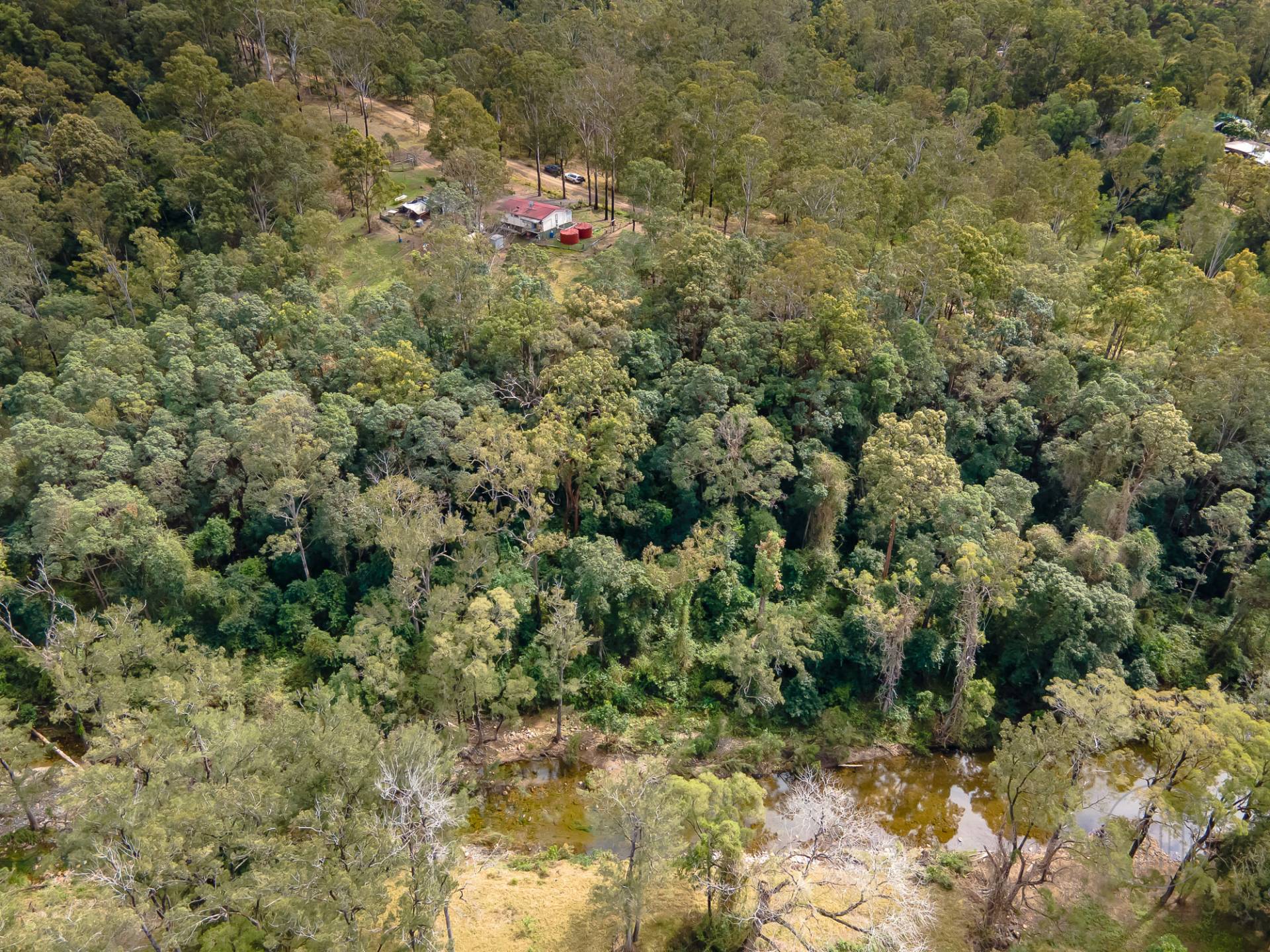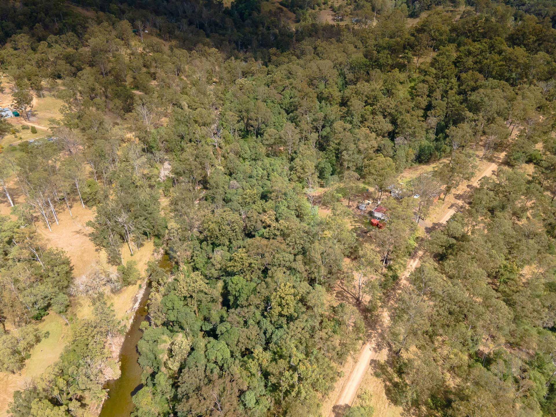 37 Kelly Rd is a 16-acre (6.47 ha) natural bush block with long frontage to both Kelly Rd and Amamoor Creek. There’s only one adjoining neighbour and it has good access to the Creek and Amamoor State Forest. This property is totally off-grid, with it’s own rainwater storage, septic system & off-grid solar power.