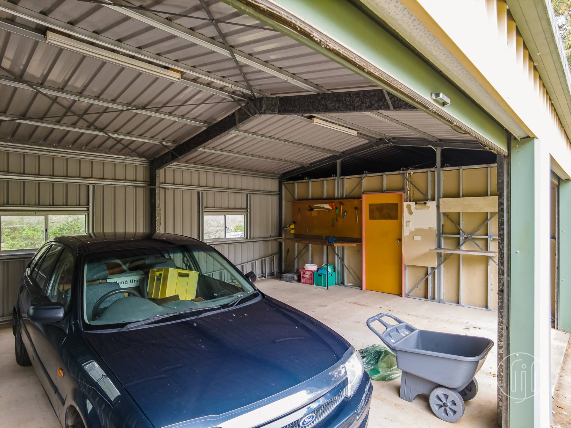 Outbuildings include a 3-bay garage with parking for 2 vehicles and workshop & storage, plus a lined room ideal for a home office, craft room or teenagers getaway. Services include mains & solar power, septic system and 3 water tanks. The established grounds include a stone retainer wall and mature trees & shrubs.
