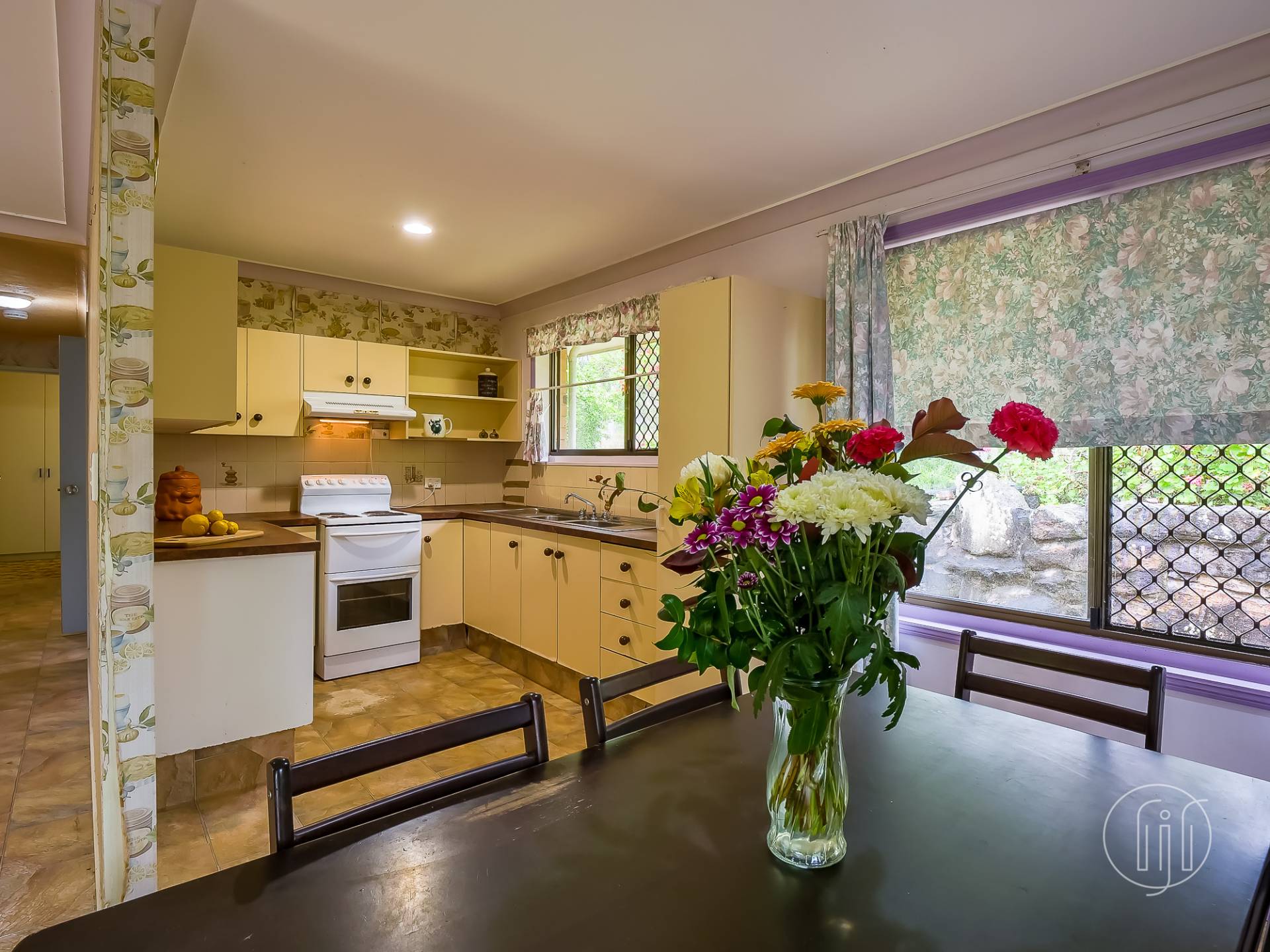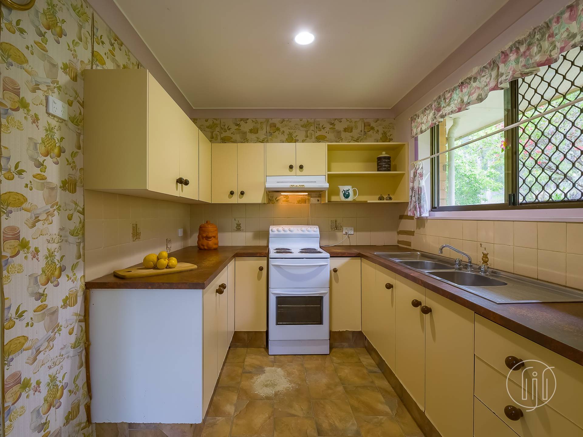 The low-set brick & tile house was built well over 30 years ago and is a fine example of the eighties ... back in the day! Inside, it’s straight into an L-shaped lounge/dining room via either the front door or a sliding door. The kitchen has a freestanding electric stove and while it is original, it’s in good condition. There are three bedrooms, all with built-in robes and one bathroom with a bath, separate shower and a separate toilet.