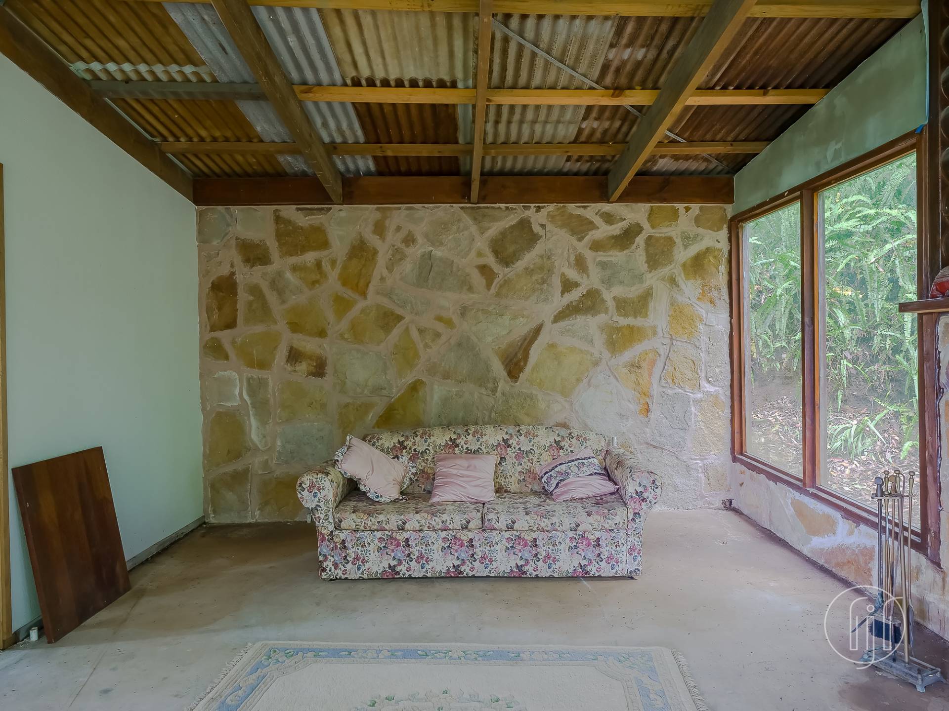 Inside the cabin is just as cute as the outside, with a rock feature wall, open fireplace and good natural light from windows on three sides. There is a simple kitchen with gas cooking, a combined bedroom/living room or bedsit, and a bathroom with toilet, shower & bath. While there is a septic system and water tank, the small solar power system needs to be upgraded.