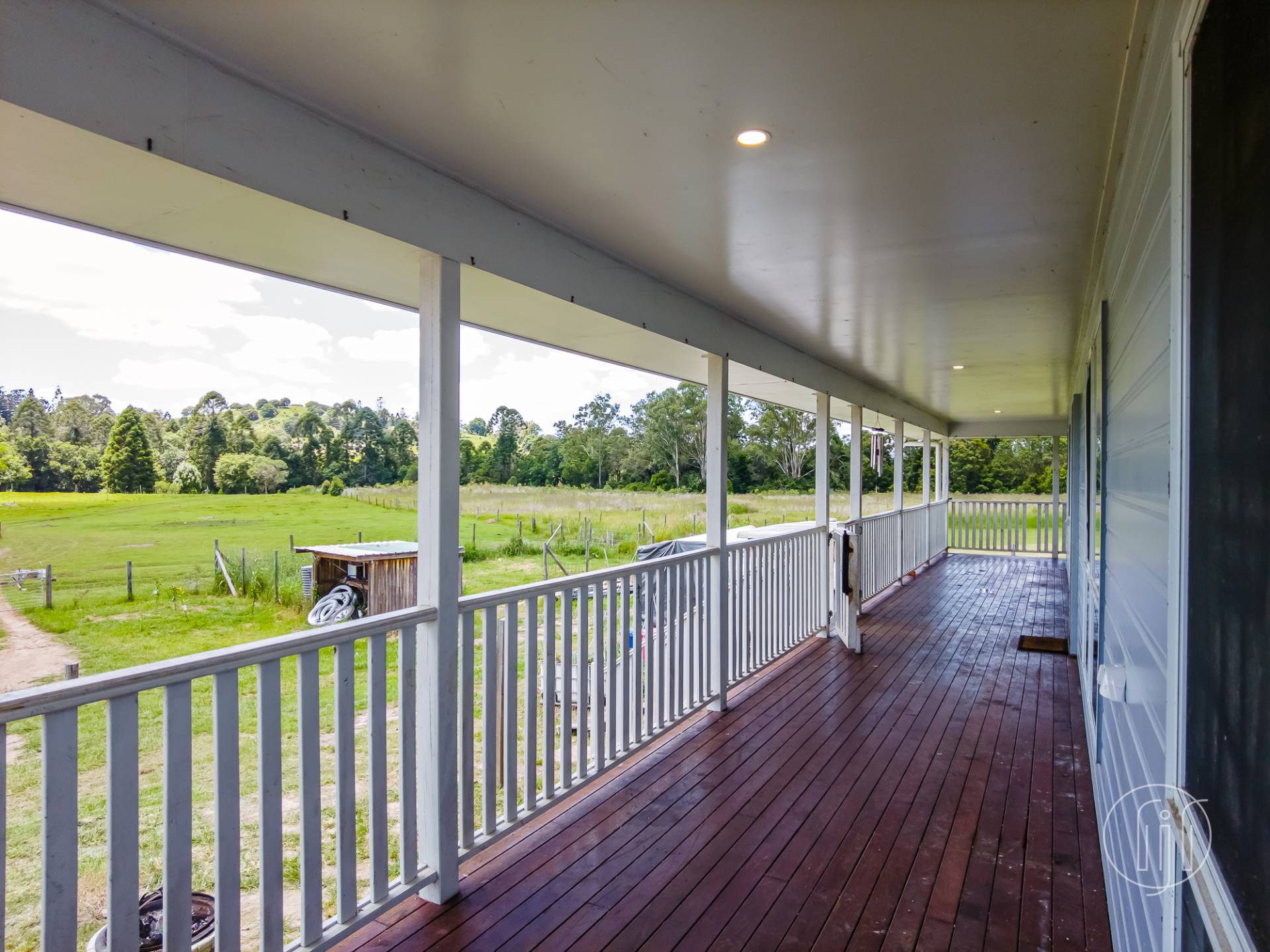 The recently-built home is sited close to the road access at the end of a cul-de-sac road. Entry to the home is via a full-length front veranda that overlooks the block, right through to the tree-lined creek.
