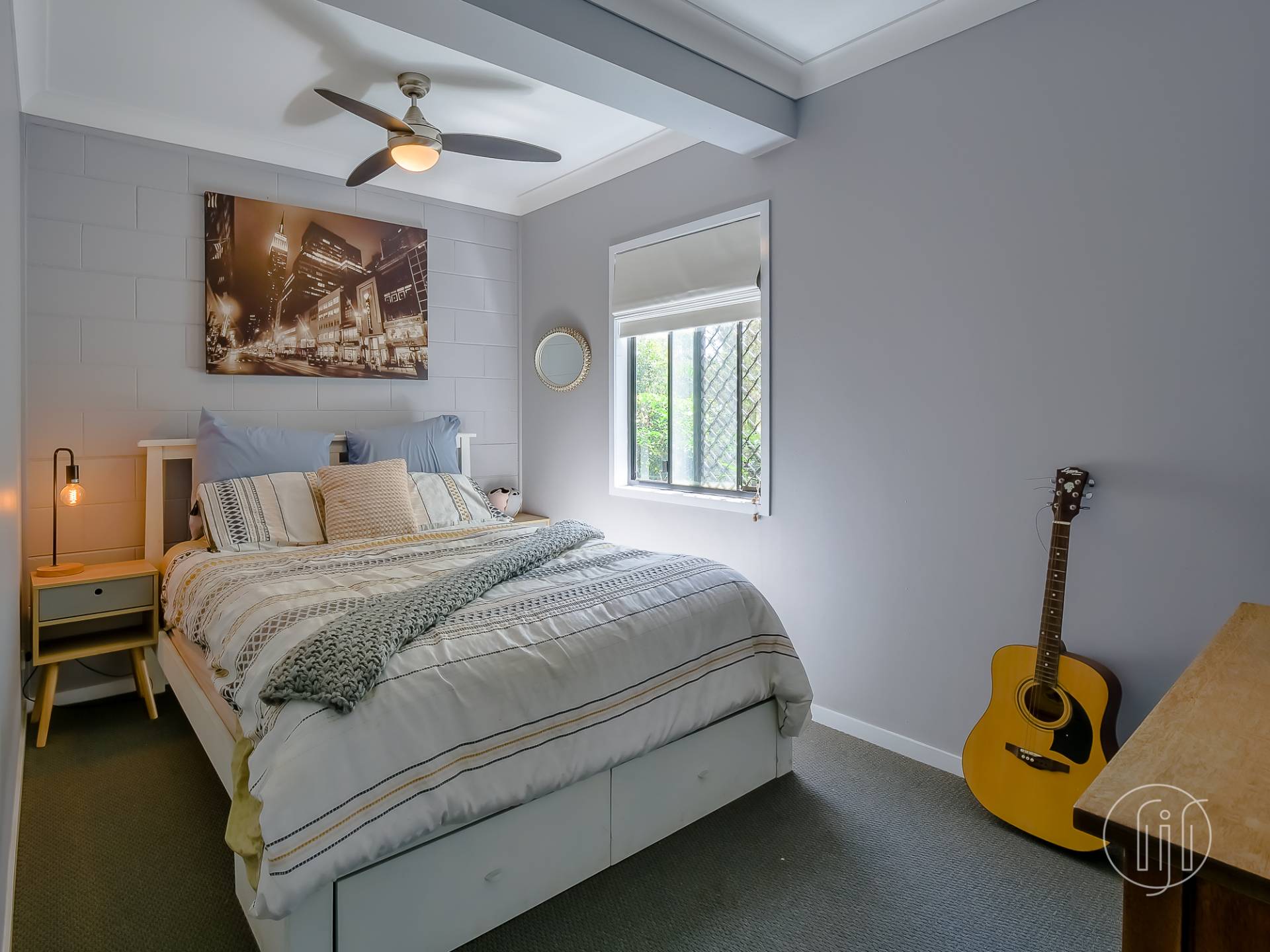 The upstairs level is also home to the master bedroom suite, complete with walk-through robe & ensuite, and the guest bathroom.