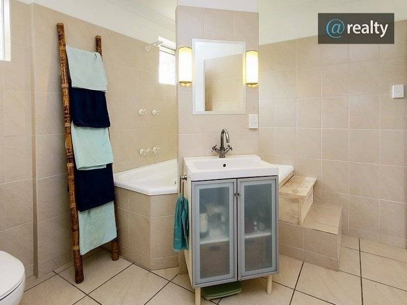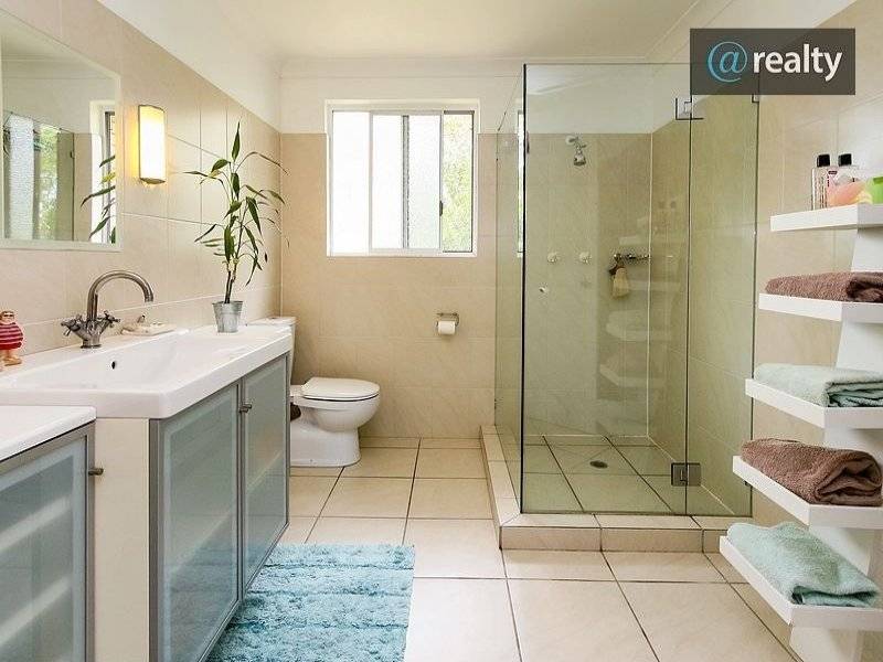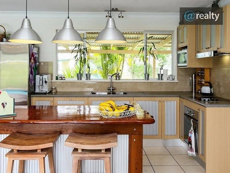 The home is located towards the rear of the block, where the focus is on the in-ground pool and spa. From the pool, you cross a tiled entertaining area, through an extra-large sliding door opening, into a fully tiled open plan living space. This area consists of a large lounge room, comfortable dining area and a kitchen where the rustic feel includes a timber topped island bench. Feature lights in the kitchen and dining rooms are fantastic. From inside, you look out to the pool in the foreground and the mountains in the background.