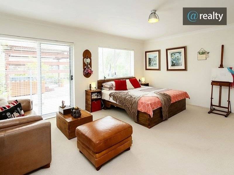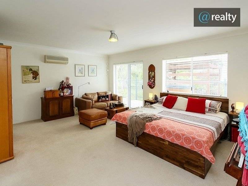 The master bedroom suite is huge! It has a sauna, its own sitting area and an en-suite with a spa bath. Plus, separate access to the pool area. There are two other double size bedrooms and a modern bathroom.