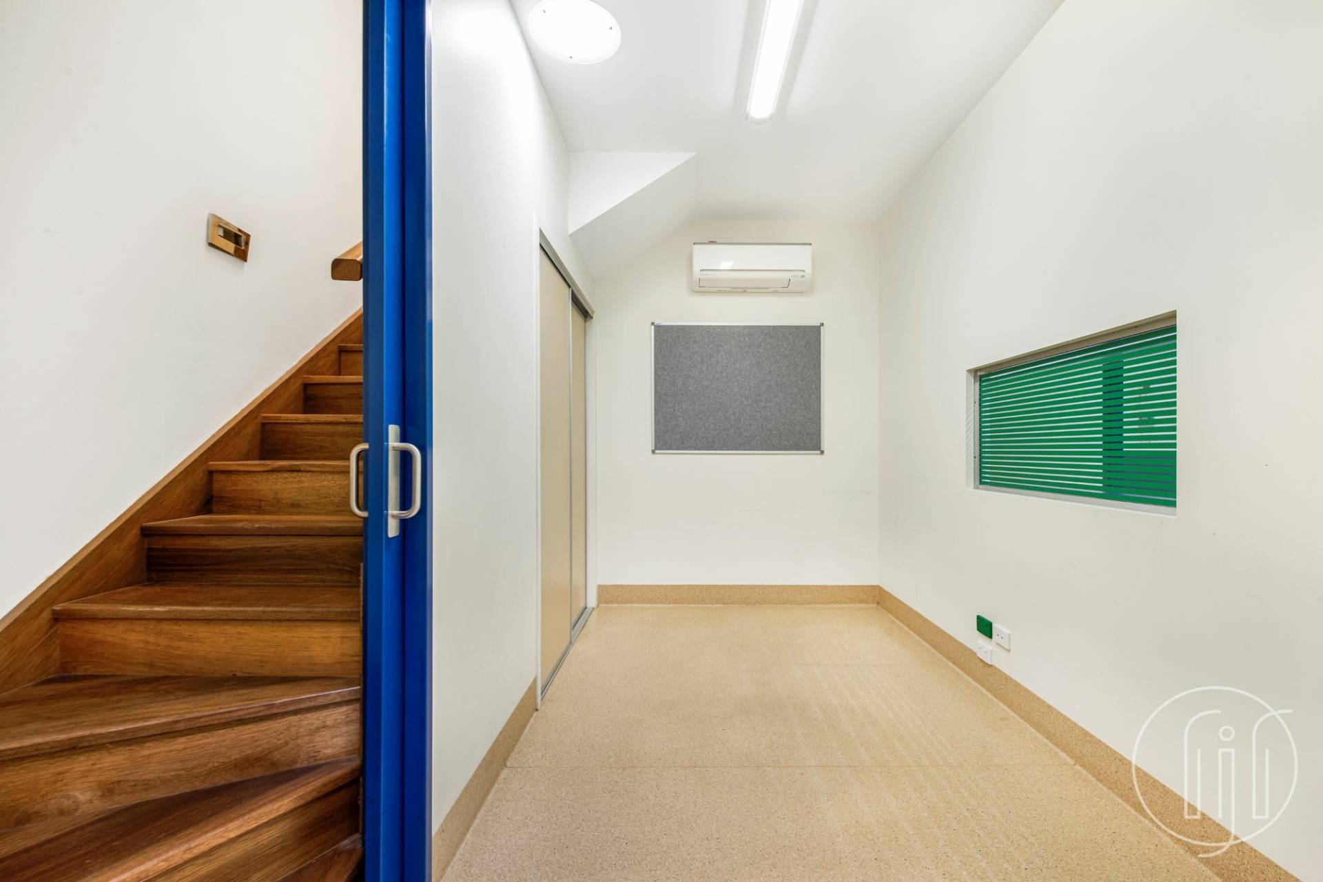 All rooms have their own RC/AC units, as well as ducted heating/cooling in the reception & boardroom areas.  The building has high ceilings, is well lit with natural lighting, ample skylights, and downlights.