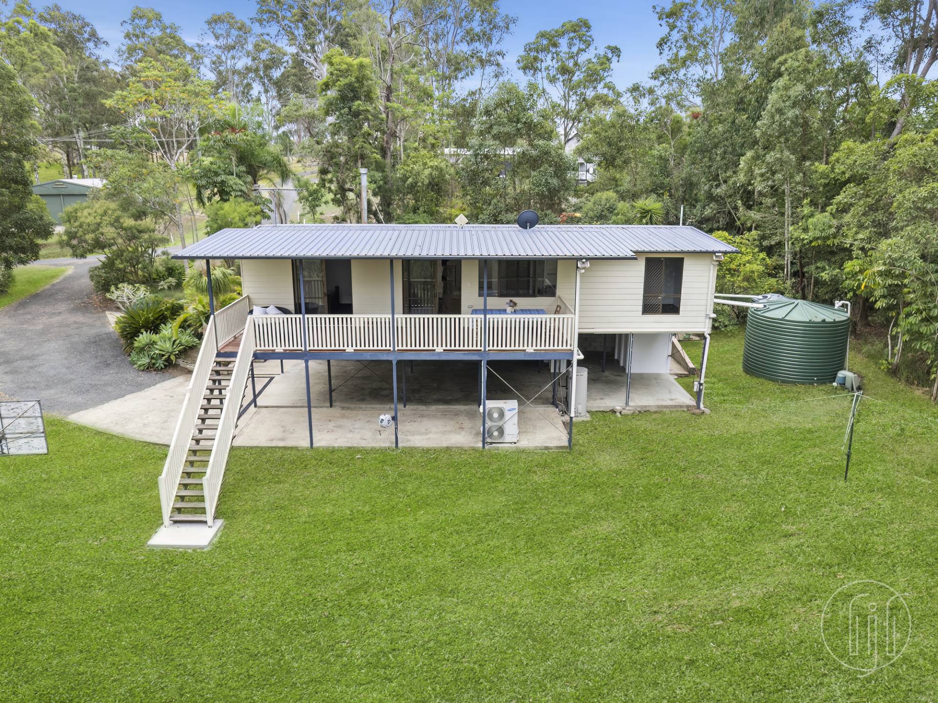 Tall mature trees, neatly mowed grassed areas, good water tank storage and the Dagun Gully running through the block – this is a spring fed creek providing permanent water supply.