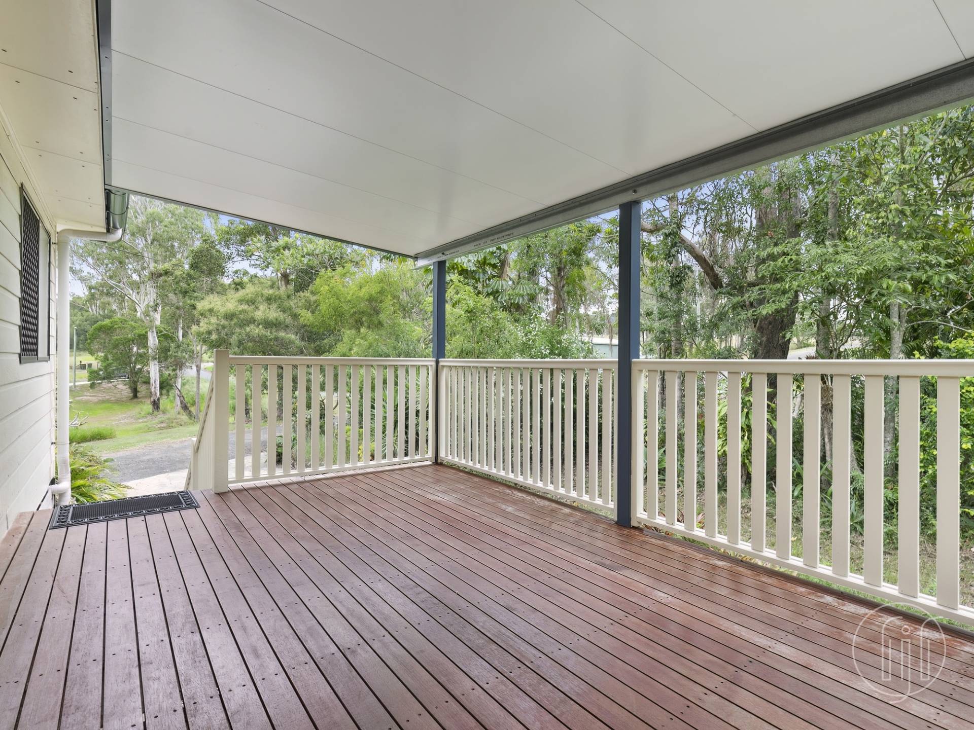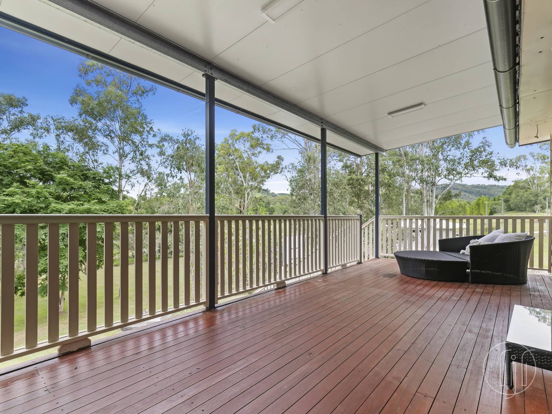This second entertaining area is a duplication of the front deck with insulated pergola, timber railing plus incredible views down the paddock to the creek and beyond.