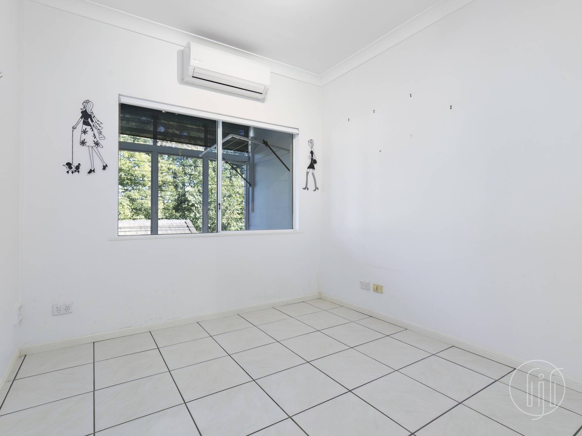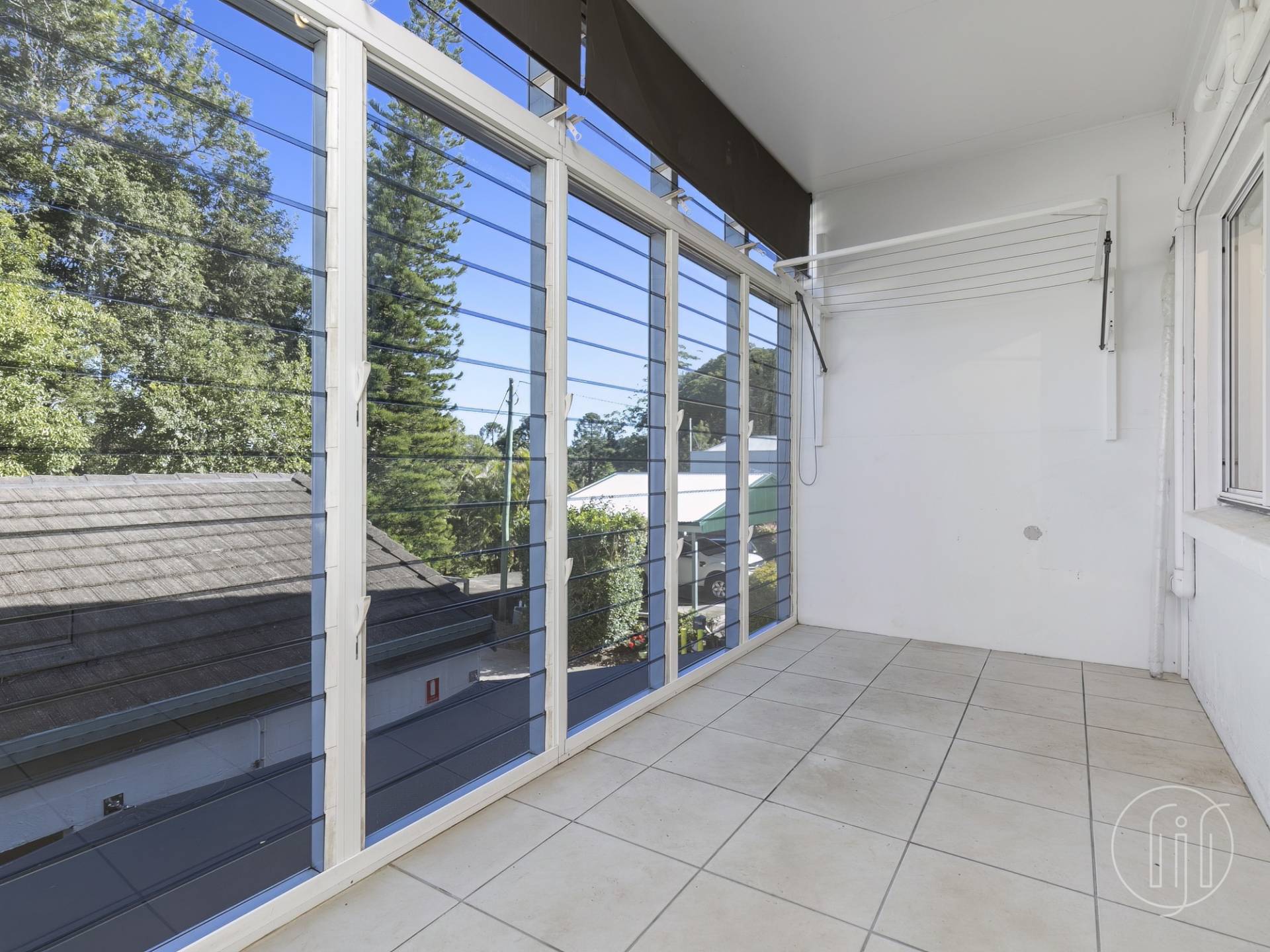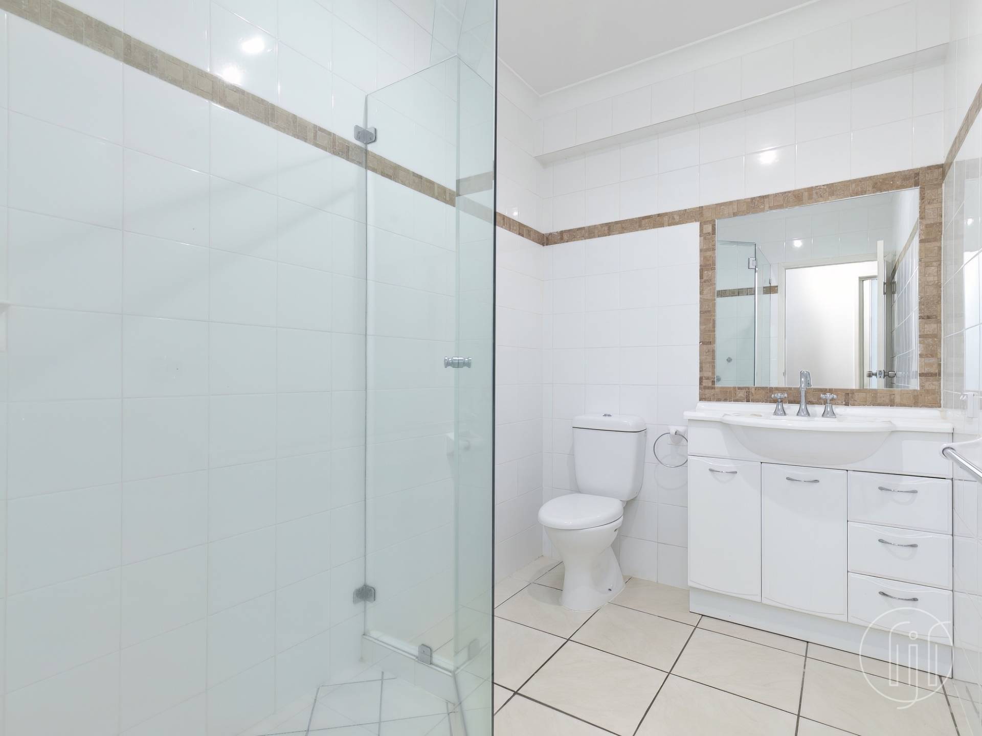 There are two bedrooms, both with their own air conditioning units and built-in robes, plus the master has access to another sitting area.  This western facing rear balcony is fully enclosed with a wall of glass louvre windows, perfect for enjoying the sunny afternoons in winter, plus there’s a double storage cupboard at one end and clothesline at the other.