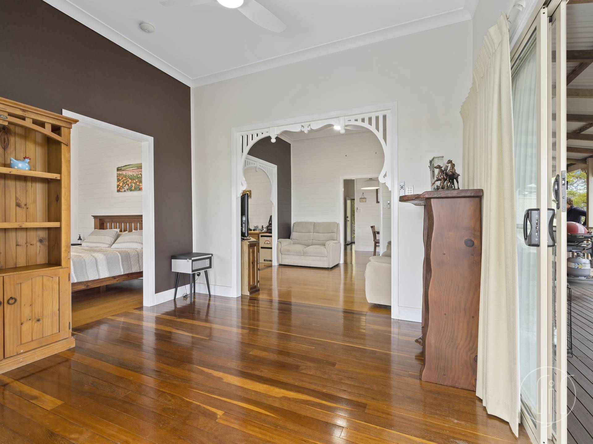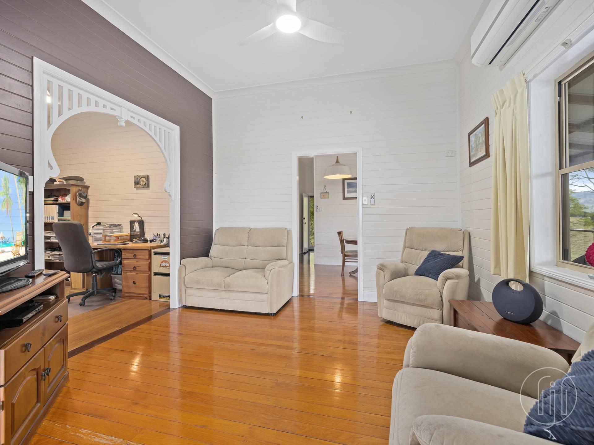 This highset Queenslander has been very tastefully renovated and features include polished timber floors, 10-foot ceilings with ornamental centrepieces, VJ walls, and period trims throughout.