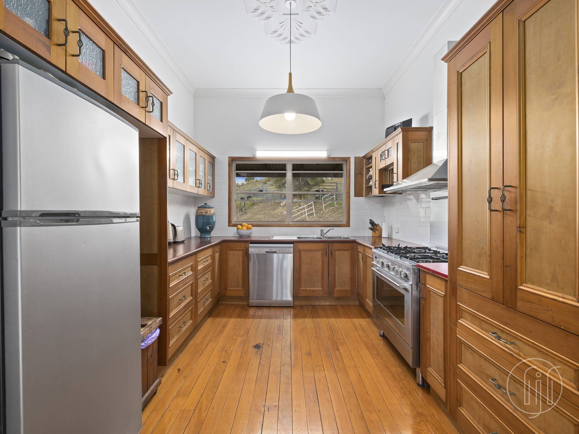 The timber and glass kitchen is its own statement, made from the original ceiling timbers and with polished timber benchtops, freestanding stainless gas cooker, feature rangehood and dishwasher, this beautiful space will bring out the gourmet chef in everyone.
