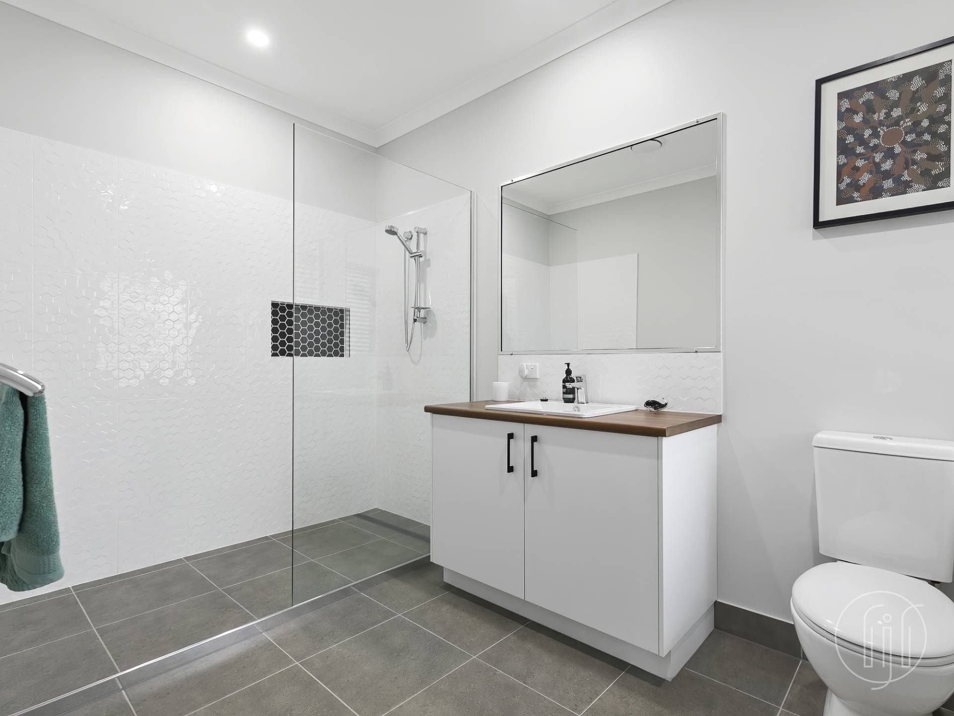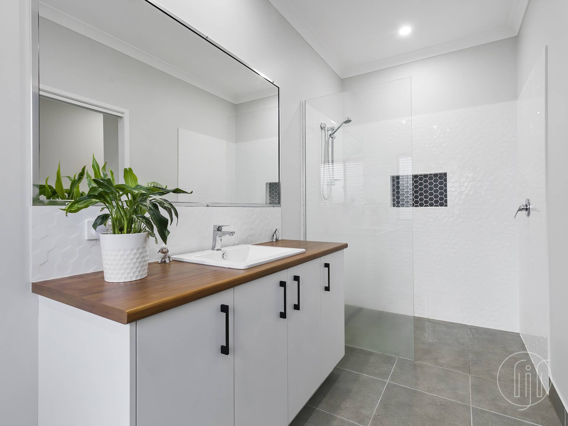 There are 4 bedrooms, master with his and her built ins and large ensuite, and direct access to the veranda from the front three bedrooms.  The main bathroom and ensuite have been carefully designed to match with large walk-in showers and generously sized vanities with timber benchtops.
