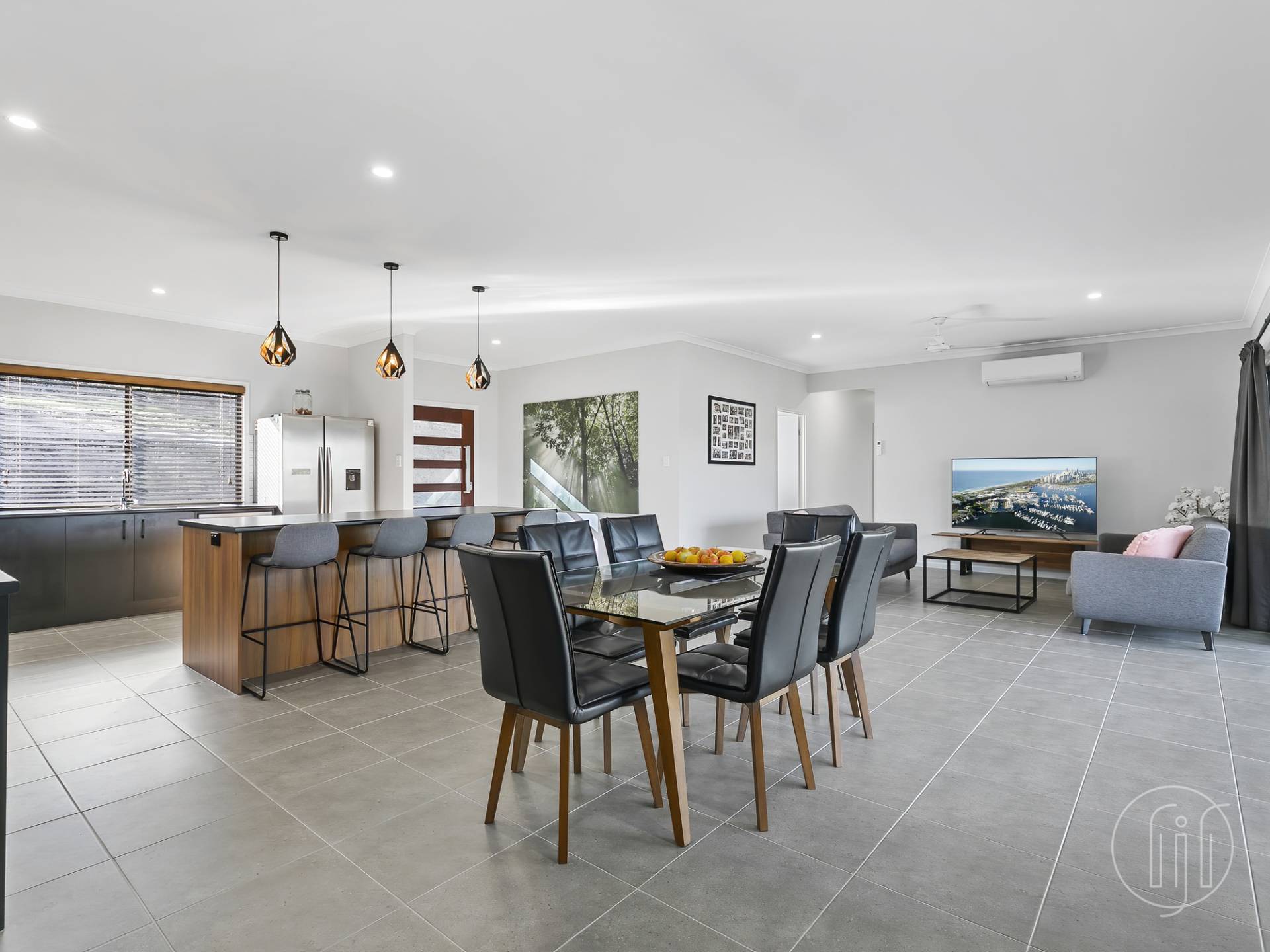 Inside, the lounge and dining rooms are open planned and filled with light from the 6-metre wide glass concertina sliding doors.  There is reverse cycle air conditioning, and the property has large floor tiles right through.