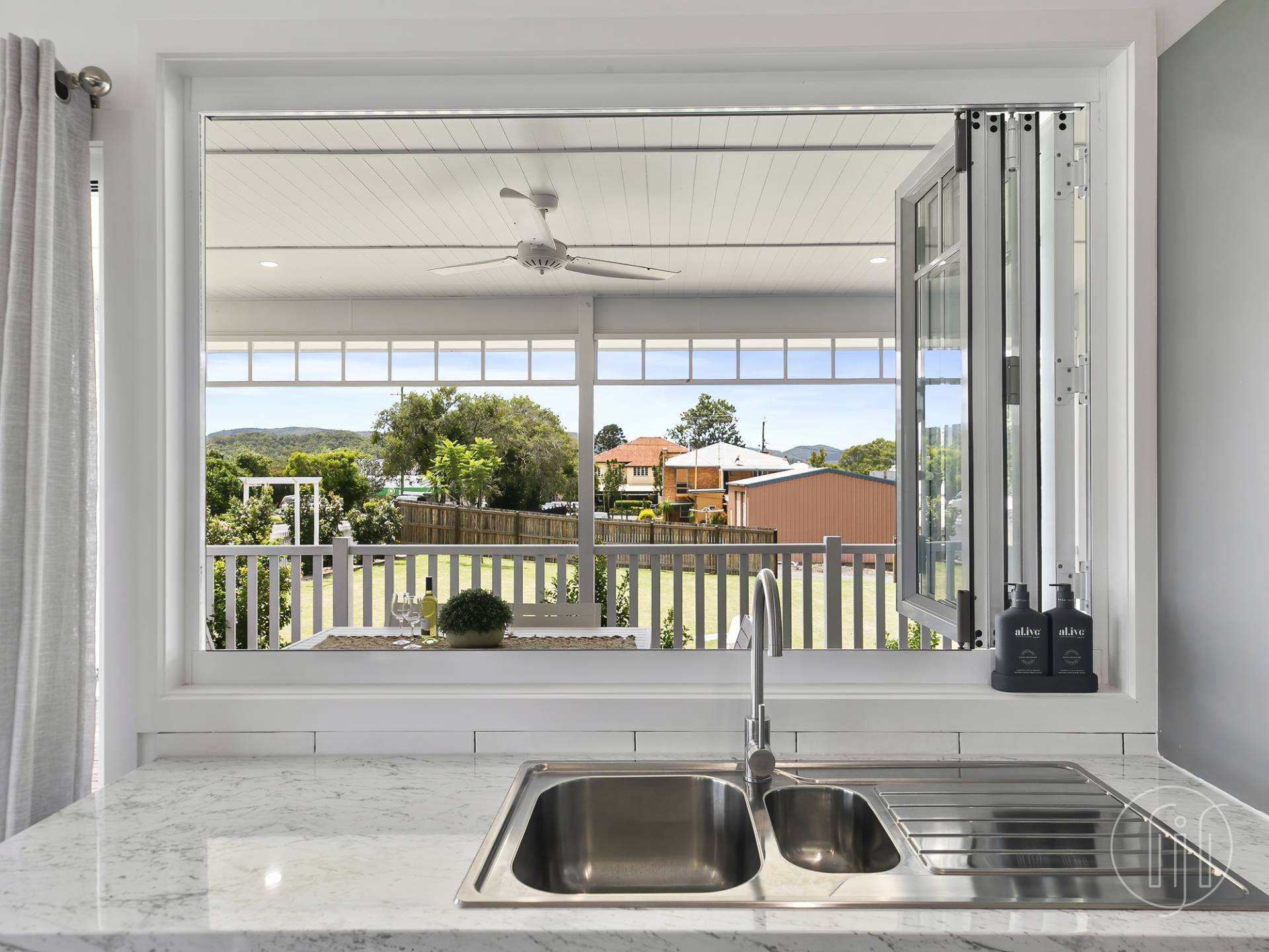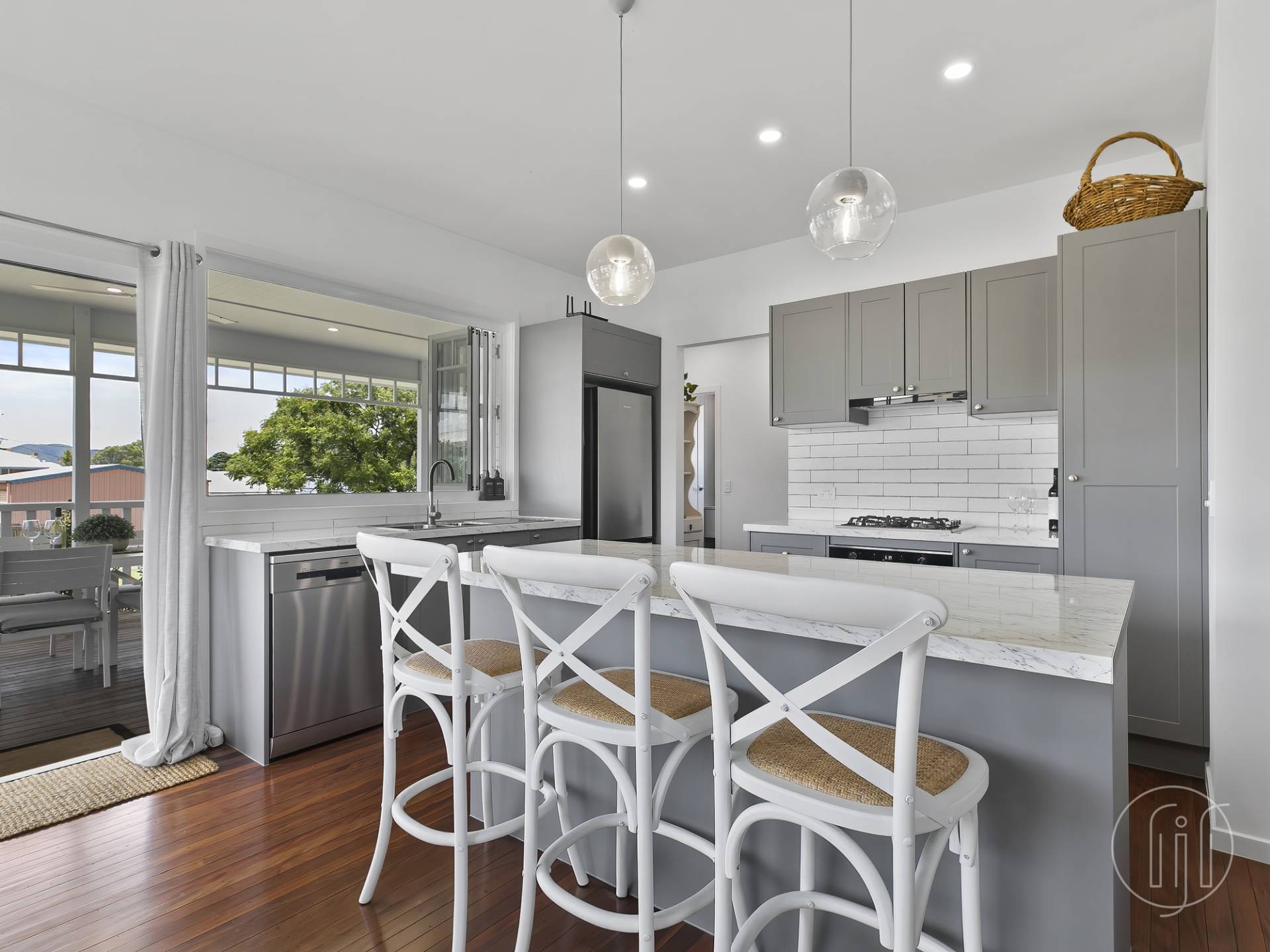 Entertaining guests outside, whilst preparing in the kitchen, has been made easy with concertina servery windows and glass sliding doors from the dining room leading out onto your large, covered veranda.  This space is big enough to entertain the whole family, yet at the same time perfect for your morning breakfast or a quiet drink.  The veranda looks out to the fully fenced backyard and has timber railing with matching fretwork.