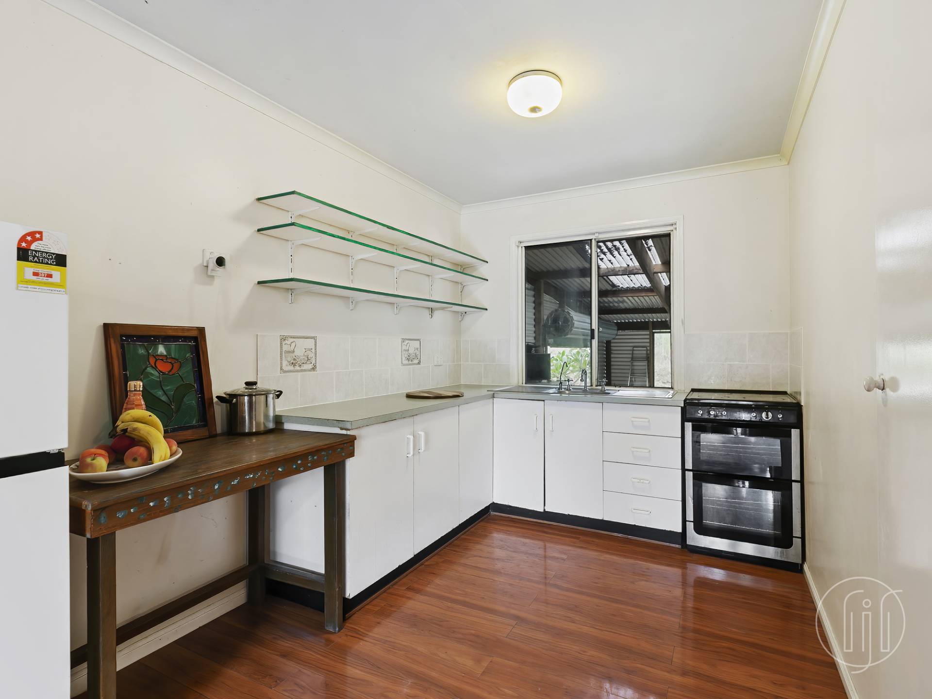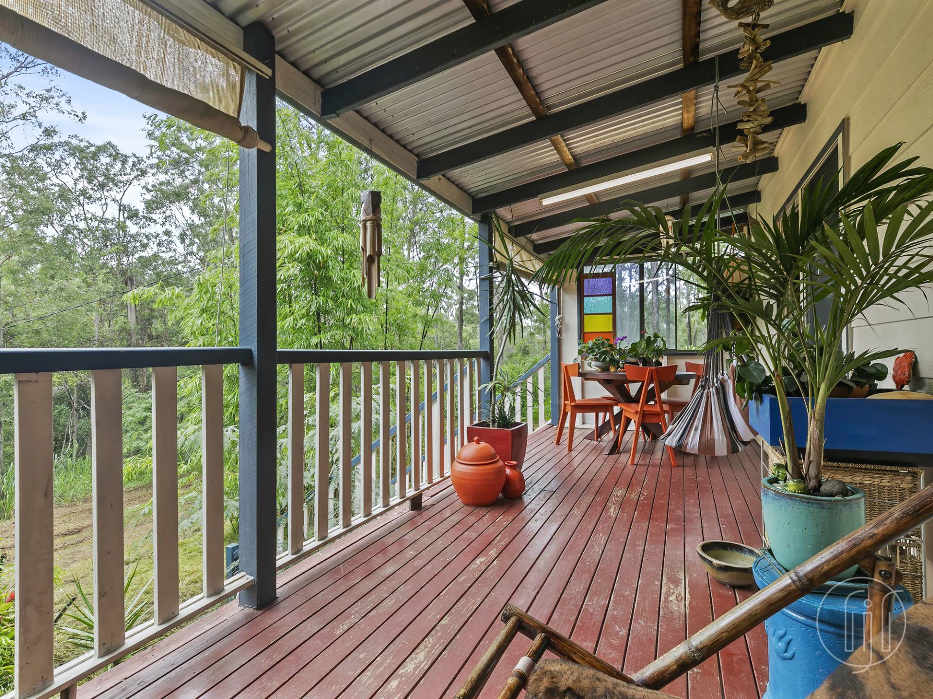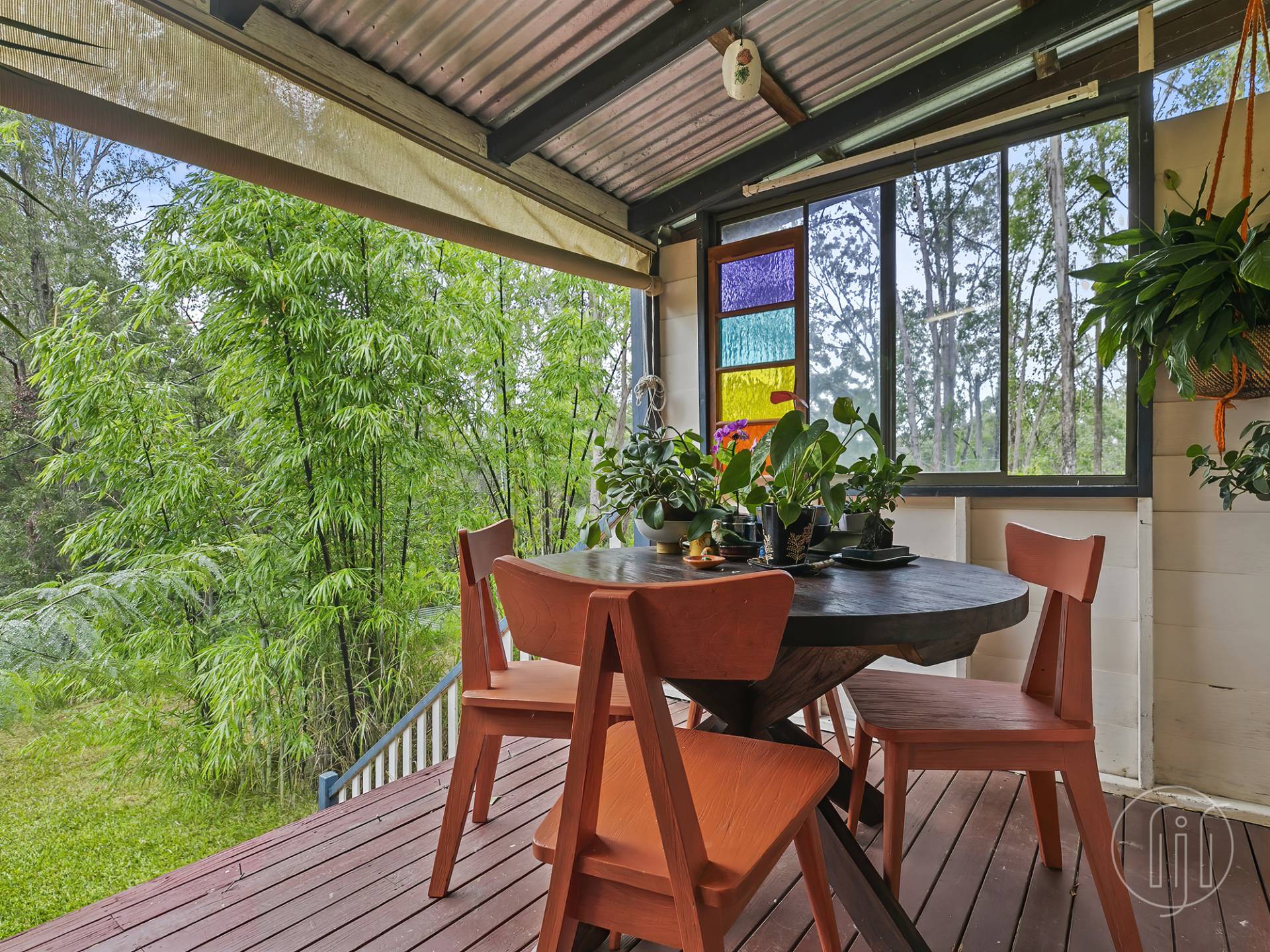 Wide front stairs lead to a full length veranda that has a northerly view over the treed landscape, and a seasonal creek.  The grounds around the cottage include stands of bamboo and some mowed grassed areas.