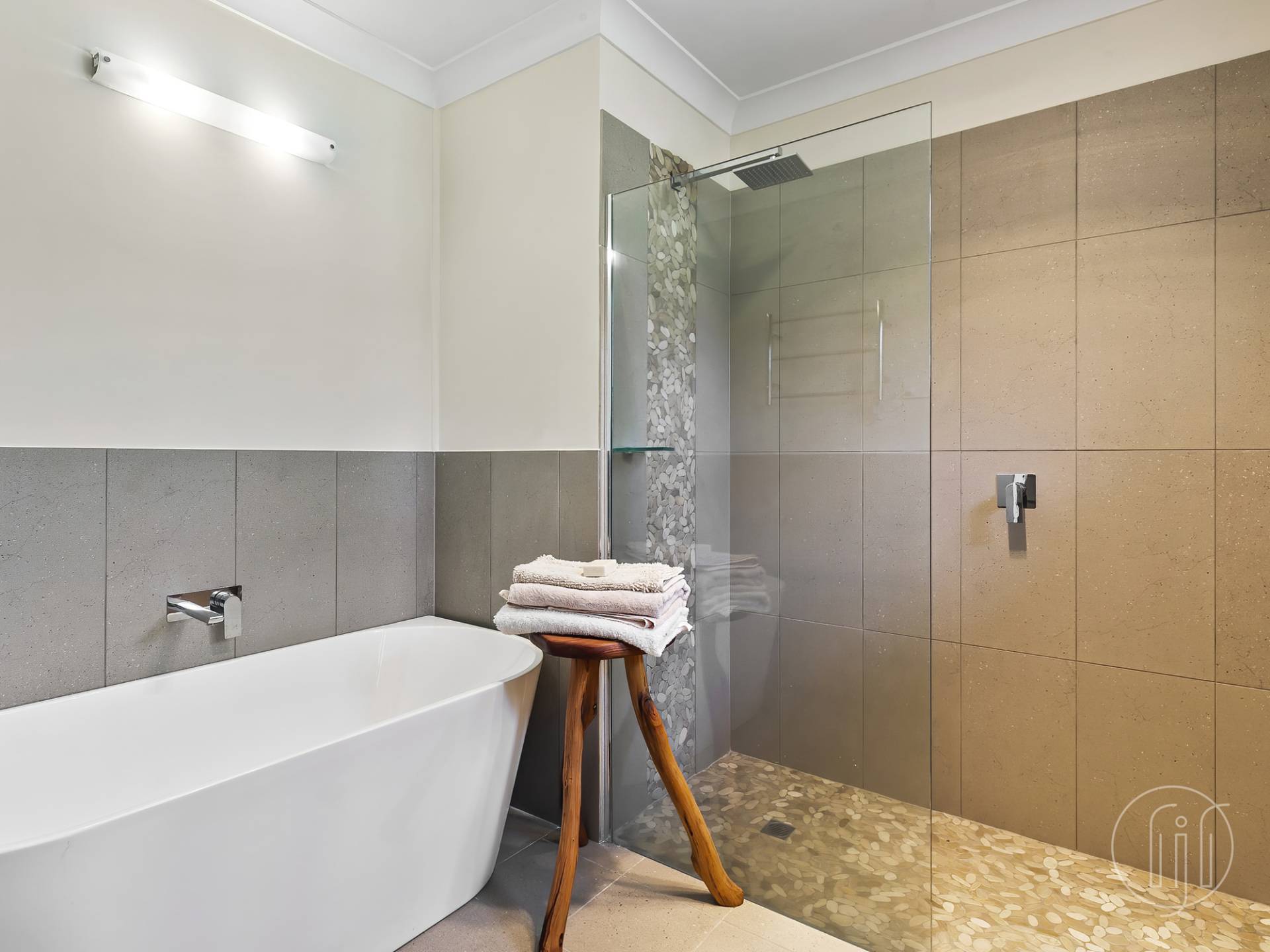 There are 4 bedrooms, the main with a walk-in robe and ensuite, and the recently upgraded bathroom features a freestanding bath and easy access shower. A separate toilet and powder room plus spacious laundry with great storage have access from the central hallway.