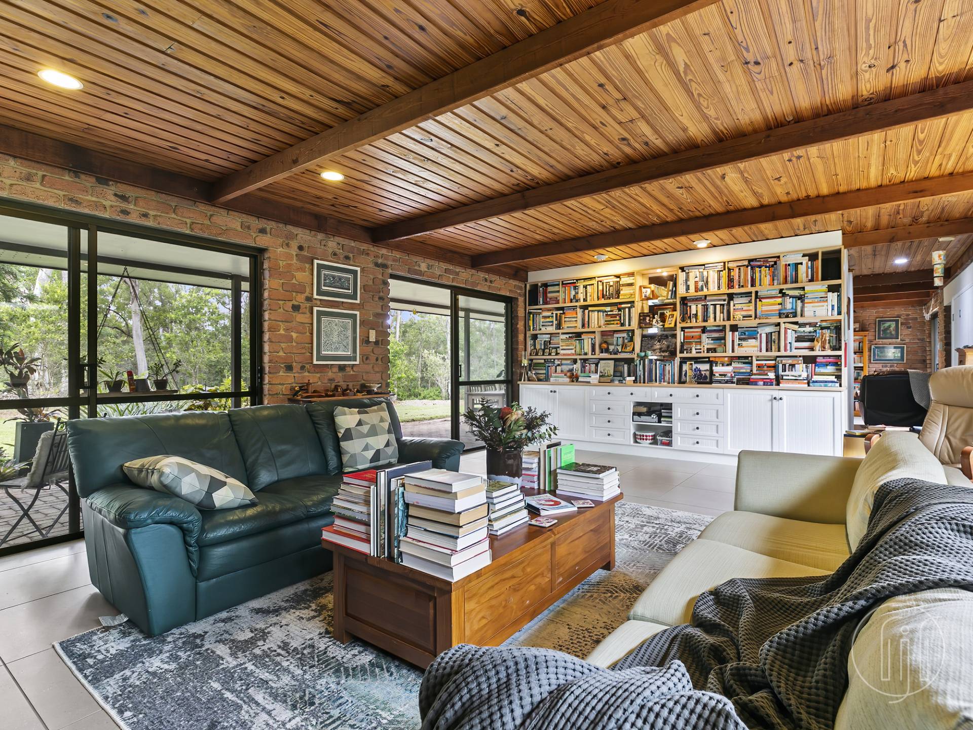 Surrounded by 12 hectares (30 acres) of pretty bushland, the home at 30 Ray Myers Road is set in a few acres of cleared mowed easy to maintain grounds where you can enjoy the wallabies, koalas and native birdlife.