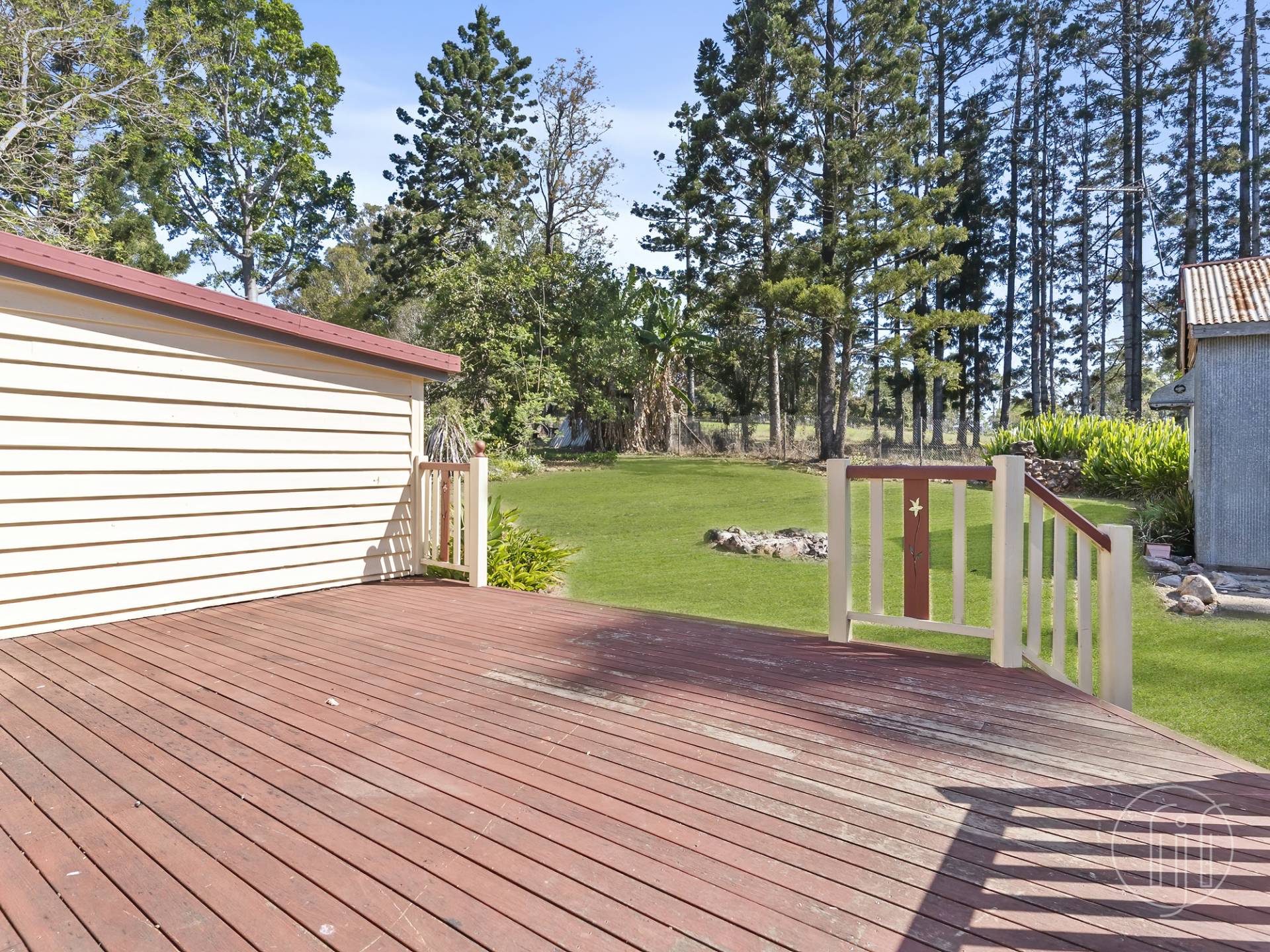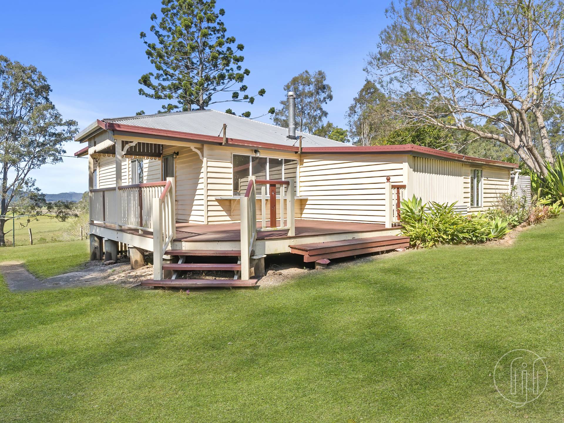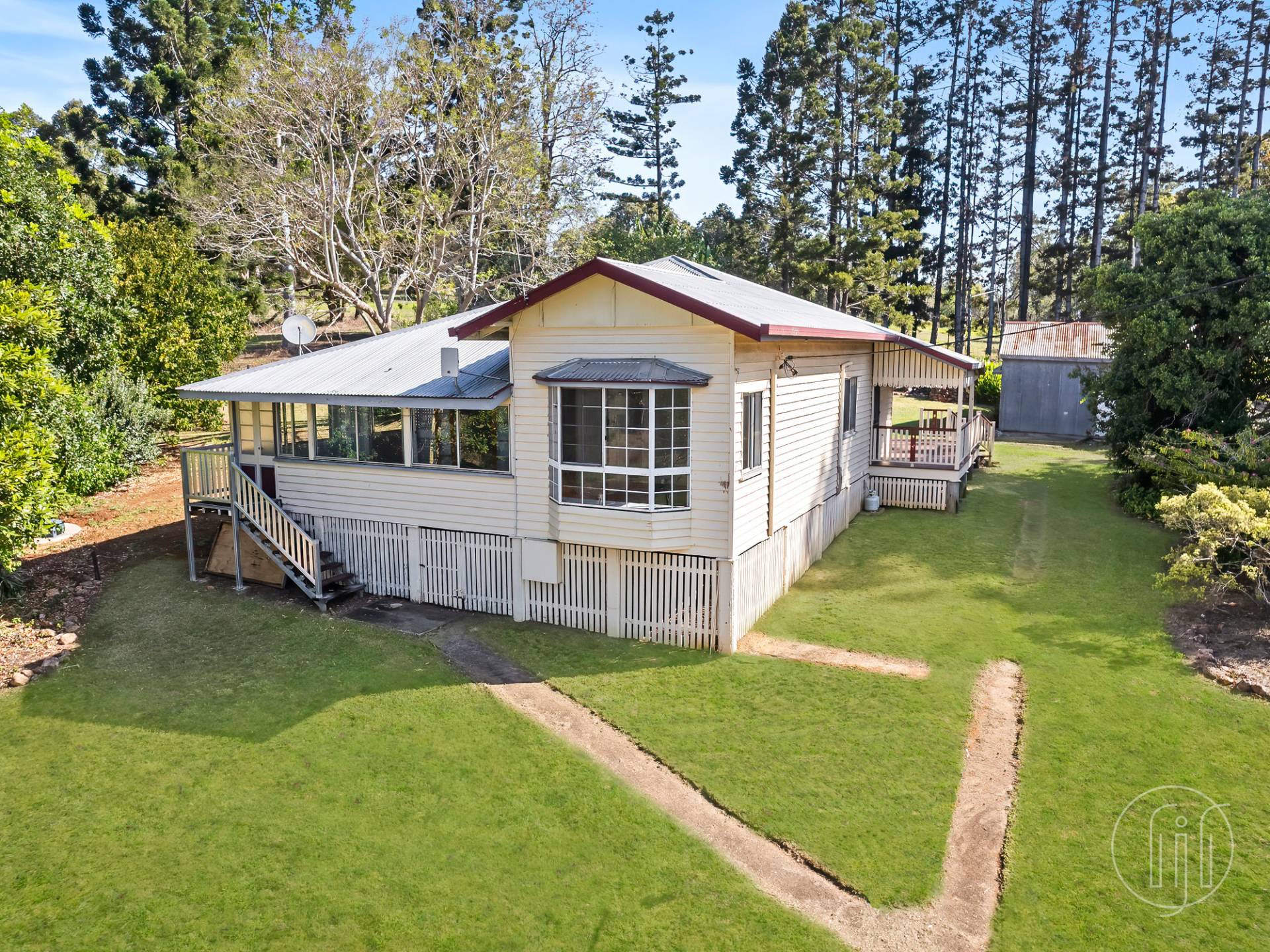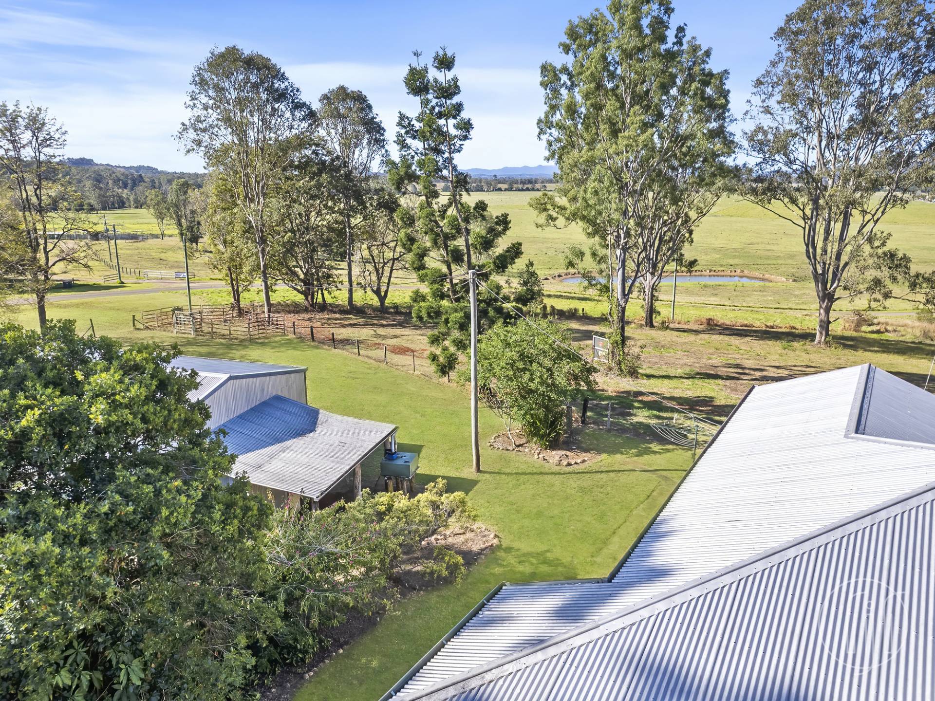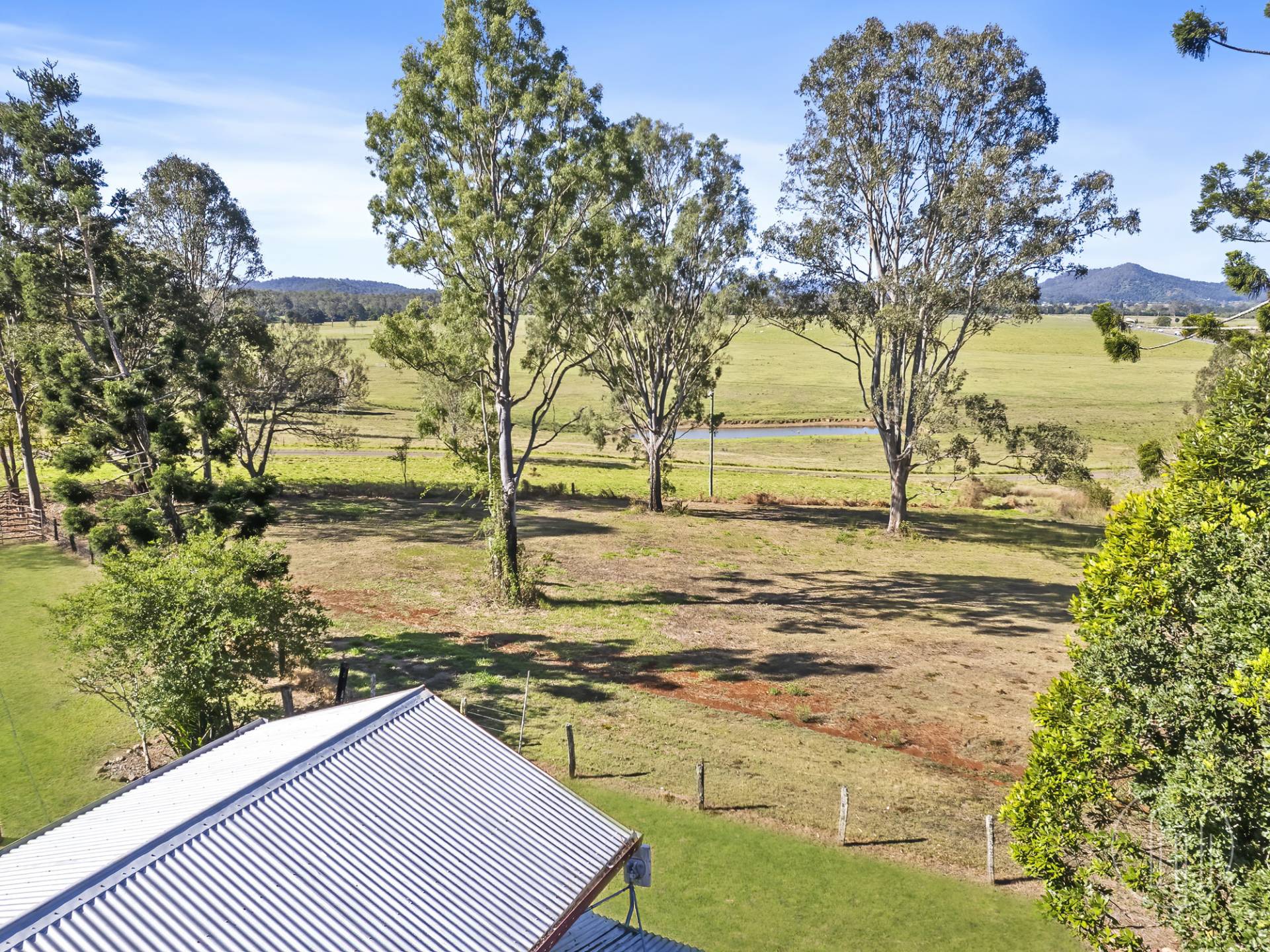 Surrounded by large established trees and green paddocks, this Queenslander enjoys a pretty rural setting and great views.  The ideal space for horses and cattle or simply enjoy the peace and quiet.
