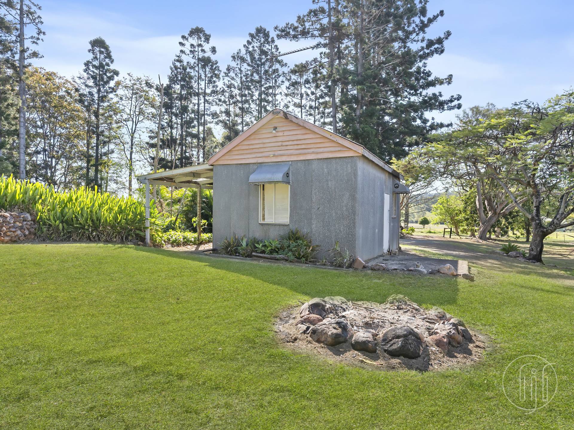 Outside the older style garage has been converted and makes a great art studio or man shed with covered outdoor area.  Plus, separate 5 bay shed with access for three vehicles plus covered area for machinery on the side.  There is good tank water storage and a water easement from Yabba Creek for animal troughs & tanks.