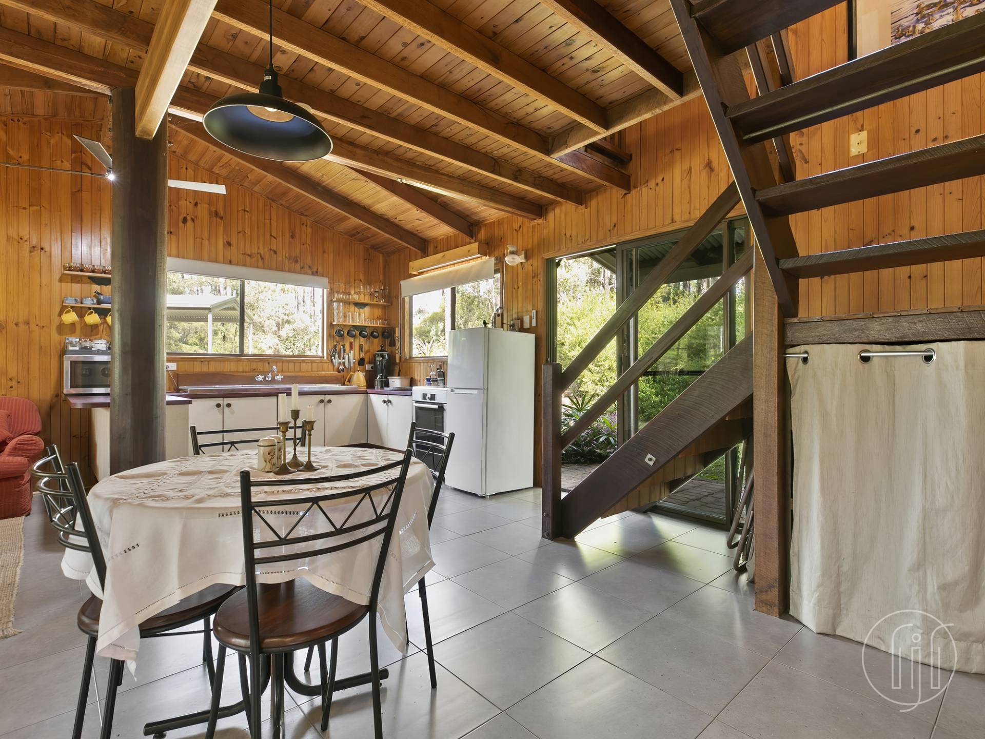 36 Ninbella Road has Coonoon Gibber Creek as the bottom boundary, with deep water access the whole way along.  The creek frontage, lined with mature trees and ferns, has steps and neatly mowed pathways hidden throughout to access at various points, amongst the butterflies and birds.