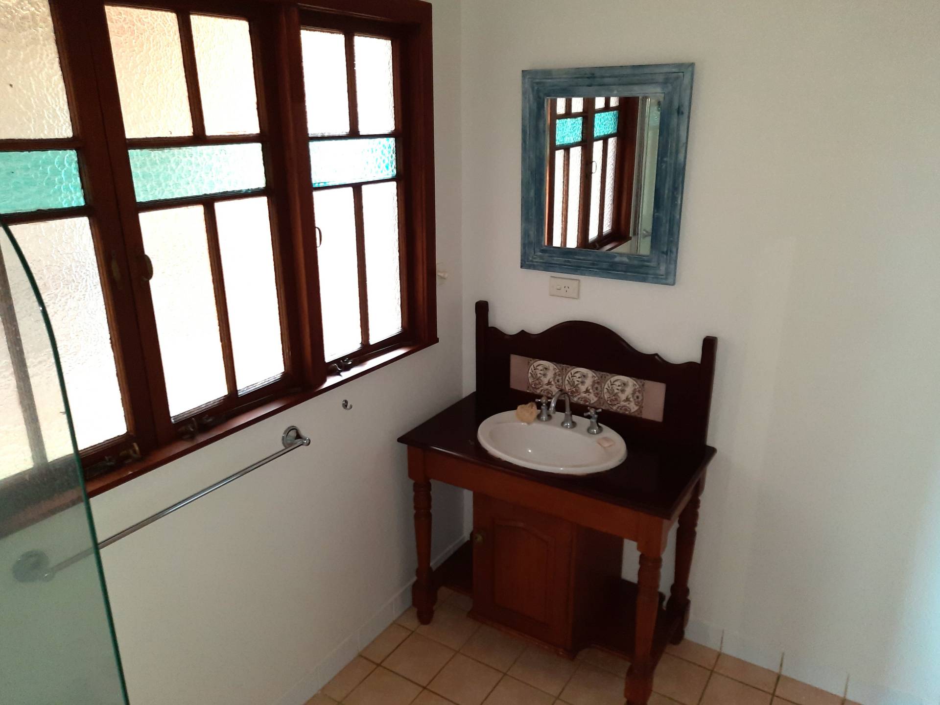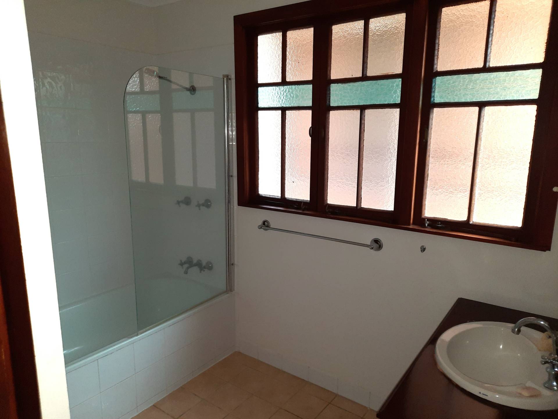 *  Bathroom with shower over the bath