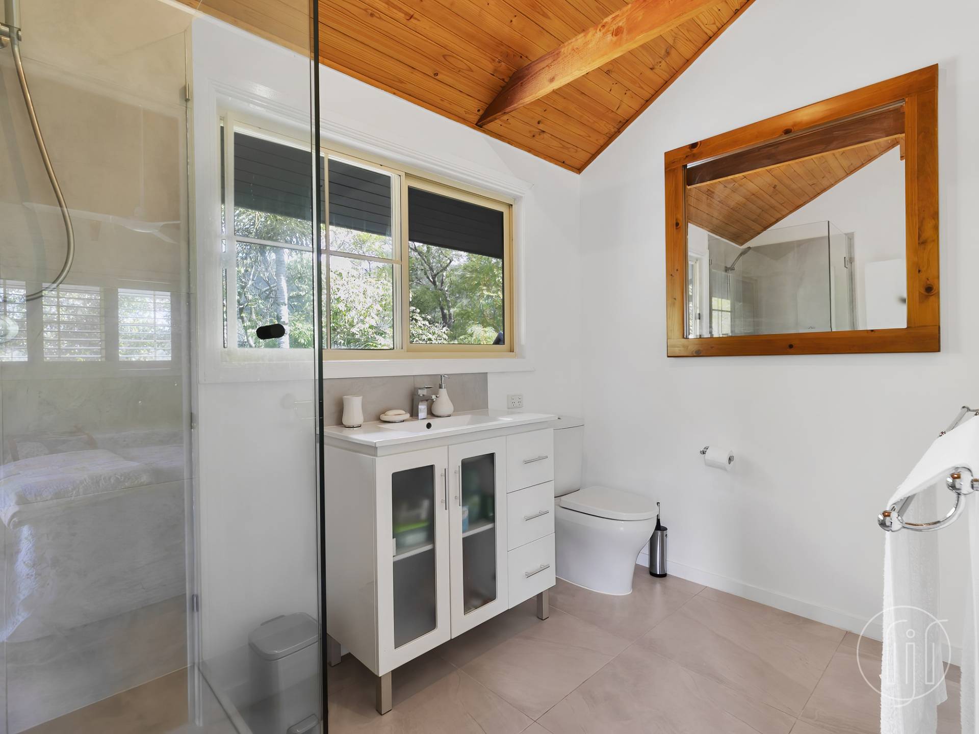 Outside and the property has been carefully planned to allow for a fenced house yard for the pets, covered barbecue area alongside the stands of bamboo, an incredible fenced veggie garden with raised beds beneath the Norfolk Pine tree, large garden shed on a concrete slab, an orchard with its own watering system and ample tank water storage.   The list goes on.