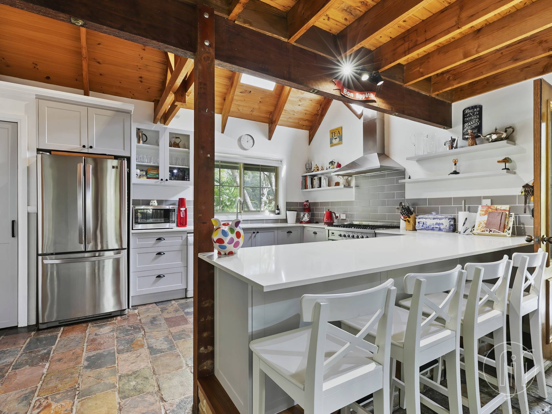 The kitchen is a delight with high ceilings, stone benchtops, 5 burner cooker, dishwasher, walk in pantry and large breakfast bar.  This allows you to be cooking and chatting with your guests at the same time.