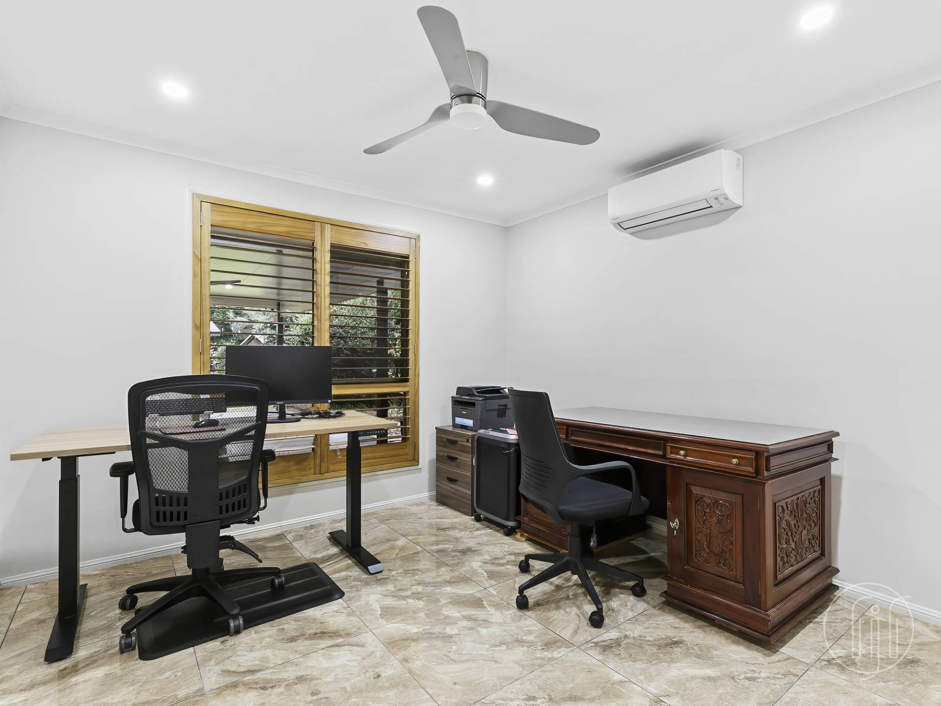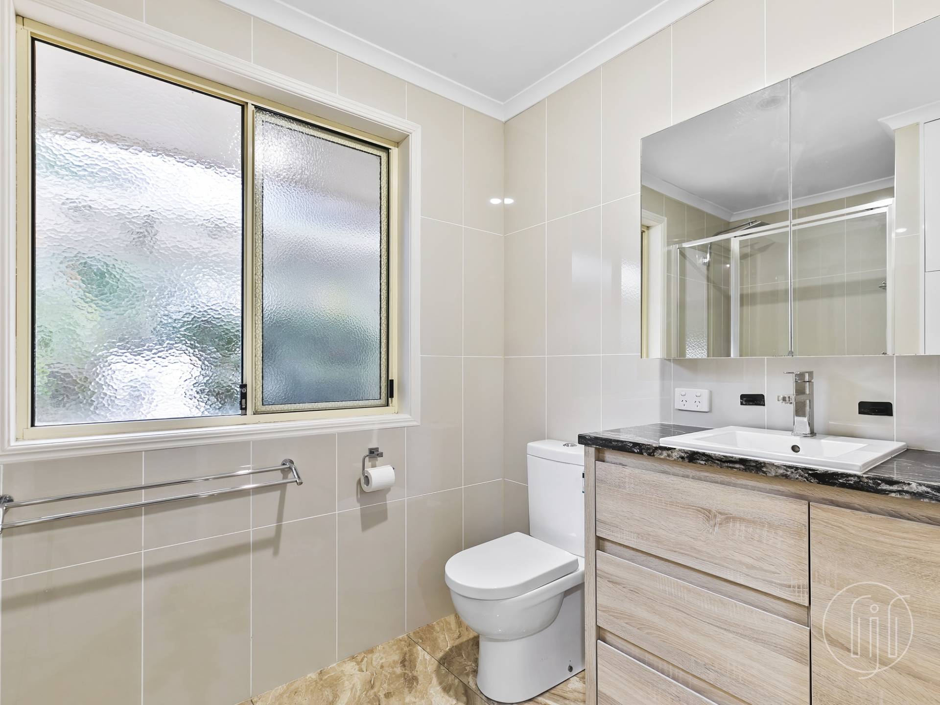 The master bedroom is off the formal end and features RC/AC, walk in robe and ensuite bathroom. There are three additional bedrooms at the opposite end, all with built in robes and RC/AC units and the main bathroom is divided into three spaces, and like the ensuite has vanity with granite benchtop.