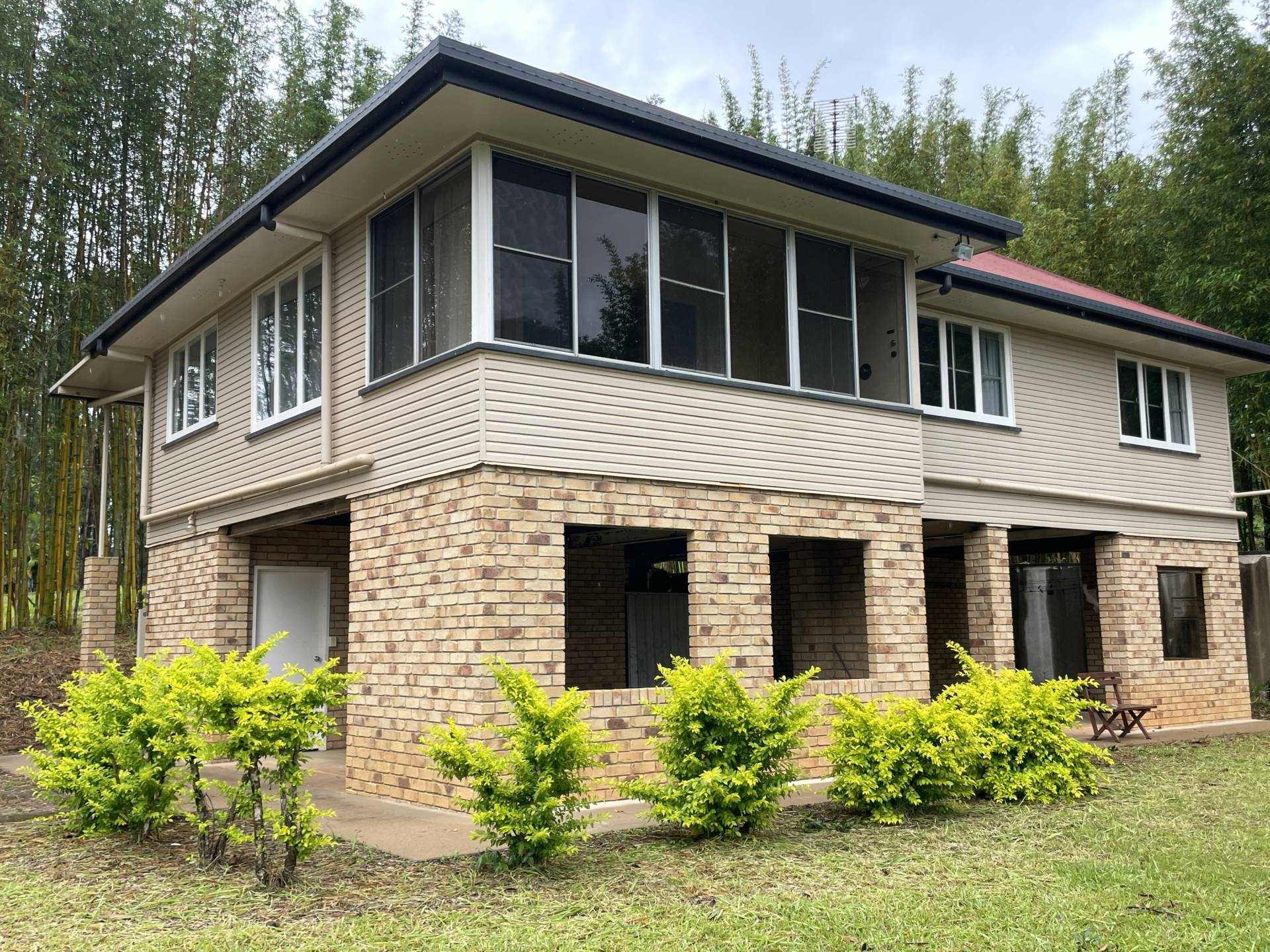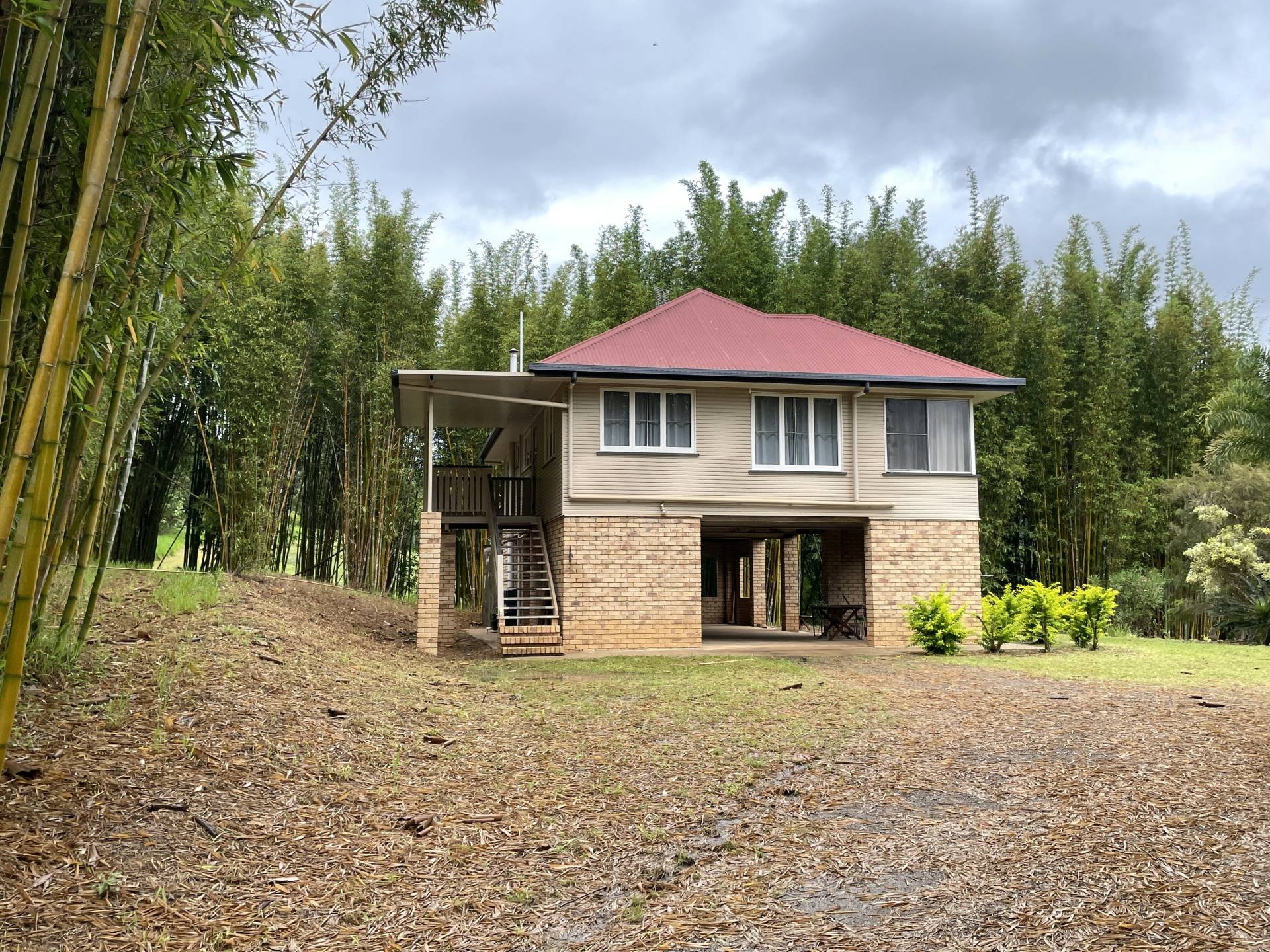 This high set home in Brooloo is located on 5 acres with fruit trees and established bamboo planting.