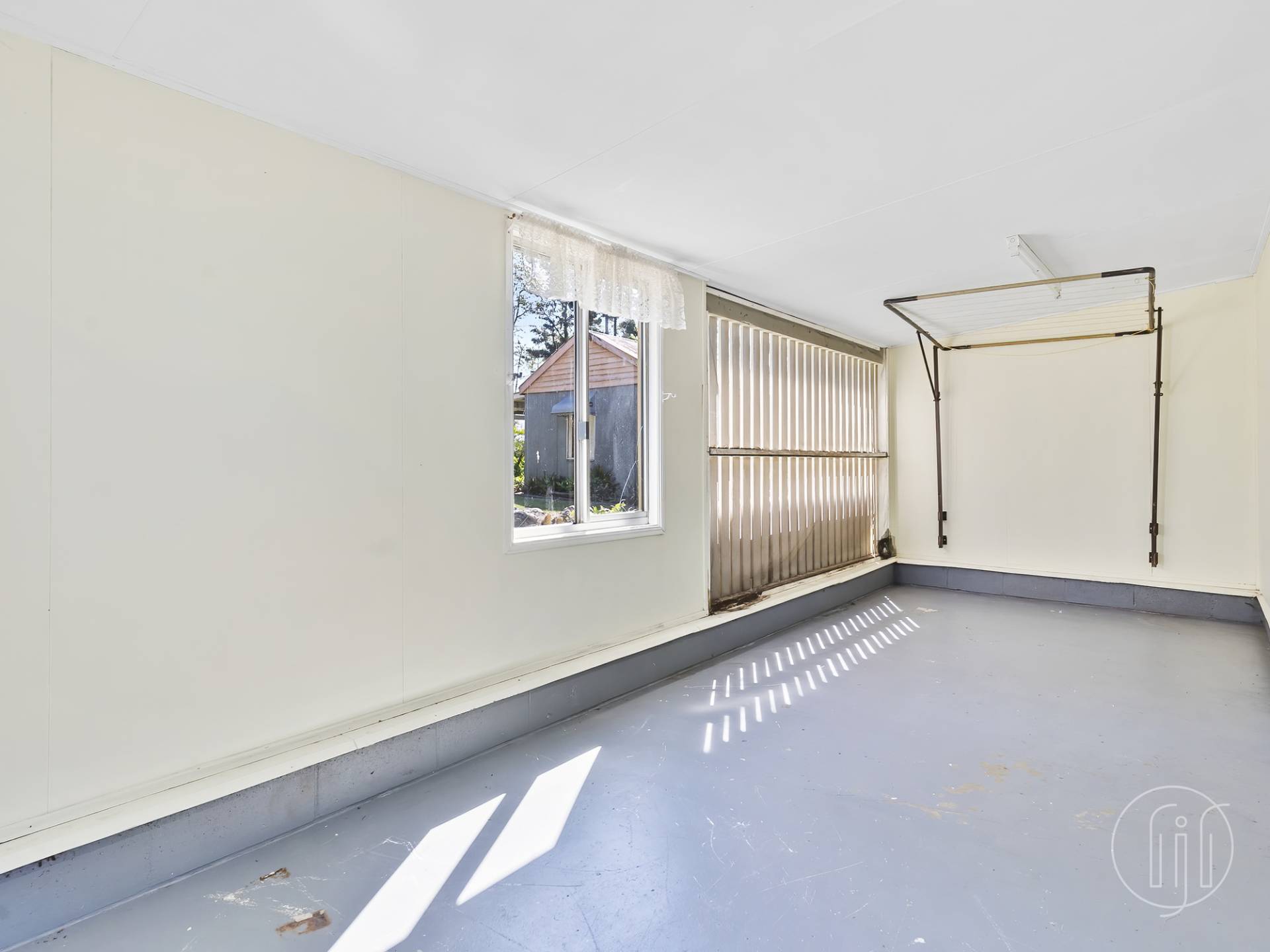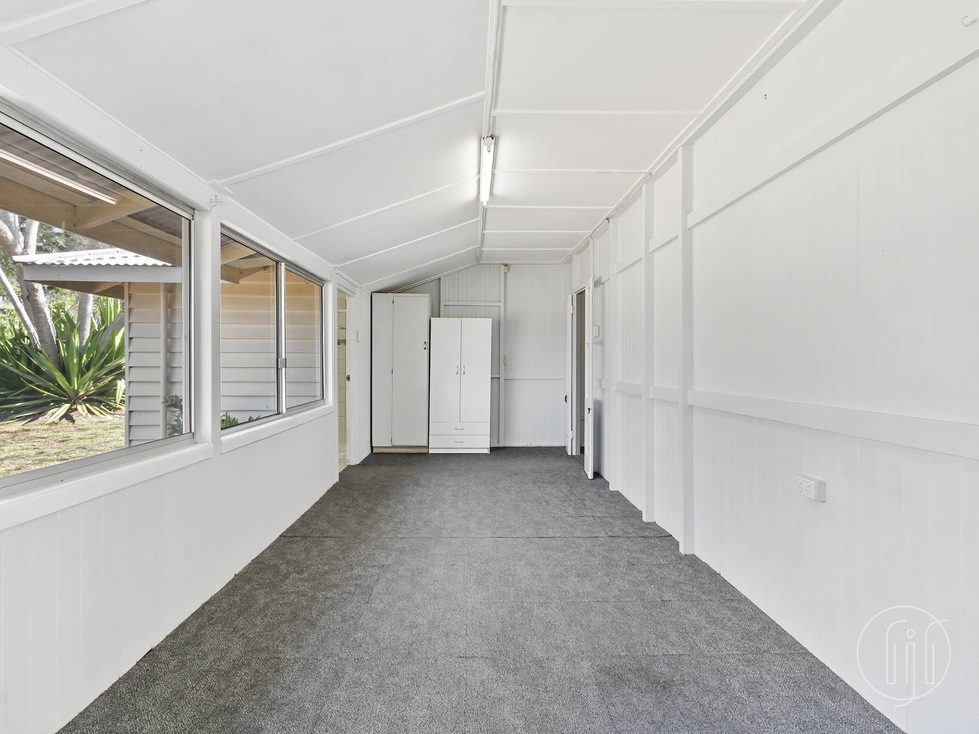 The house has high ceilings and VJ walls throughout. The lounge room is in the middle of the home and leads out to an enclosed sleepout used as a bright and light bedroom on the right. There are two other generously sized bedrooms on the opposite side, both with built-in robes, RC/ACs and master with feature bay window.